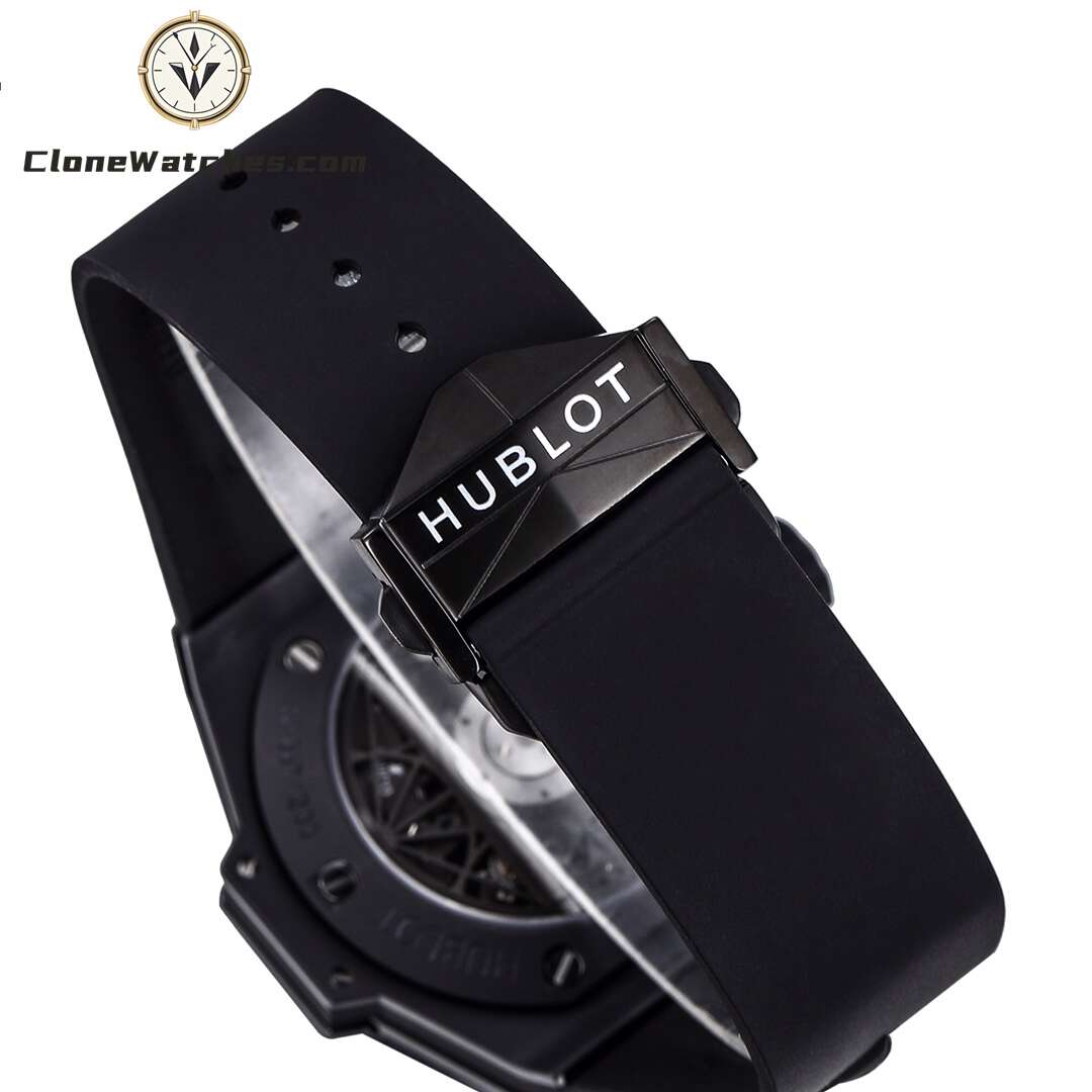 Clone Watches The case is made of up to 12 pieces of ceramic material. After polishing, satin, slicing, engraving, chamfering and faceting, it presents alternating hexagons, rhombuses and triangles, creating a harmonious and charming visual effect. Standard customized Hublot exclusive UNICO HUB 1240 automatic flyback chronograph movement, perfectly realized 4.5-digit hollow calendar ring and window, 3-digit 60-minute timing, 8-digit horizontal clutch, 9-digit small second wheel.