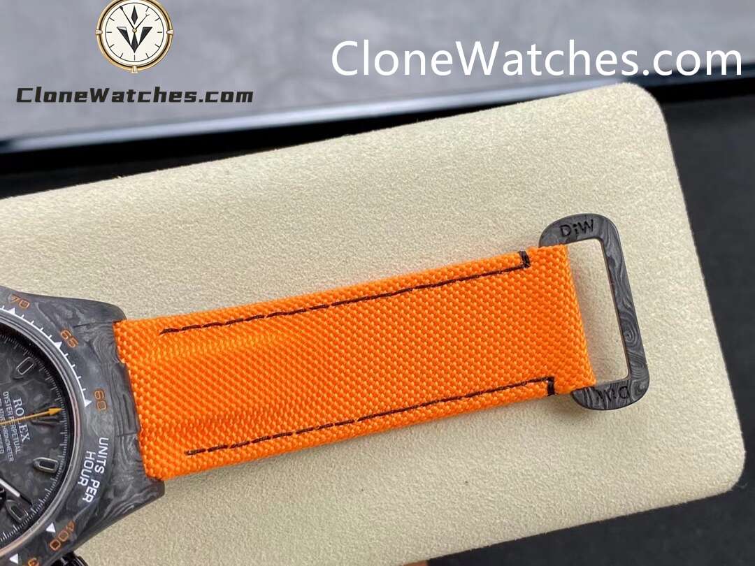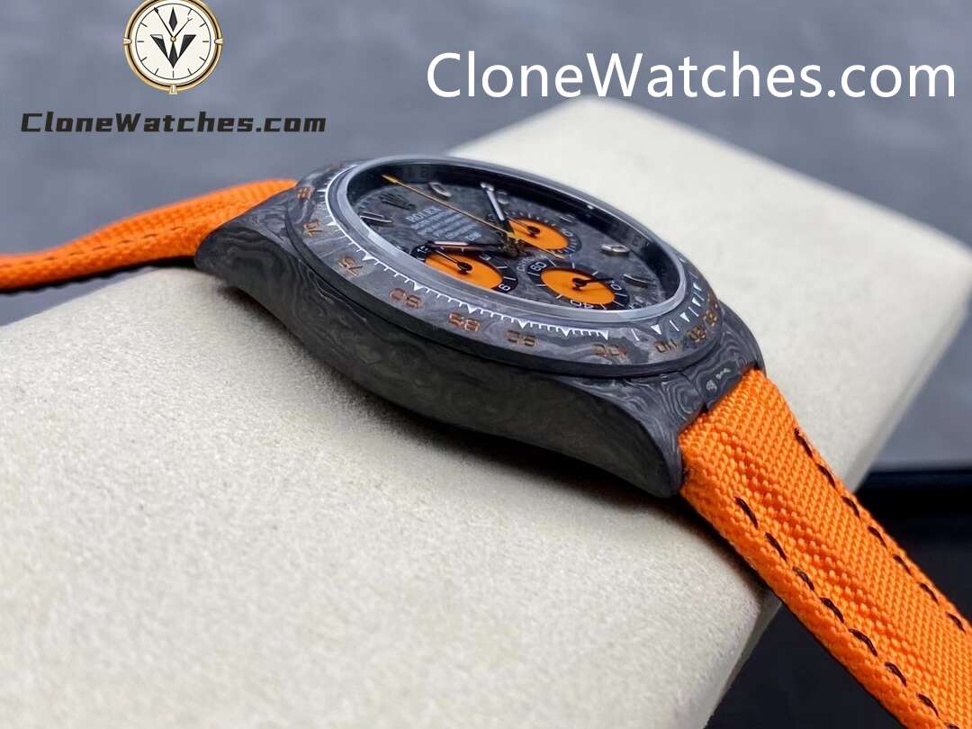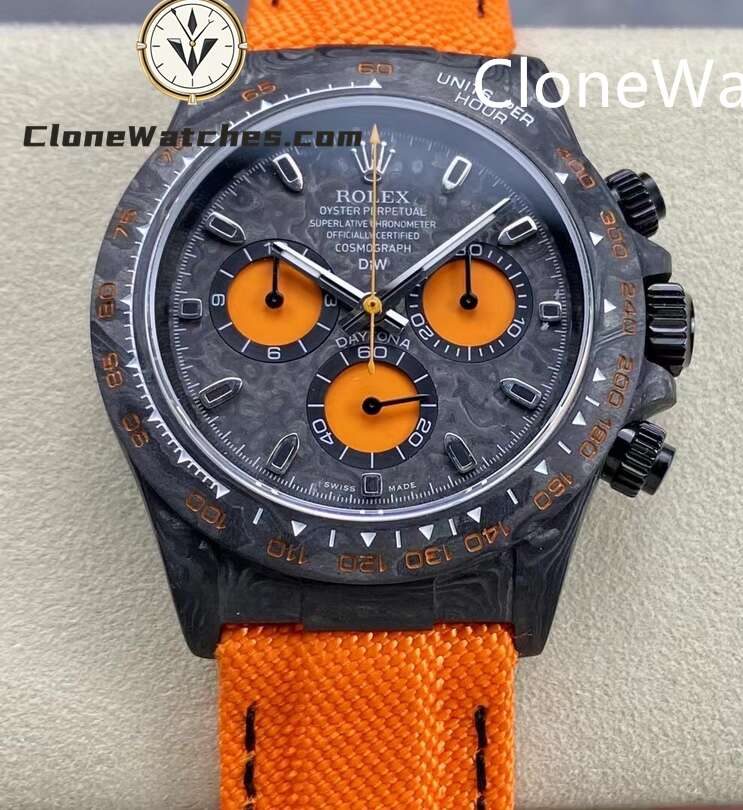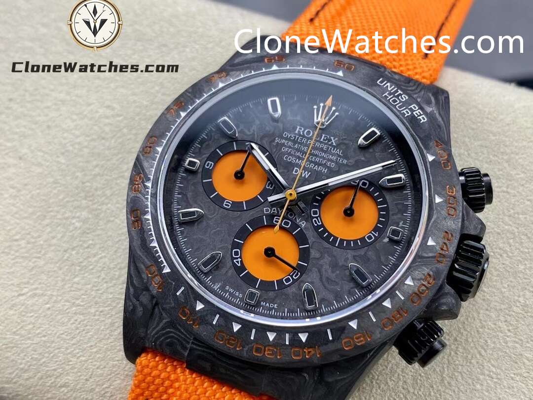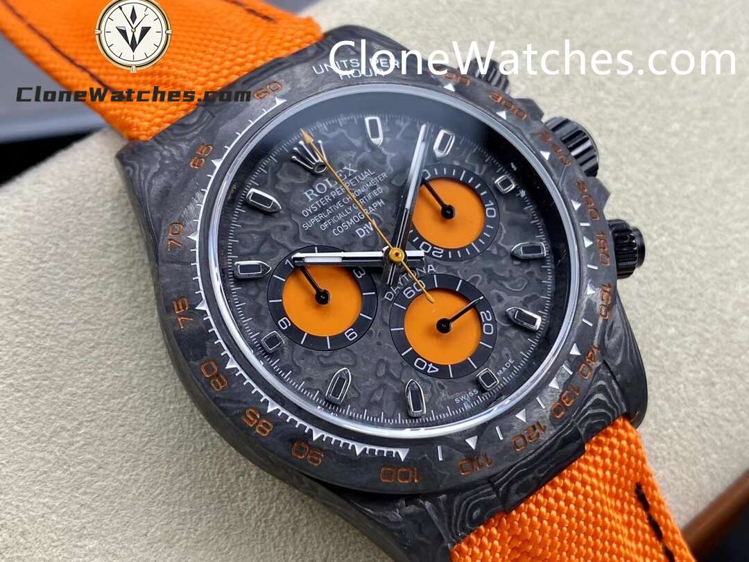 Rolex Daytona ORANGE EDITION Super Clone Watches are not only light to wear, but also very tough in appearance. And each watch has a unique carbon fiber pattern.