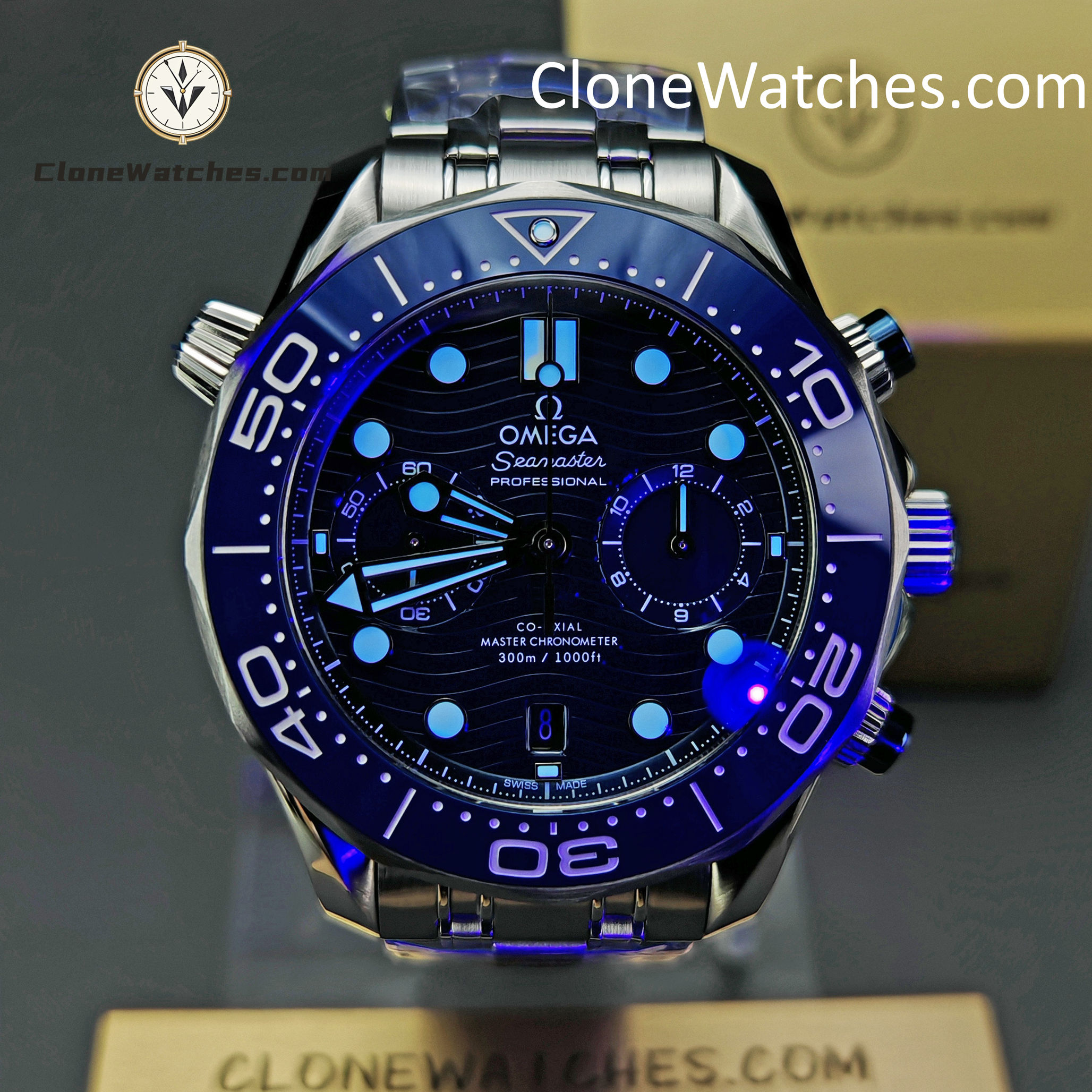 2: Equipped with a cloned Omega 9900 chronograph movement, 316L fine steel case 44 mm, imported rubber strap