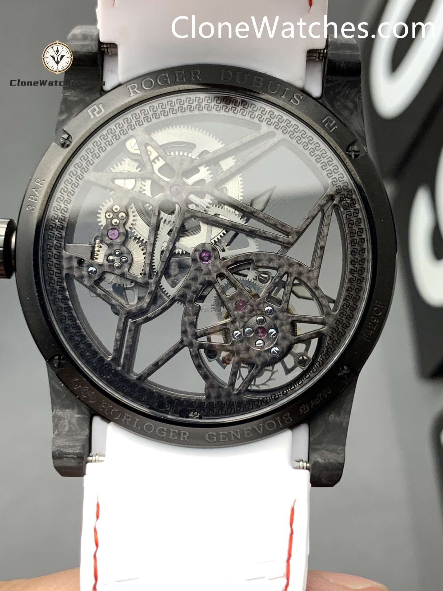 Roger Dubuis Super Clone Watches 1:1 Excalibur Carbon Fiber Skeleton Dial DBEX0577 42MM