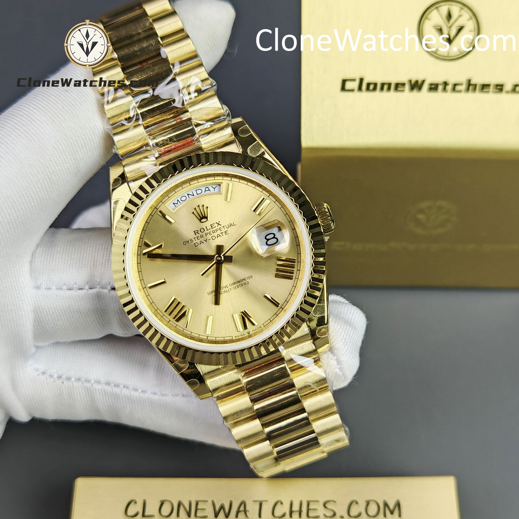 Rolex Super Clone Watches 1:1 Day Date 18K Gold 40mm M228238-0006 3255 Movement