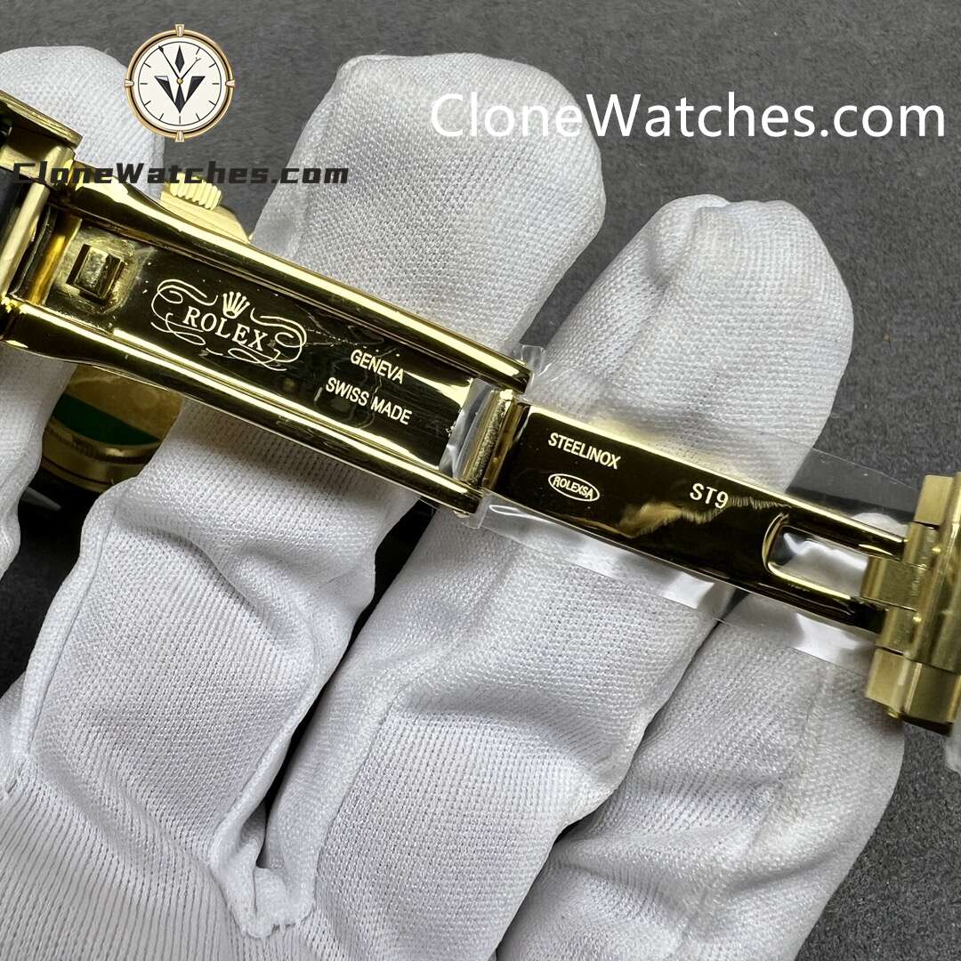 Clasp Details: Detailed Rolex-style engravings on the clasp bridge, replicating GENEVA SWISS MADE / ROLEX / STEELINOX / ST9 markings.
