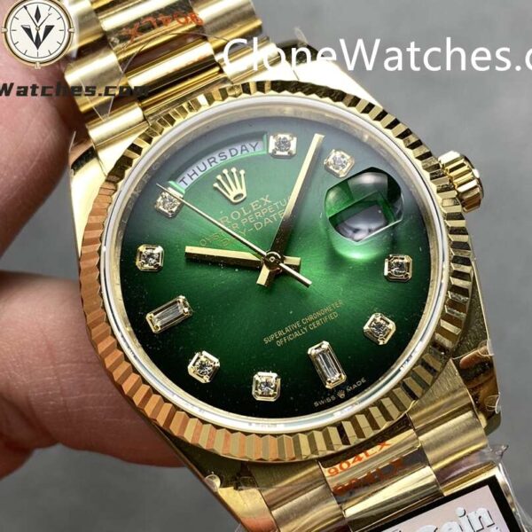 $1,100.00Original price was: $1,100.00.$950.00Current price is: $950.00.Super Clone Watches – Rolex Day Date 18K Gold m128238-0069 Model Rolex Super Clone Watches Day-Date 18K Gold Gradient Green Diamond Dial m128238 Case Diameter 36mm Case Material Gold Plating on 904L stainless steel Bezel Fluted bezel Structure Monobloc middle case, screw-down case back and winding crown Front Crystal Made Of […]