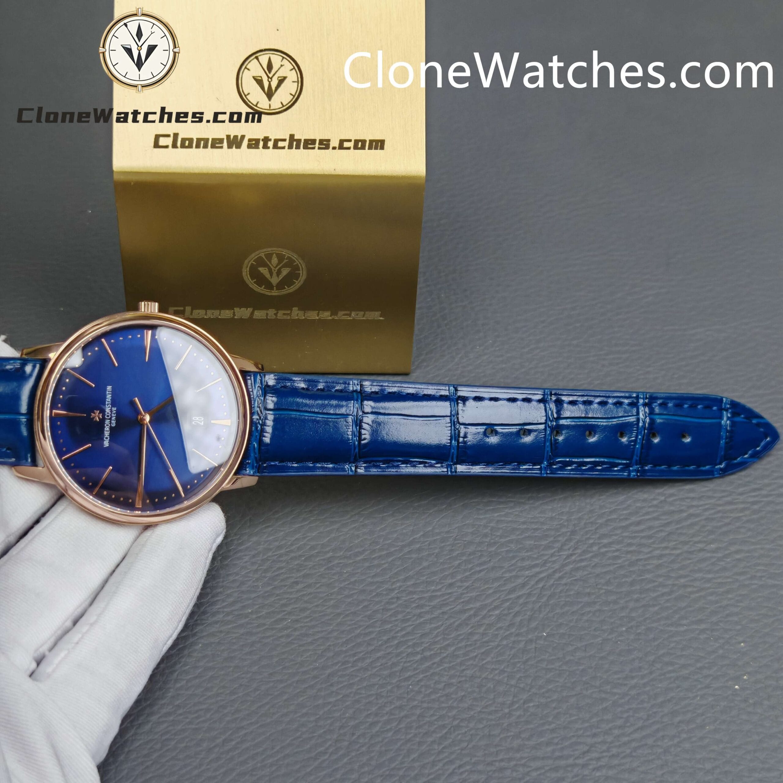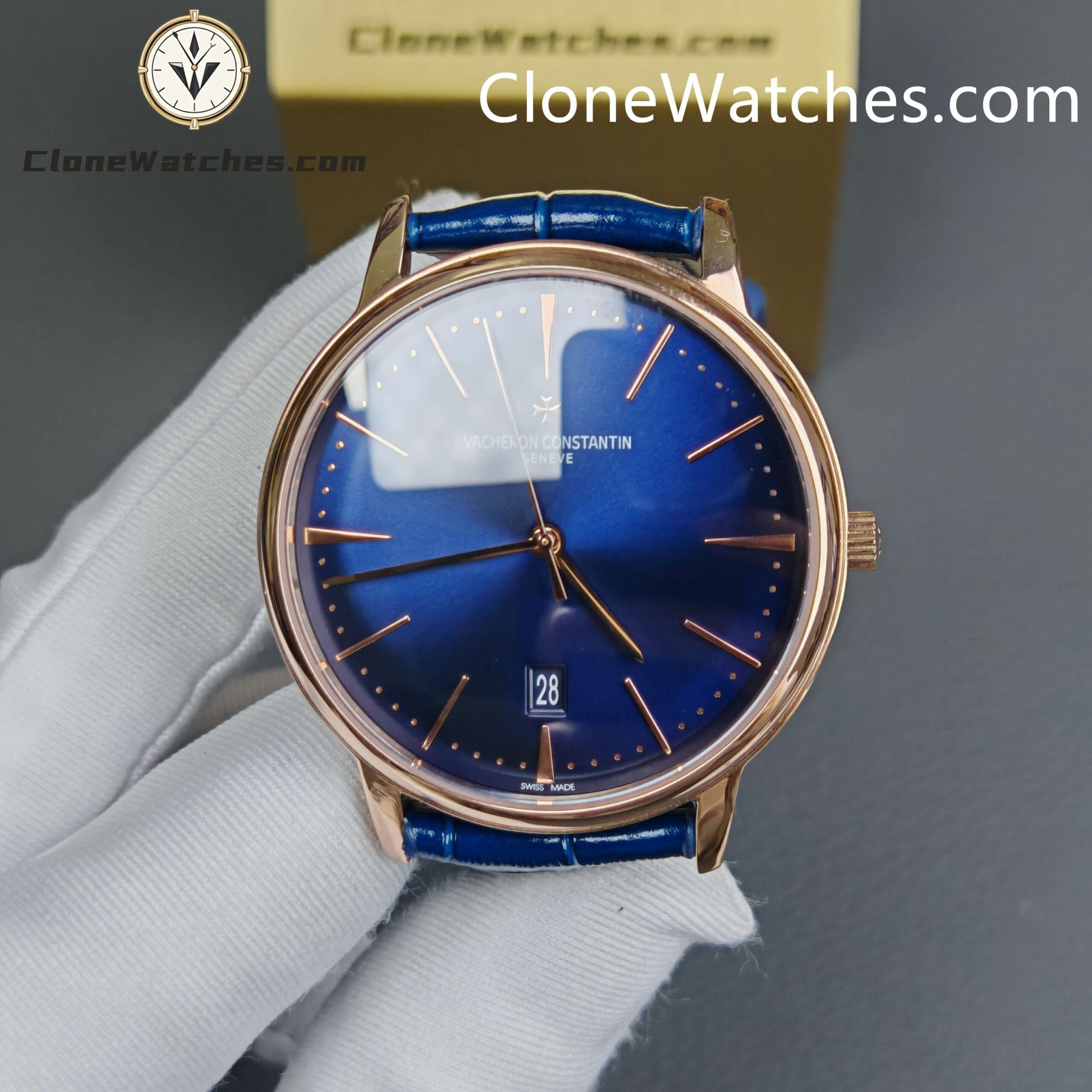 Vacheron Constantin Super Clone Watches 1:1 Patrimony Rose Gold 85180/000R-B515 Blue Dial