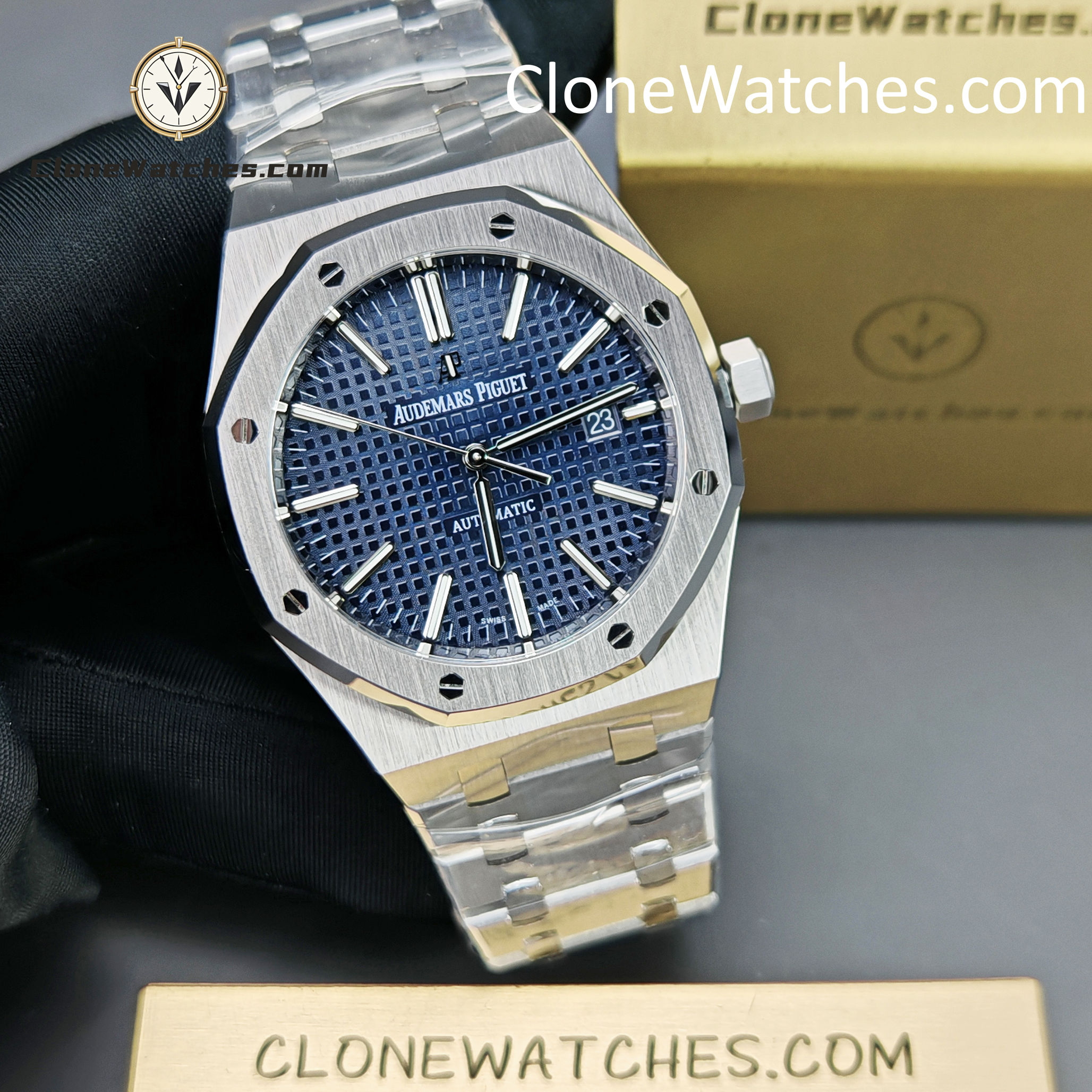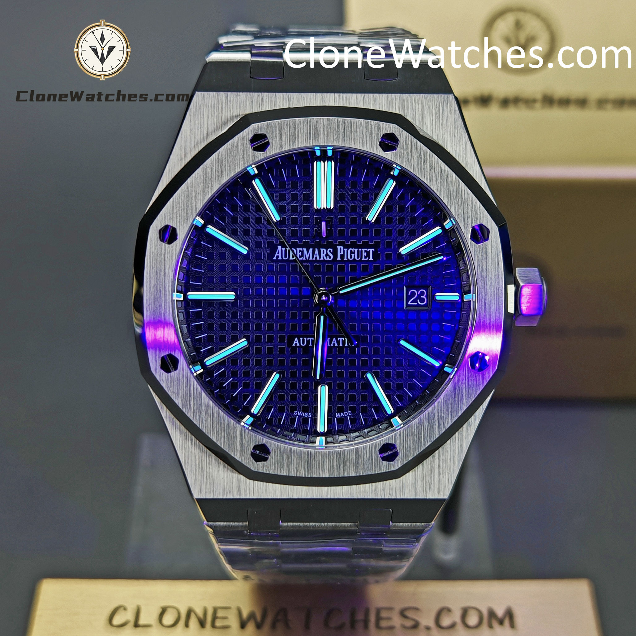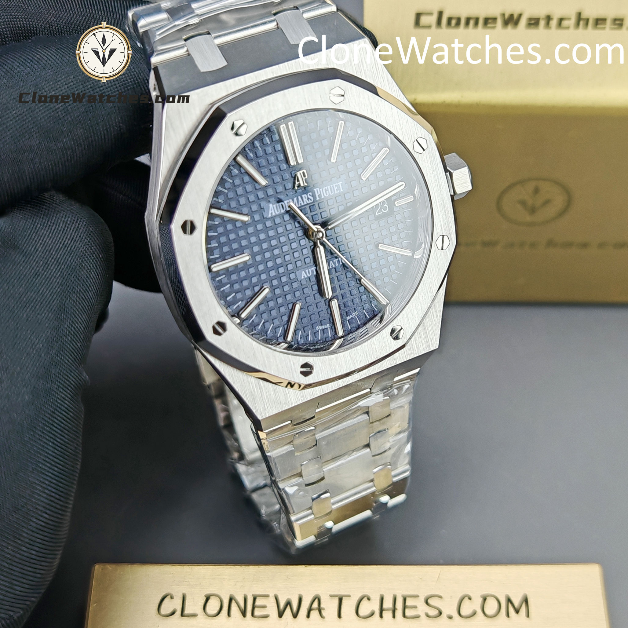 The Blue dial of the Super Clone Watches 15400 has been carefully crafted to match the color and finish of the original, with almost no difference.