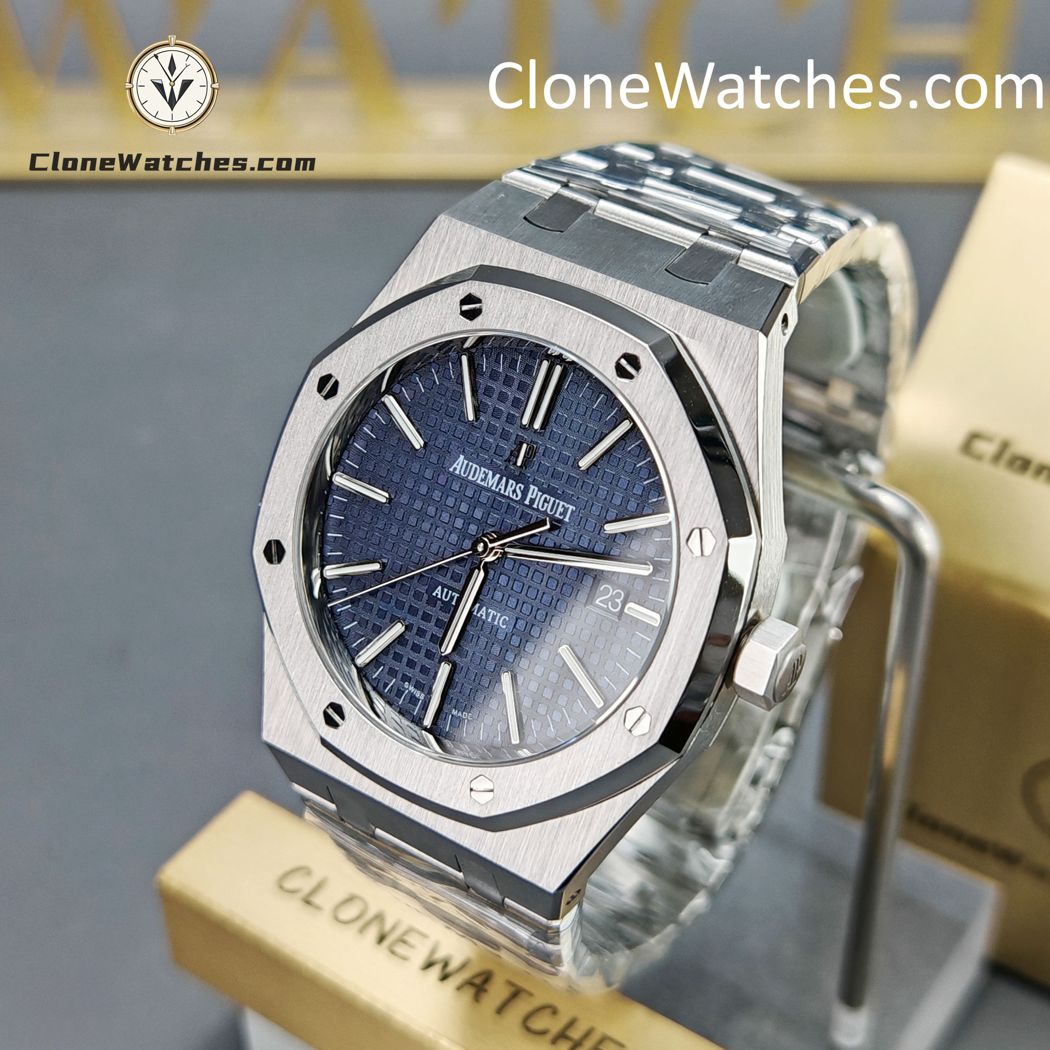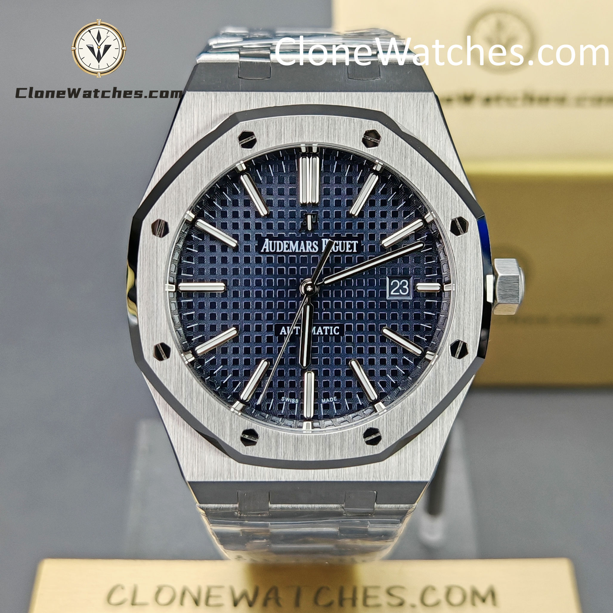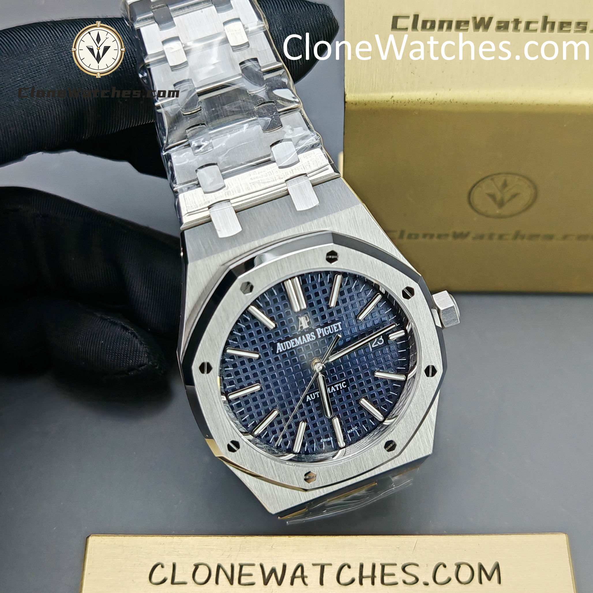 The Blue dial of the Super Clone Watches 15400 has been carefully crafted to match the color and finish of the original, with almost no difference.