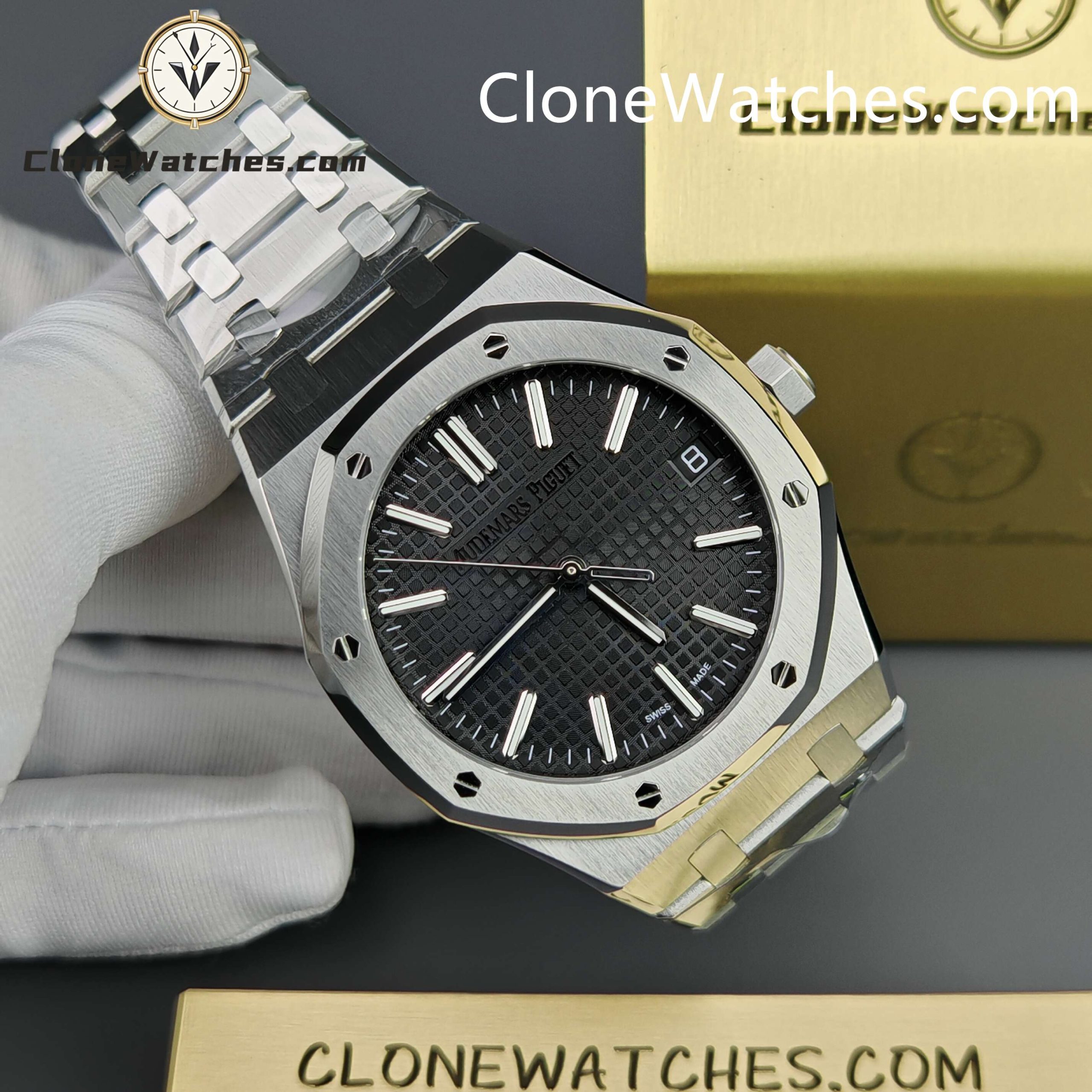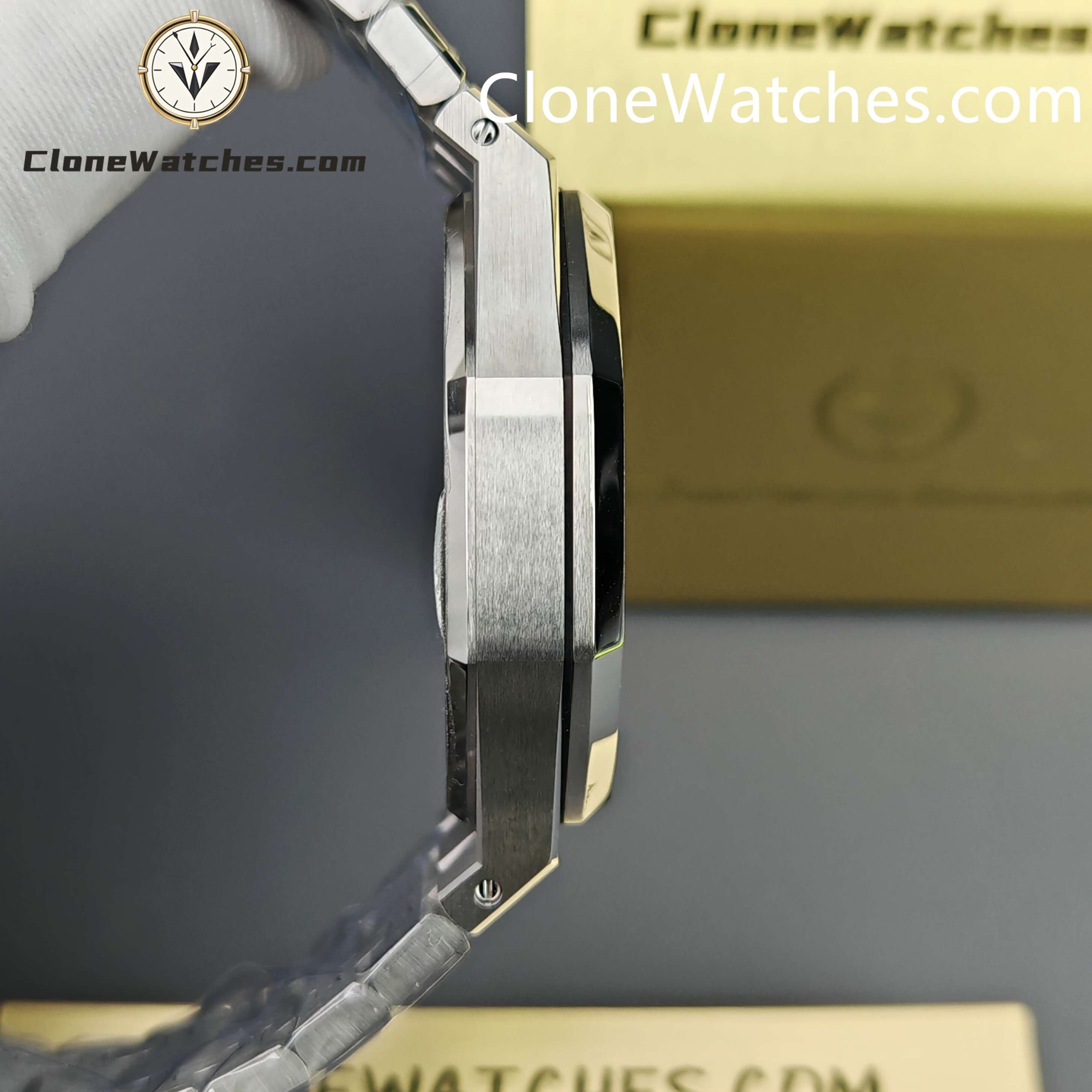 Unlike older versions that used modified Miyota 9015 movements with decorative plates, this APS Factory release features a fully integrated Super Clone 4302. The movement architecture mirrors the genuine AP mechanism, allowing for a thinner case profile and correct hand-setting direction.