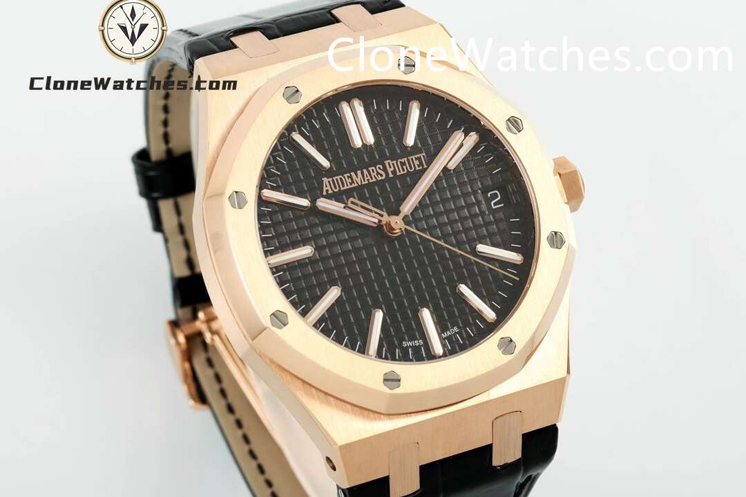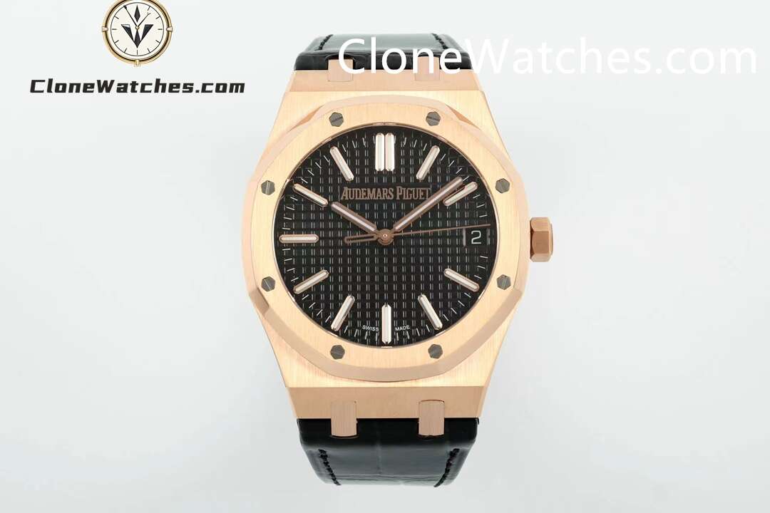 Super Clone Watches – Audemars Piguet 15510 Rose Gold Black Dial Alligator Leather Strap