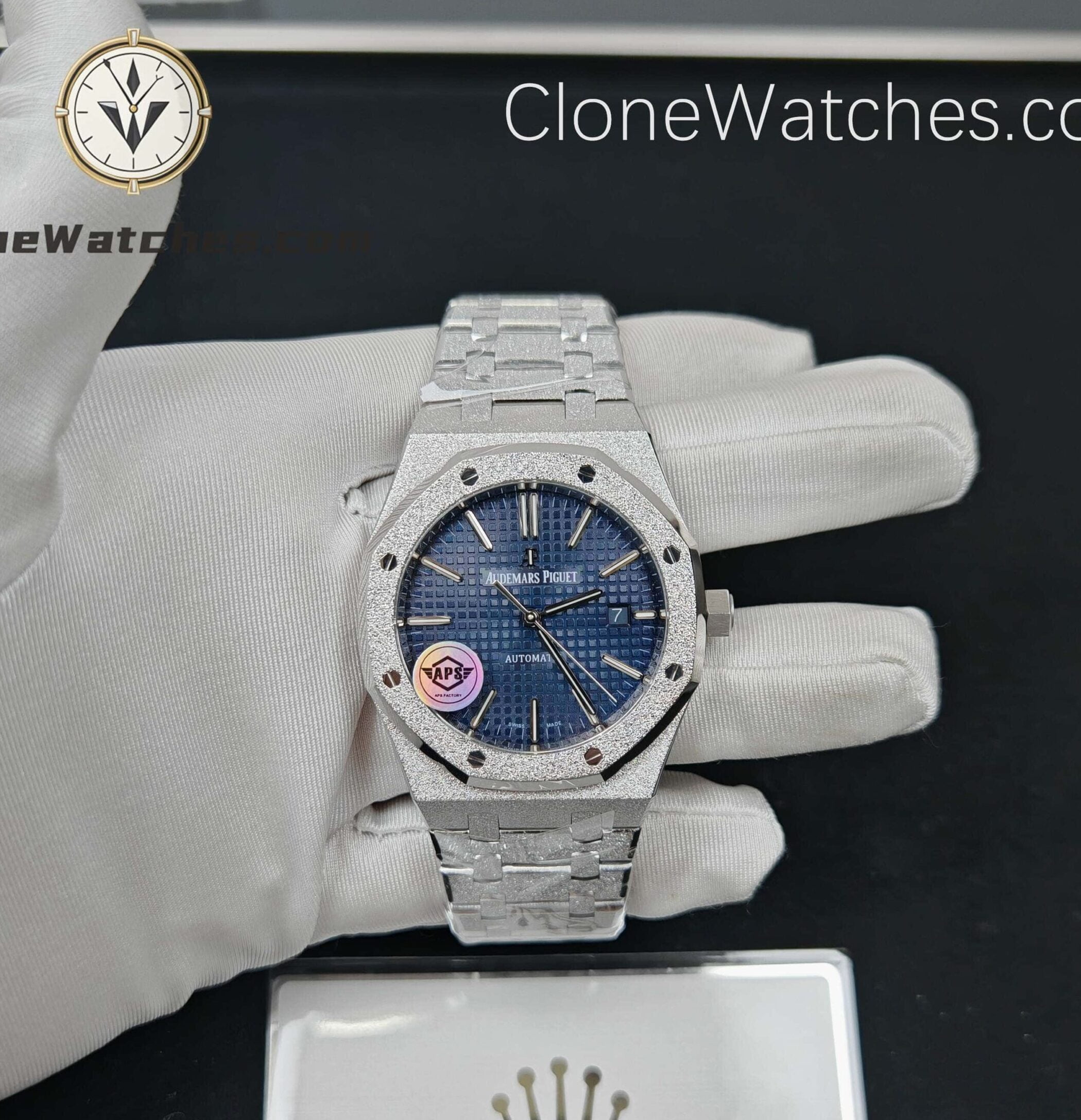 Dial: Blue dial with applied AP logo and baton hour markers