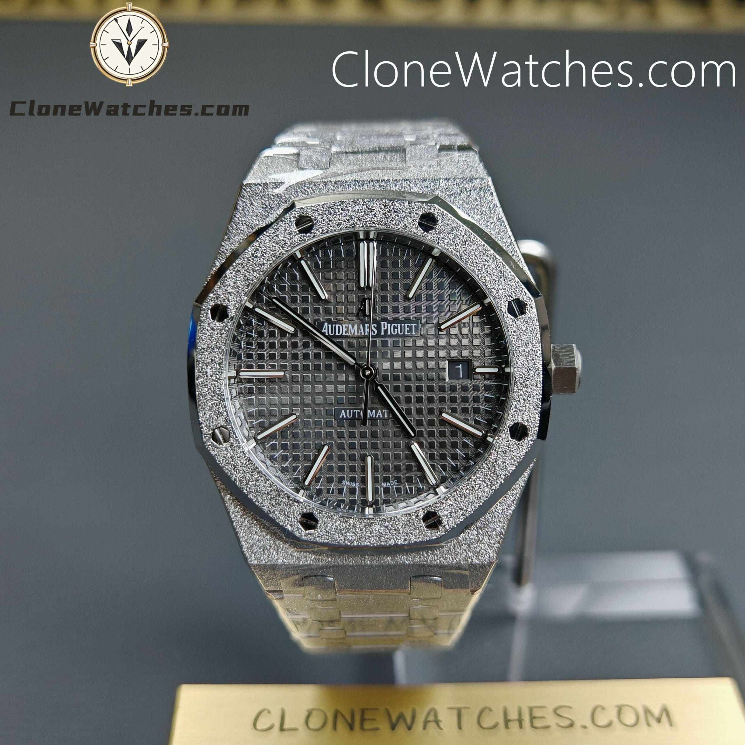 Dial: Grey dial with applied AP logo and baton hour markers