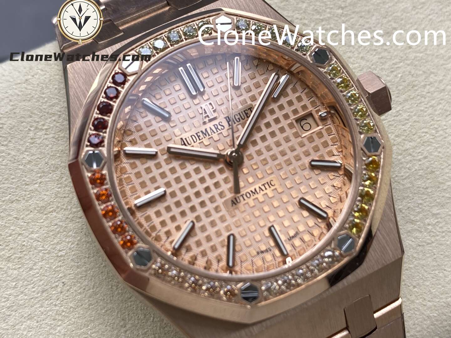 Audemars Piguet Super Clone Watches 1:1 Royal Oak Rose Gold 15451OR Rainbow Grande Tapisserie Dial 37MM