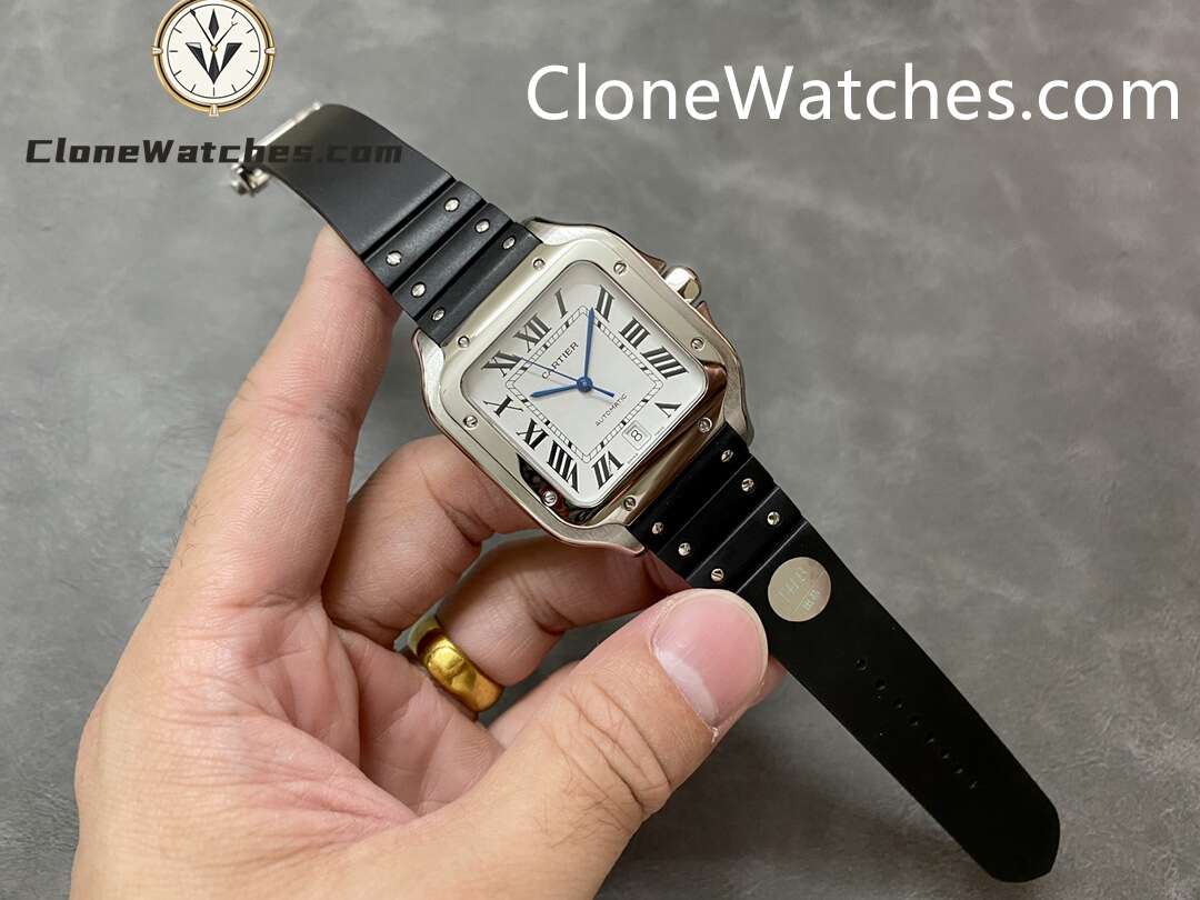Cartier Super Clone Watches 1:1 Santos Series White Dial 39.8MM WSSA0018 Rubber Strap