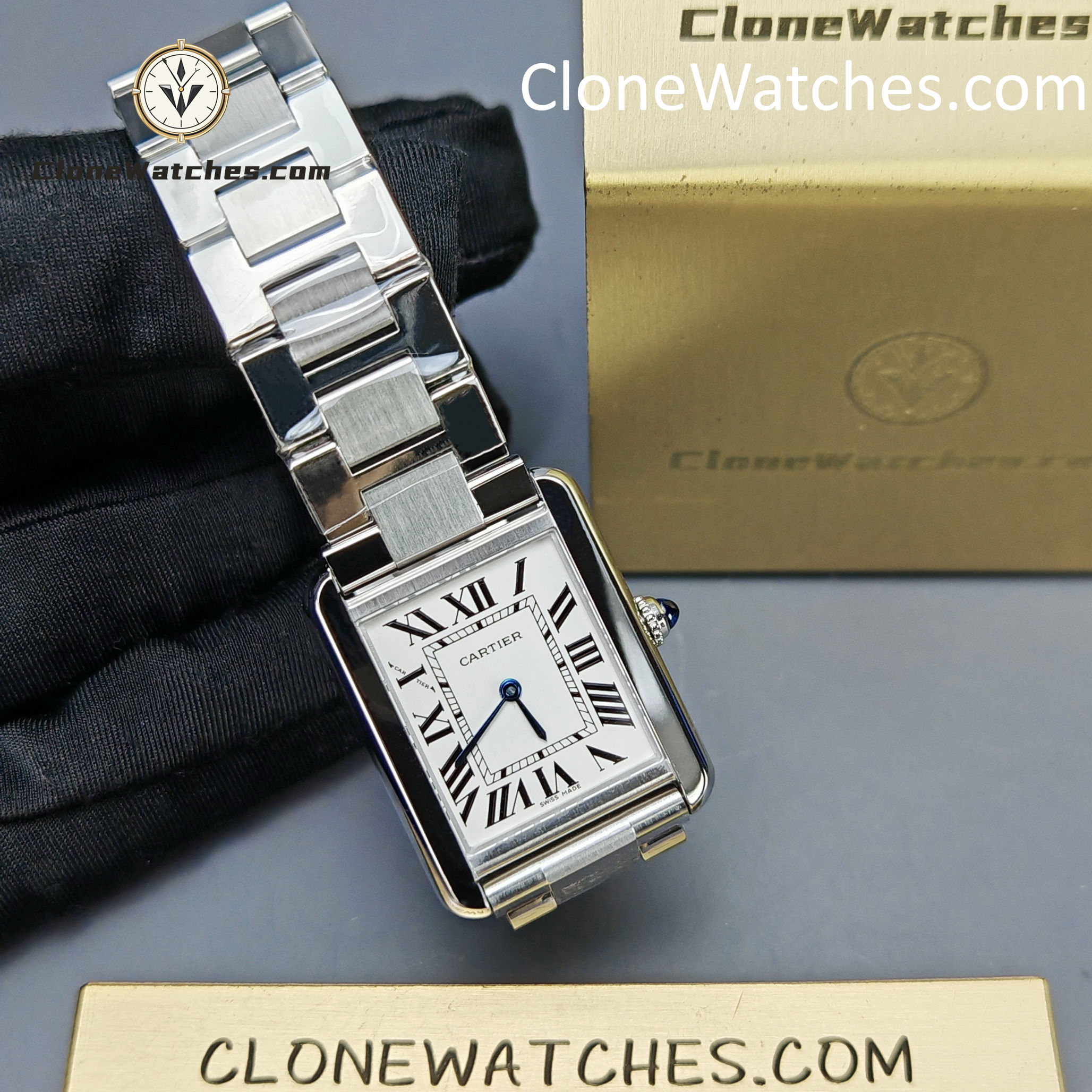 The AF Tank Solo distinguishes itself by utilizing a genuine Swiss Ronda quartz movement, effectively mirroring the reliability and architecture of the Cartier Caliber 157 found in the authentic model. This ensures a true “set and forget” experience with zero compromise on timekeeping precision.