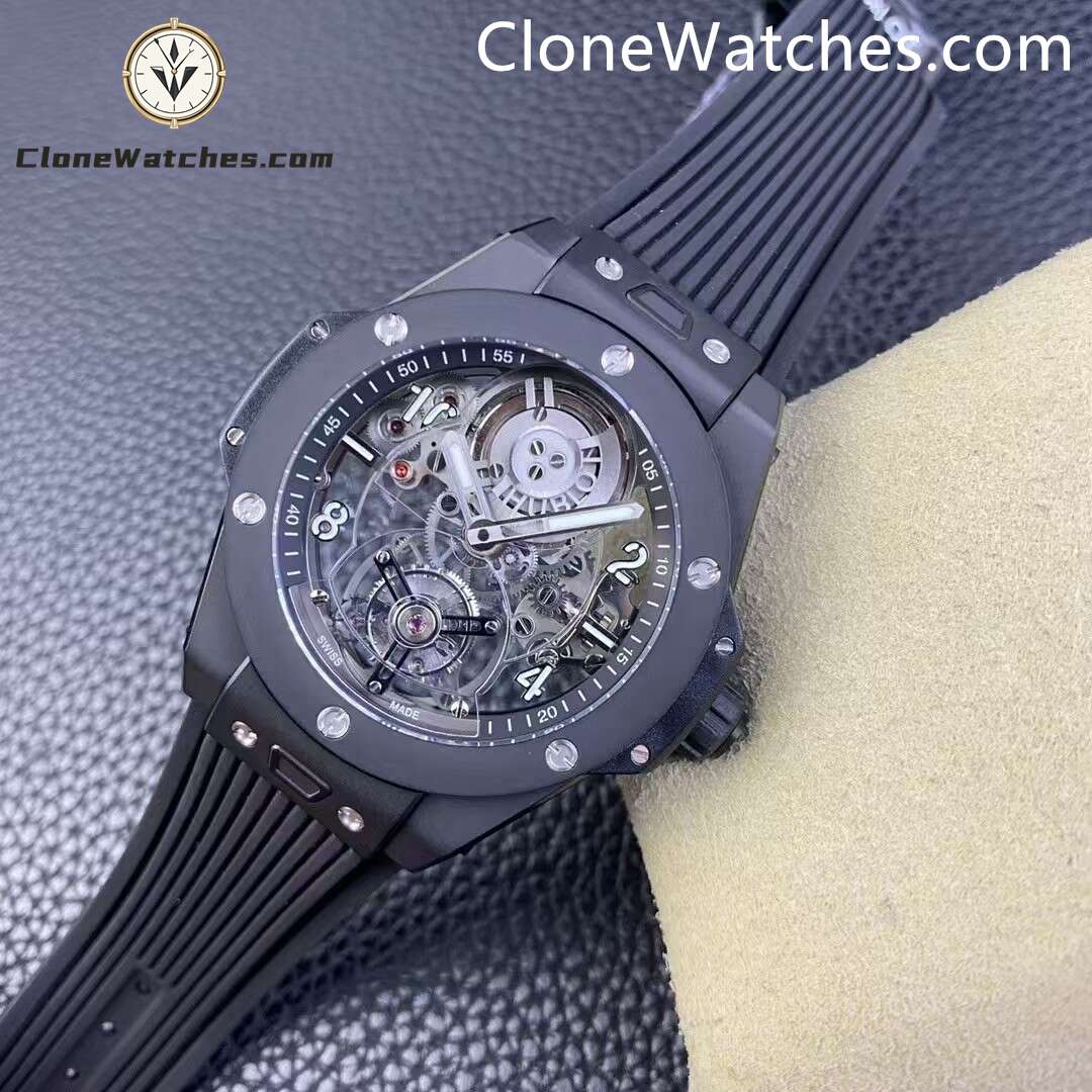 Hublot Big Bang Tourbillon Automatic Black Magic Super Clone Watches! Breaking through previous works, the internally designed crystal bridge is equipped with a tourbillon, and the movement is restored to the original. Clone Watches uses the original HUB6035 integrated movement that took more than 13 months to develop independently, and there is no factory repair.