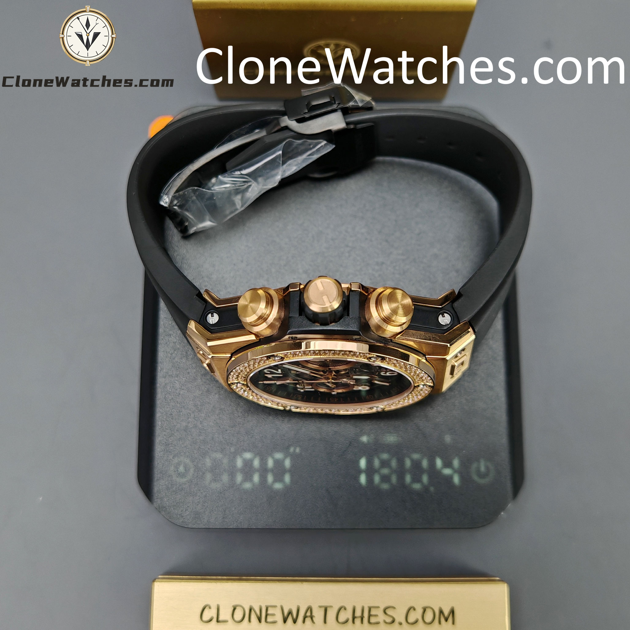 - Case & Band: 18K King Gold Plated / Ceramic Clasp