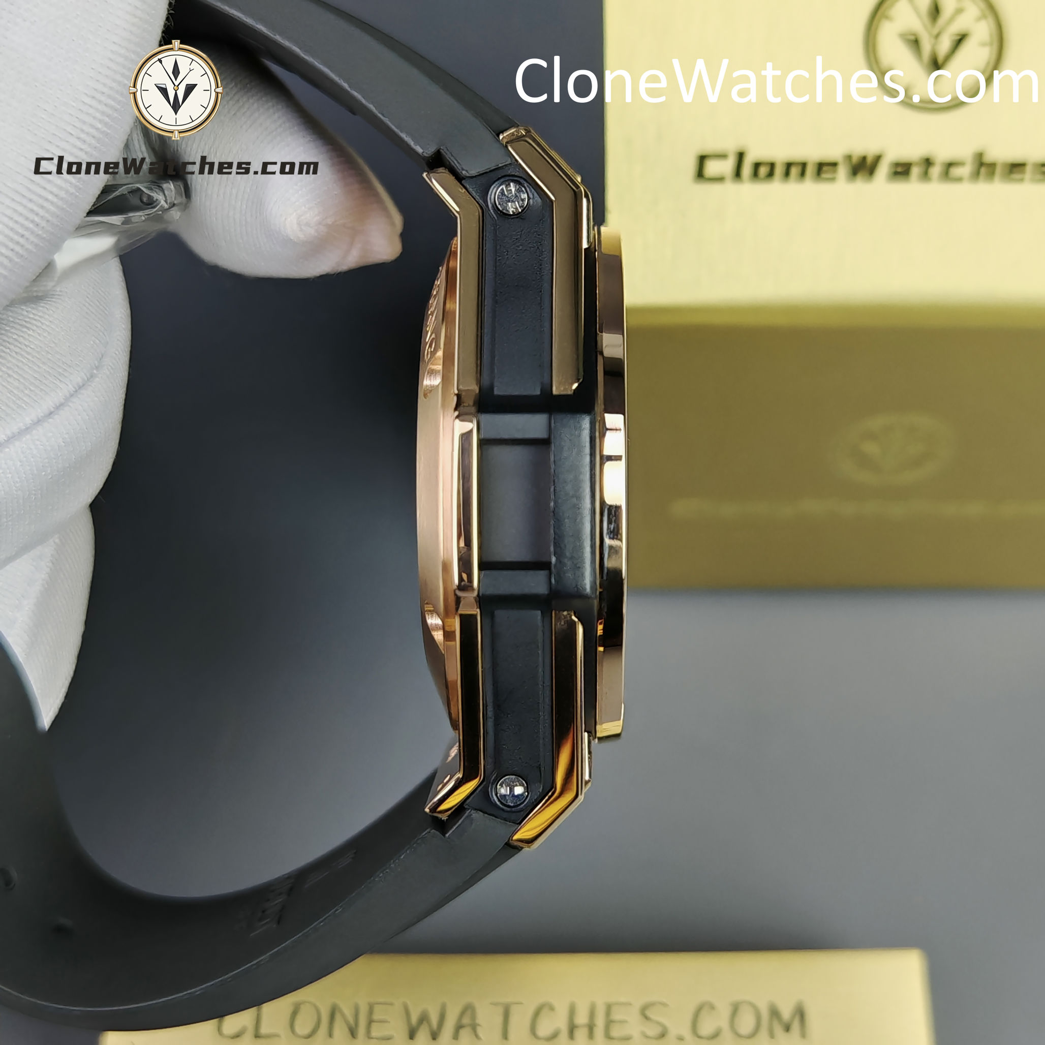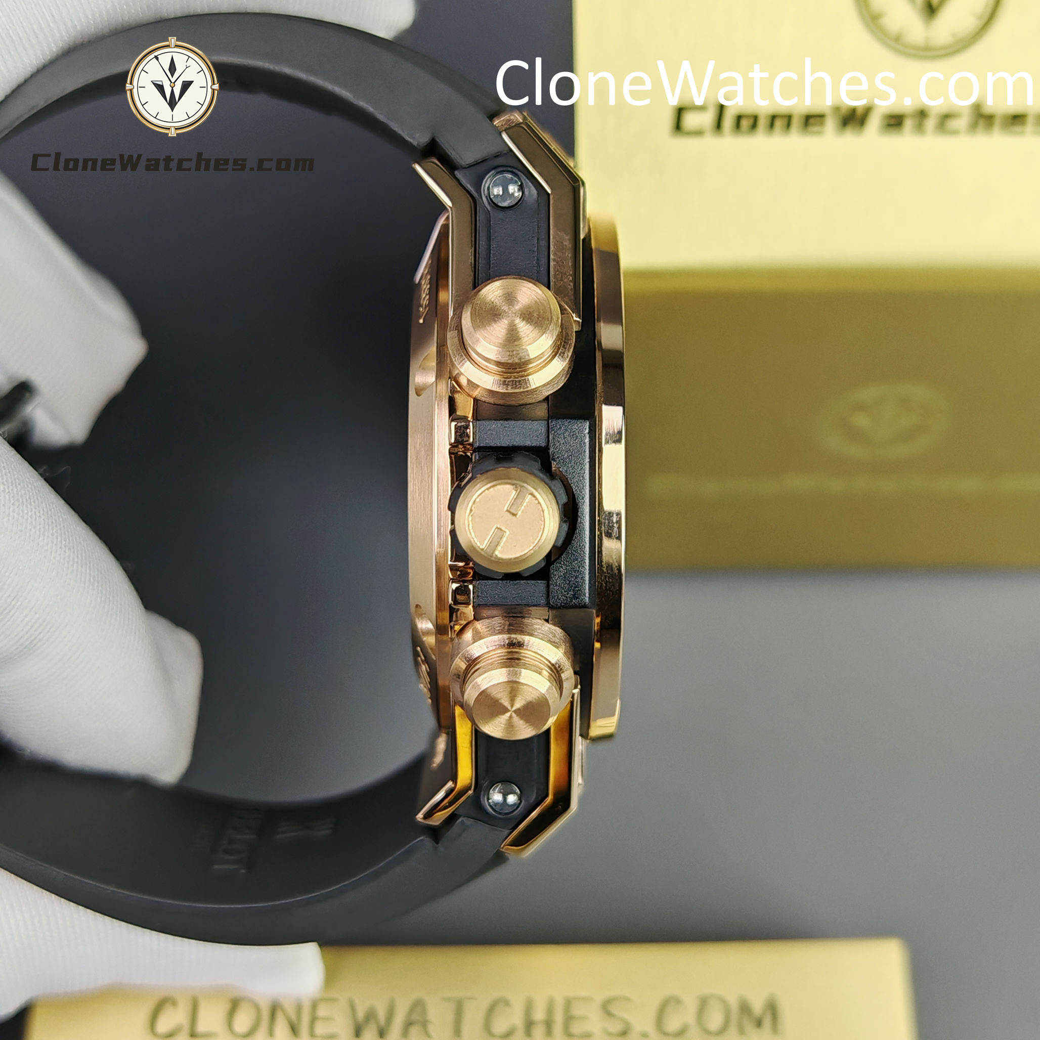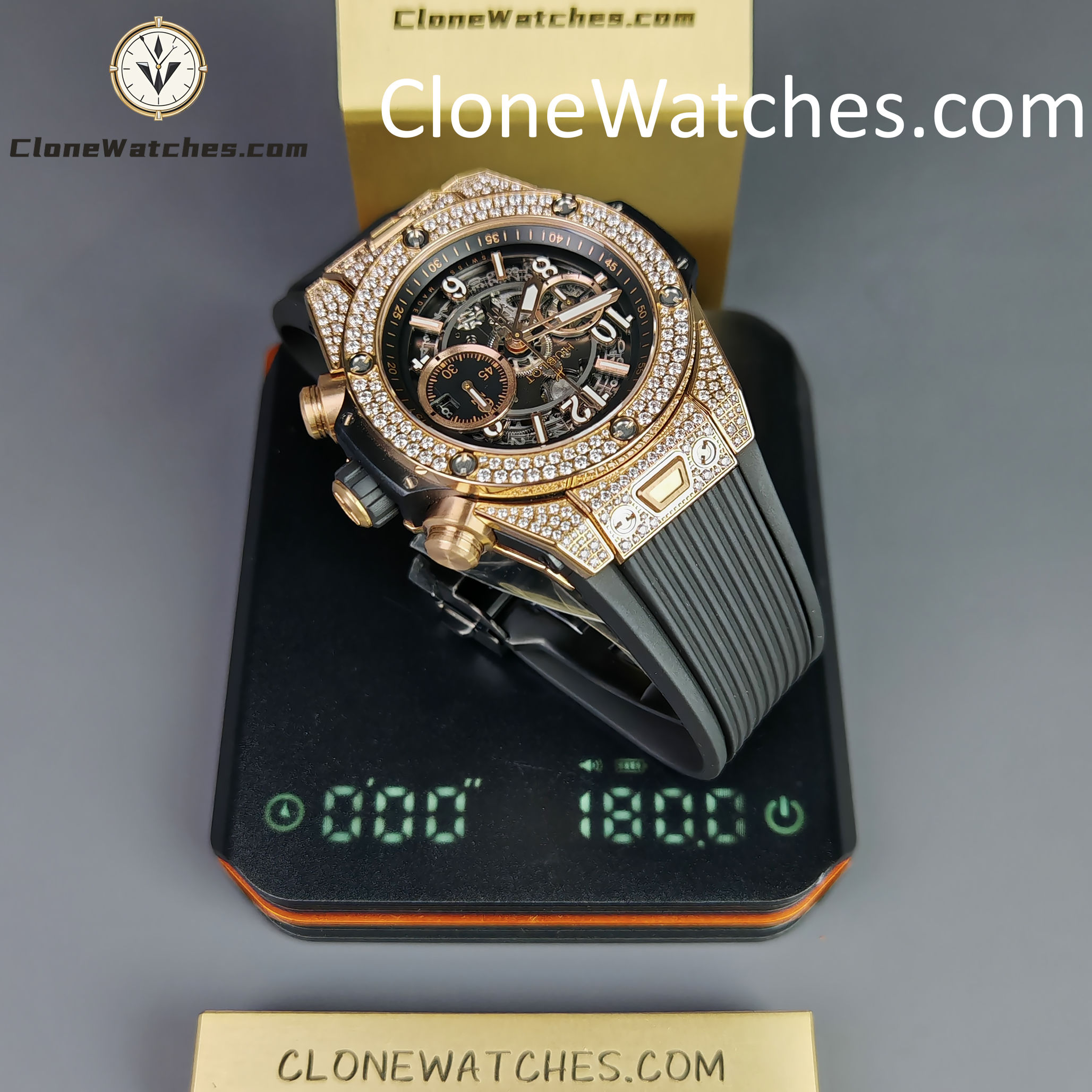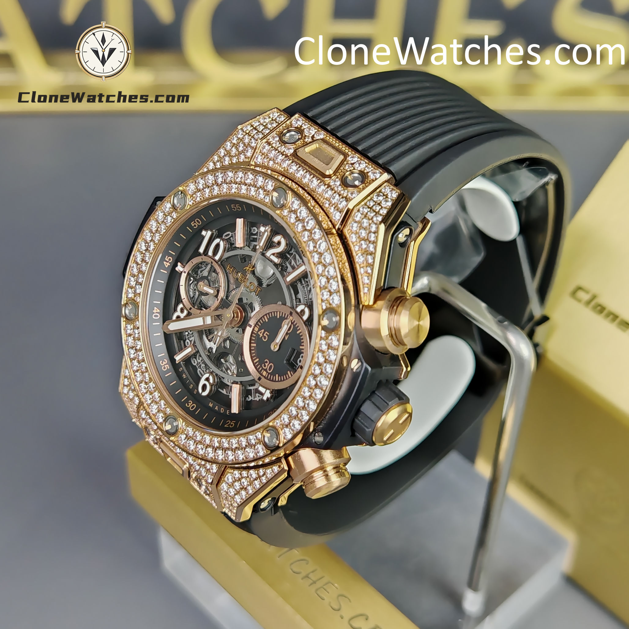 - Case & Band: 42mm King Gold Plated (Pavé Set) / Quick-Change Rubber