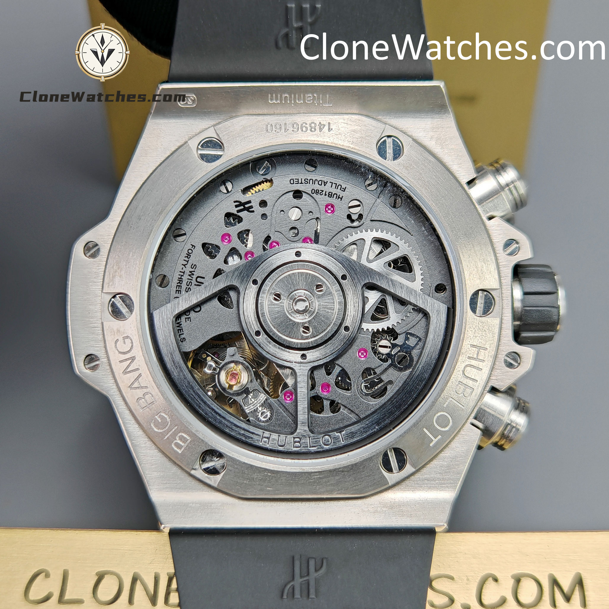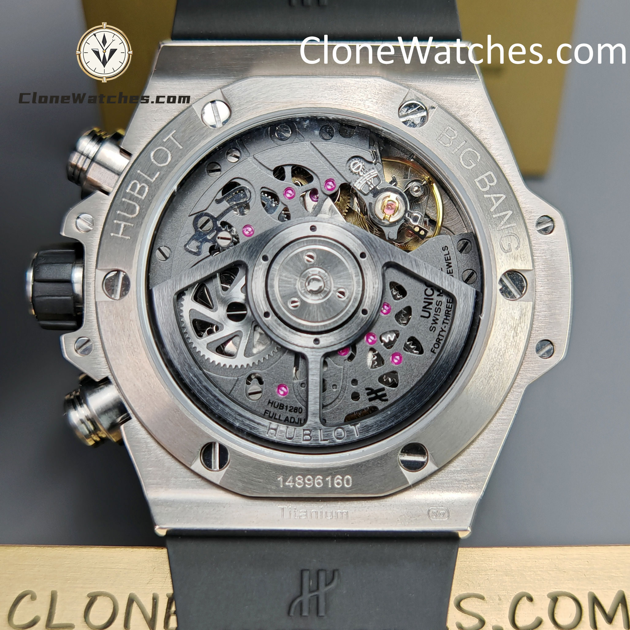 Customized UNICO HUB 1280 automatic chronograph movement, Clone Watches uses original materials, grade 5 titanium, making the watch light and comfortable, sapphire mirror, one-button quick-release strap, original data shape, making its size ratio exactly the same as the original
