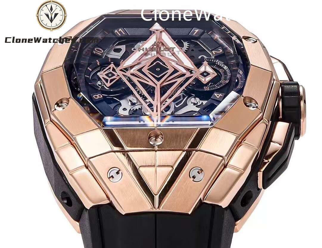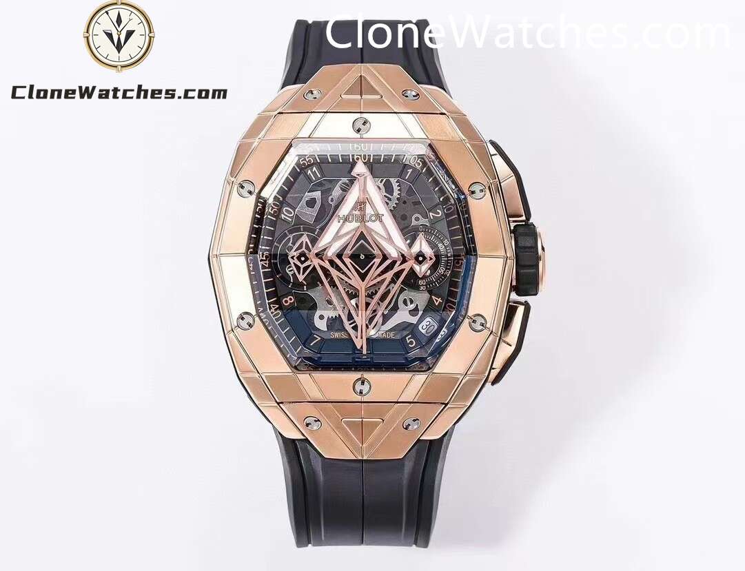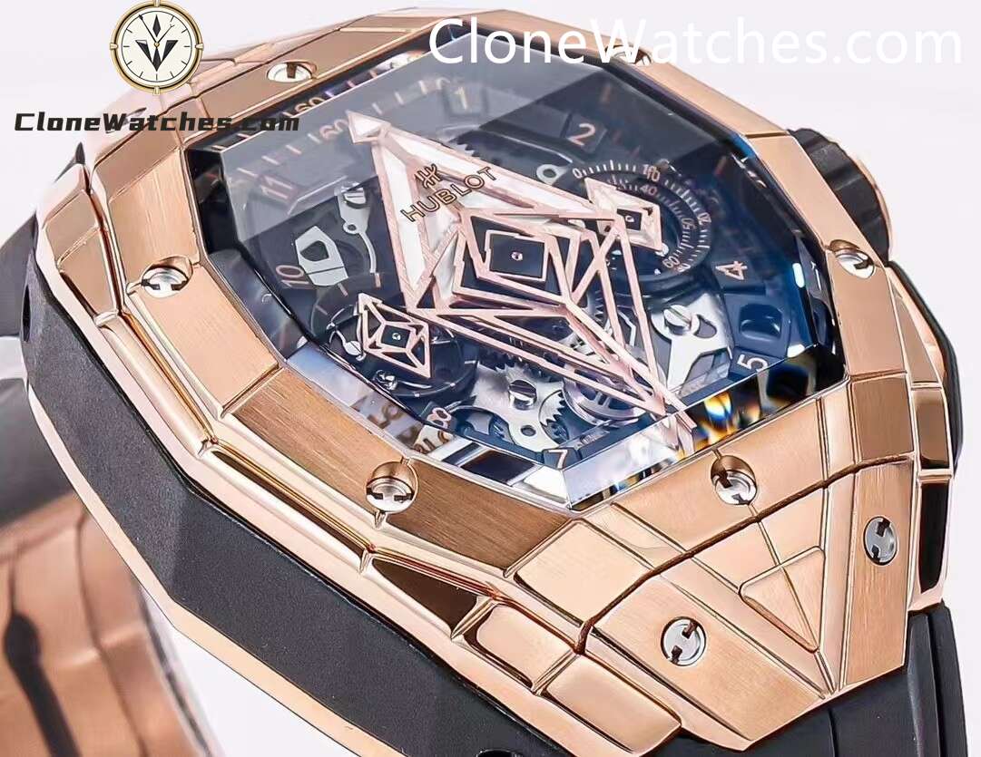 Hublot Spirit of Big Bang Sang Bleu Rose Gold Blue, one generation is better than the next. Super Clone Watches has a diameter of 42 mm and adopts a barrel-shaped multi-faceted structure design, which further enhances the three-dimensional visual effect.