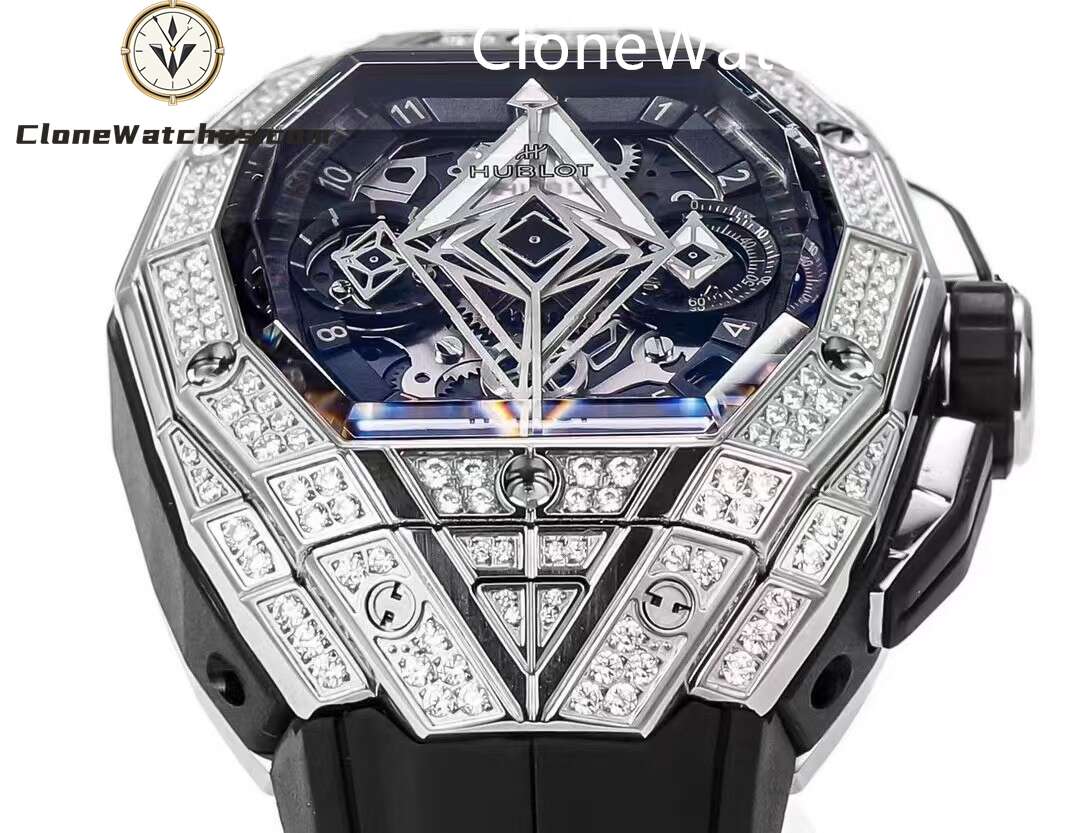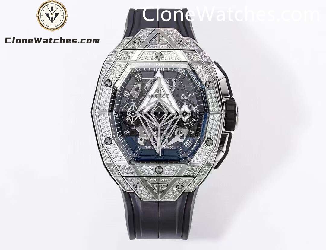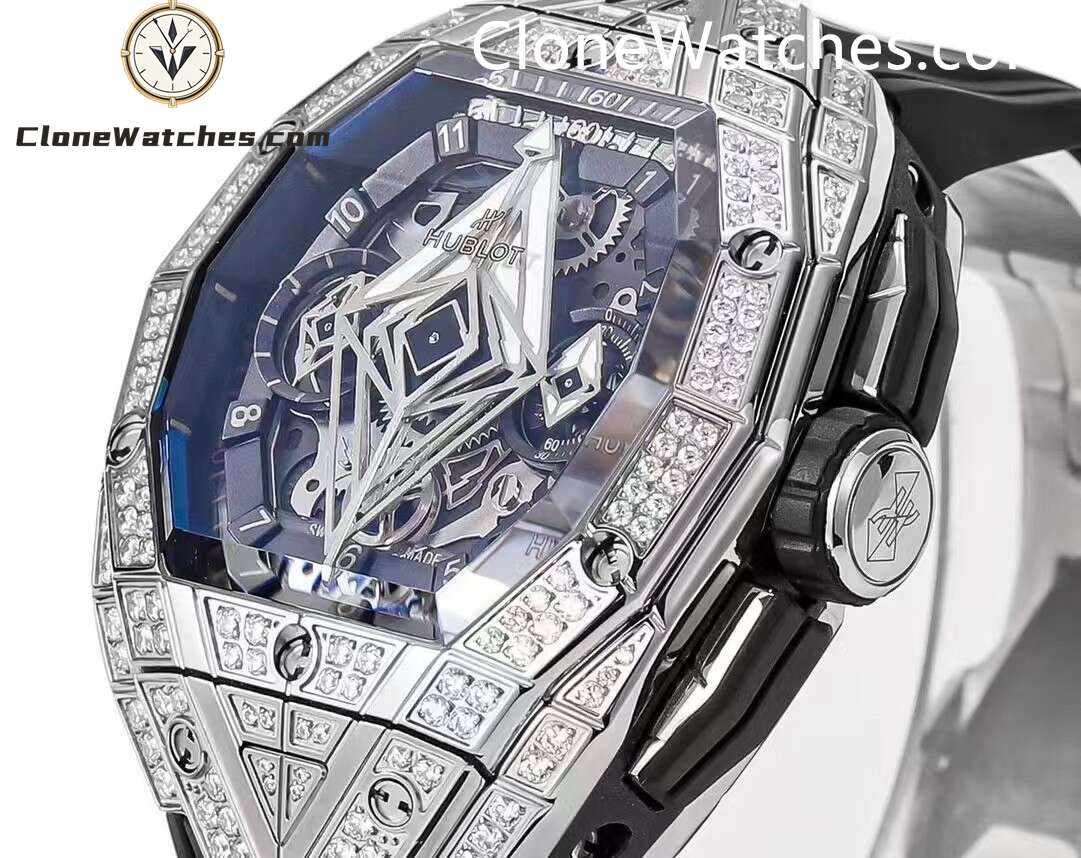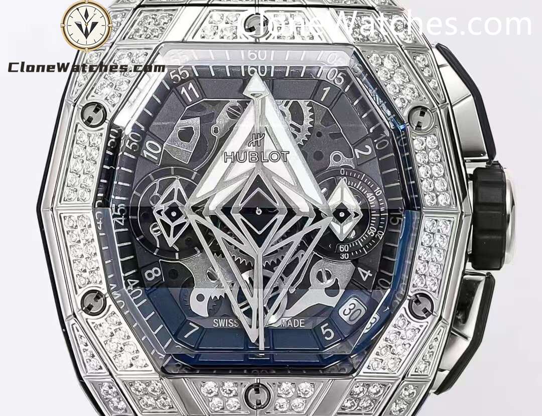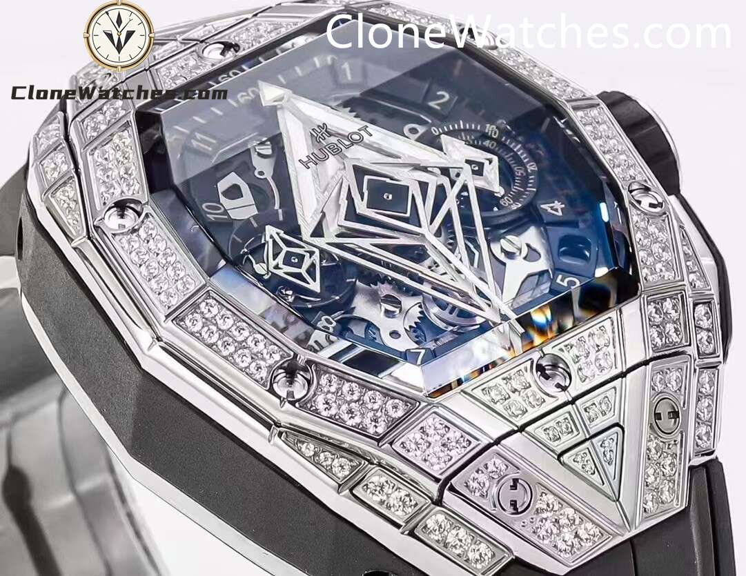 Hublot Spirit of Big Bang Sang Bleu Titanium Pavé, one generation after another. Super Clone Watches has a diameter of 42 mm and adopts a barrel-shaped multi-faceted structure design, which further enhances the three-dimensional visual effect.