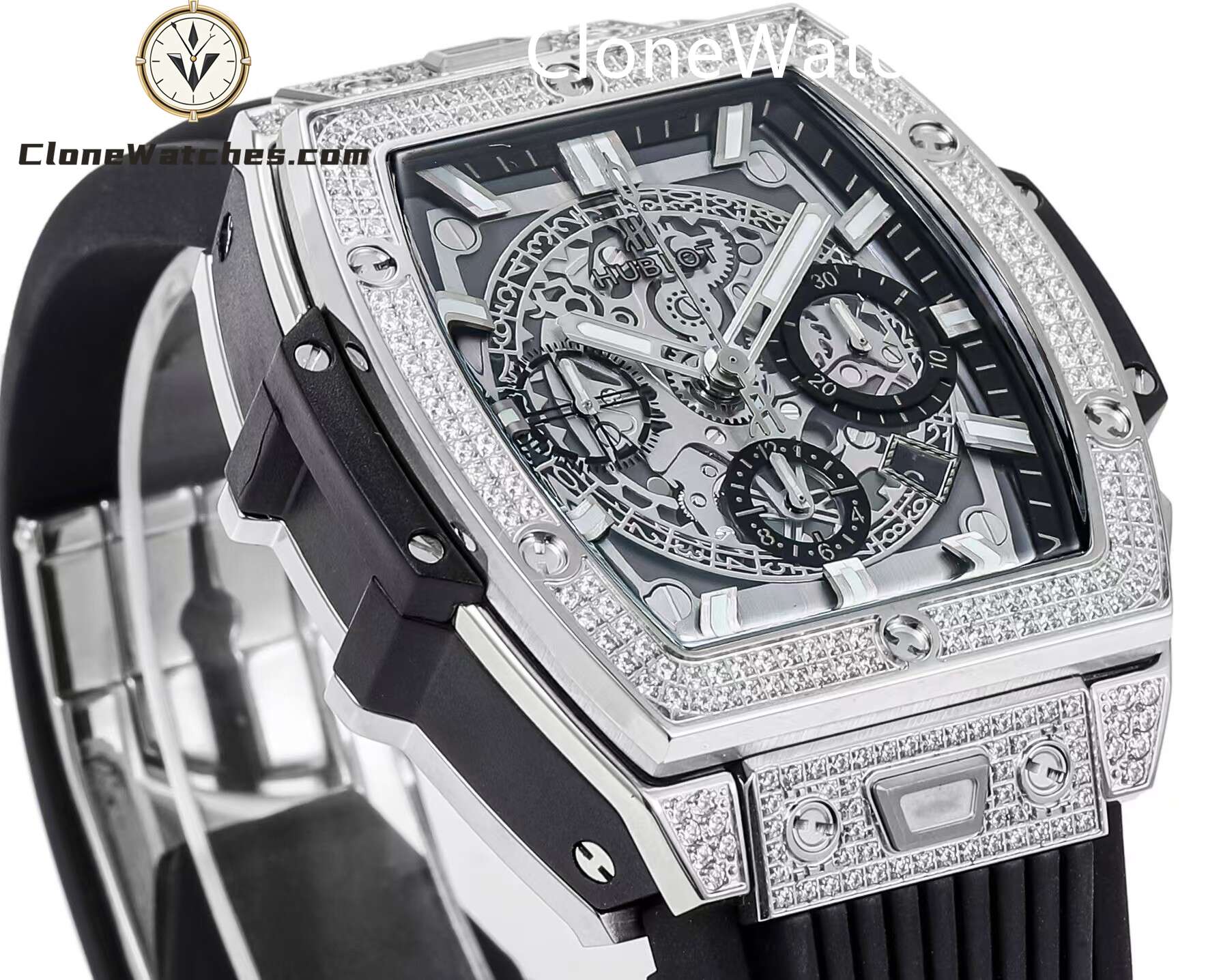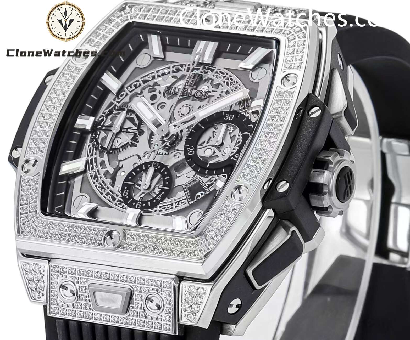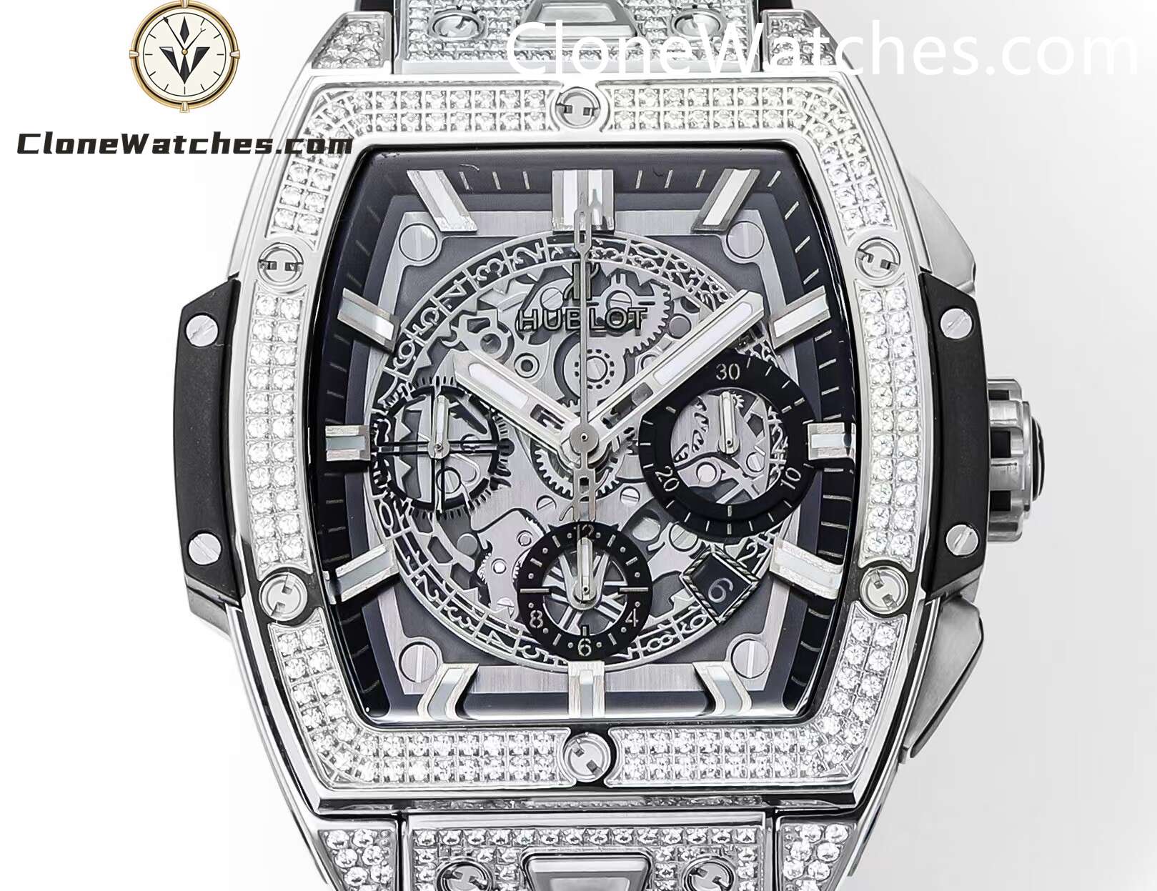 Hublot Spirit of Big Bang Titanium Pavé Super Clone Watches combines all the iconic features of the Spirit of Big Bang series with a new barrel-shaped case. The case is made of titanium and resin, and uses six H-shaped screws to build a “sandwich” structure to convey the concept of “integrated technology”. It is perfectly cloned with an exclusive customized HUB4700 movement, original folding clasp, and customized fluororubber strap. Clone Watches is equipped with a “one-button” quick-change strap system. The wearer can easily and quickly replace the strap with just a light press! ! !