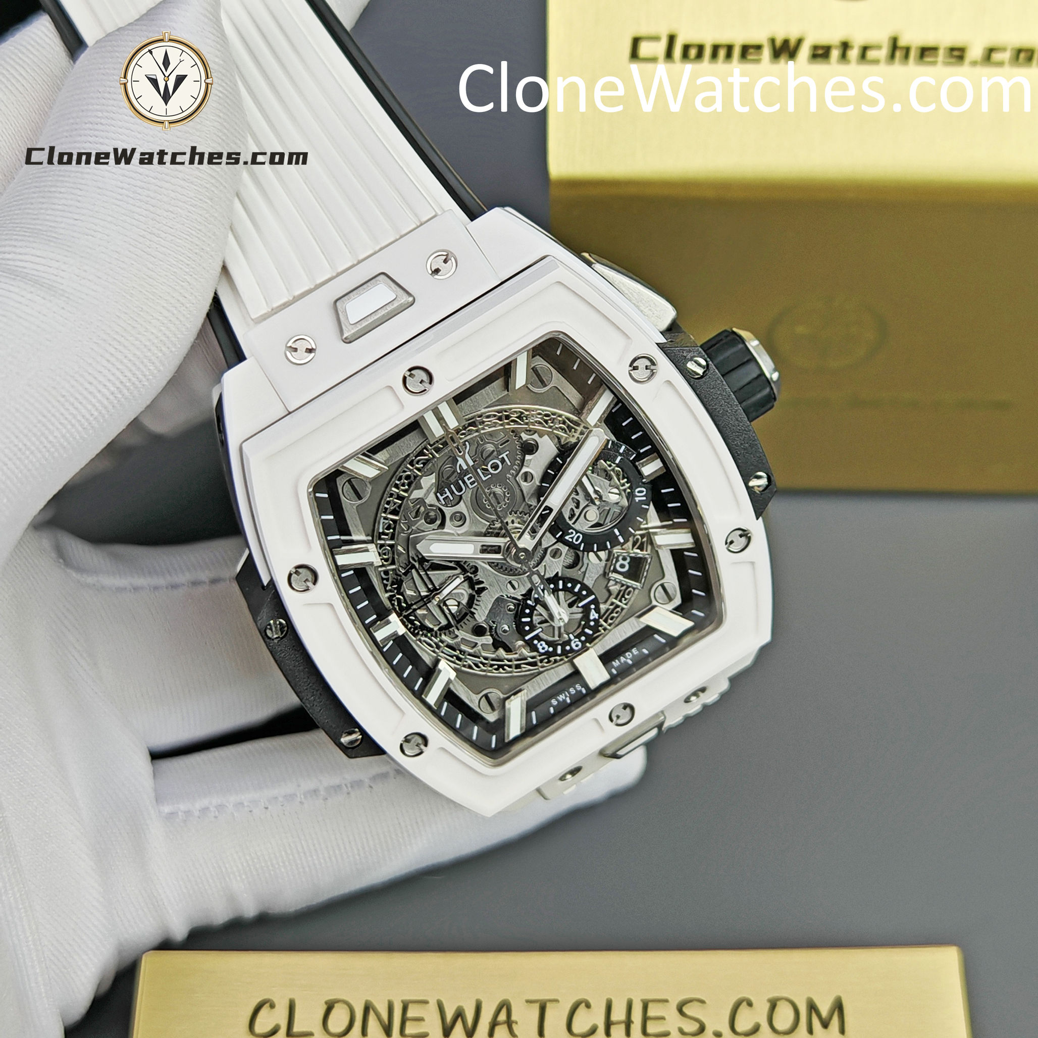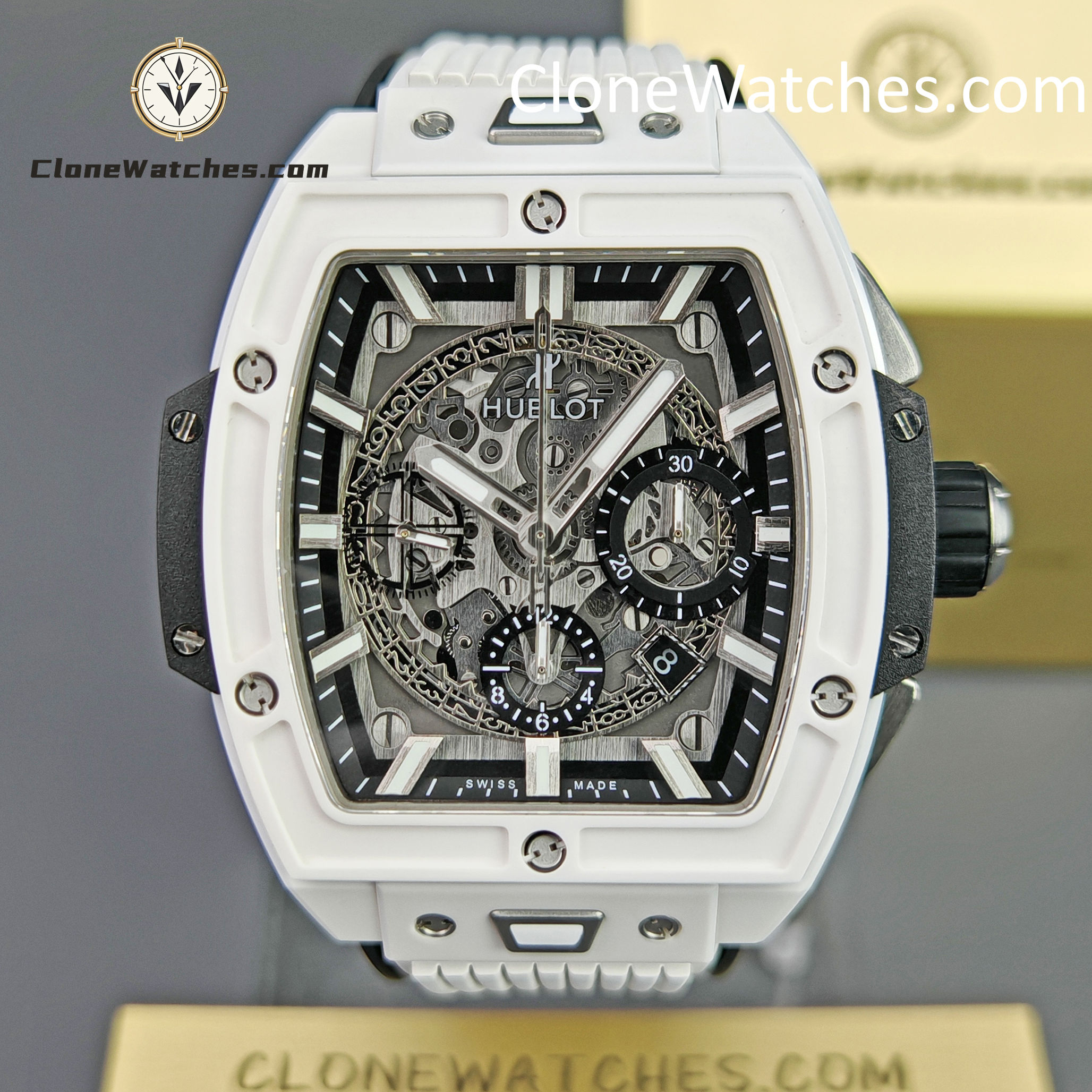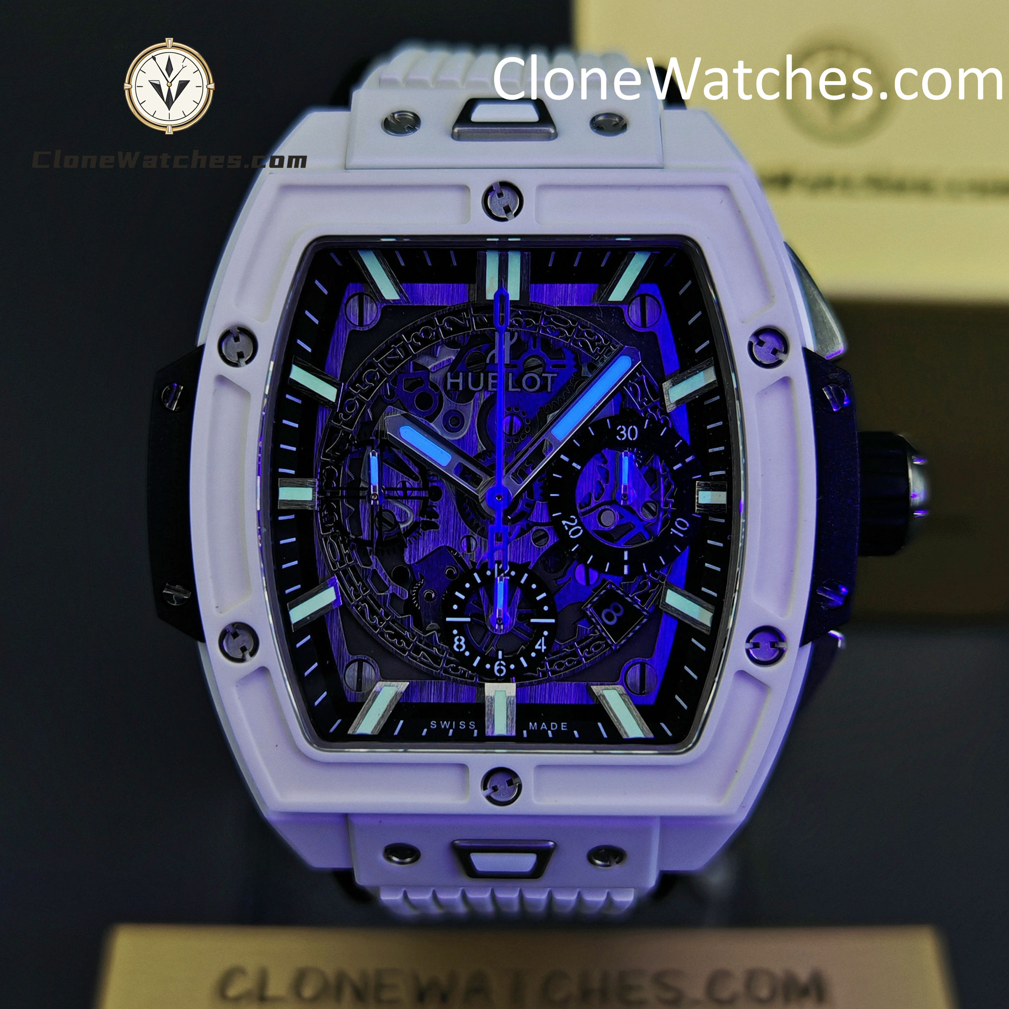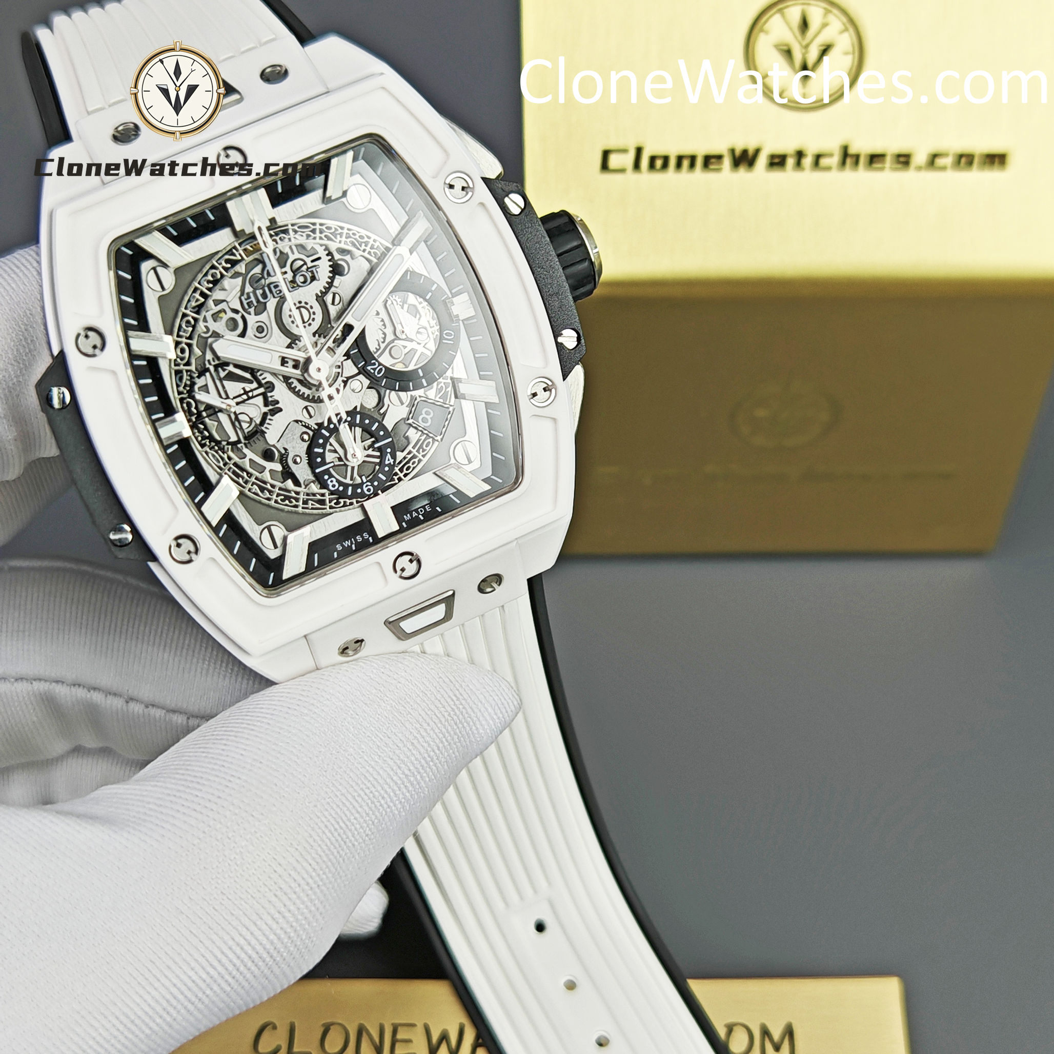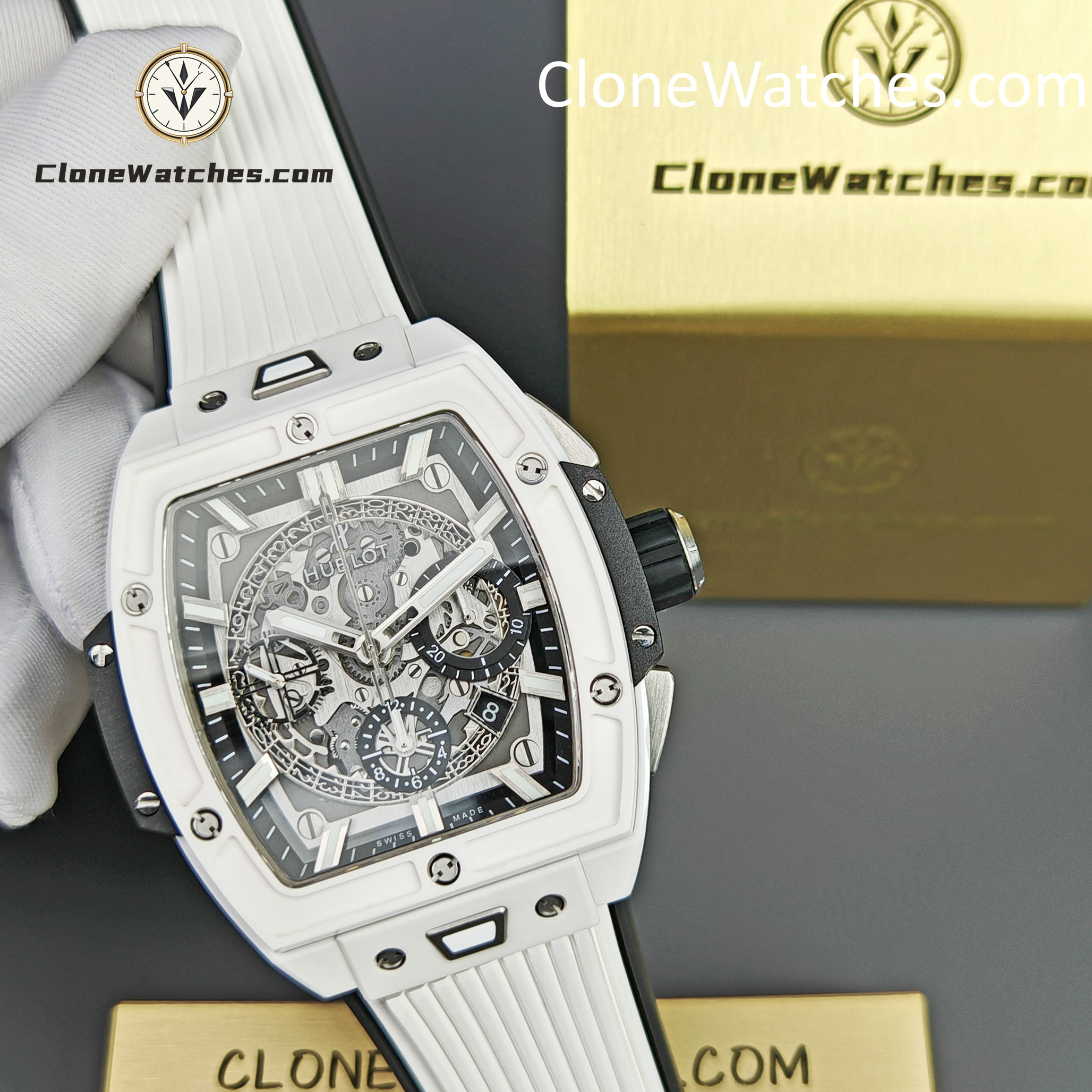Hublot Spirit of Big Bang White Ceramic Super Clone Watches combines all the iconic features of the Spirit of Big Bang series with a new barrel-shaped case. The case is made of titanium and resin, and uses six H-shaped screws to build a “sandwich” structure to convey the concept of “integrated technology”. It is perfectly cloned with an exclusive customized HUB4700 movement, original folding clasp, and customized fluororubber strap. Clone Watches is equipped with a “one-button” quick-change strap system. The wearer can easily and quickly replace the strap with just a light press! ! !
