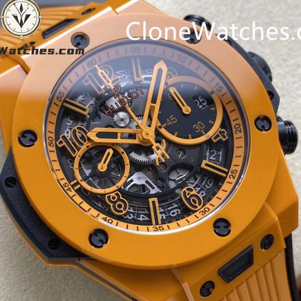 - Case & Band: 42mm Polished Orange Ceramic / Rubber
