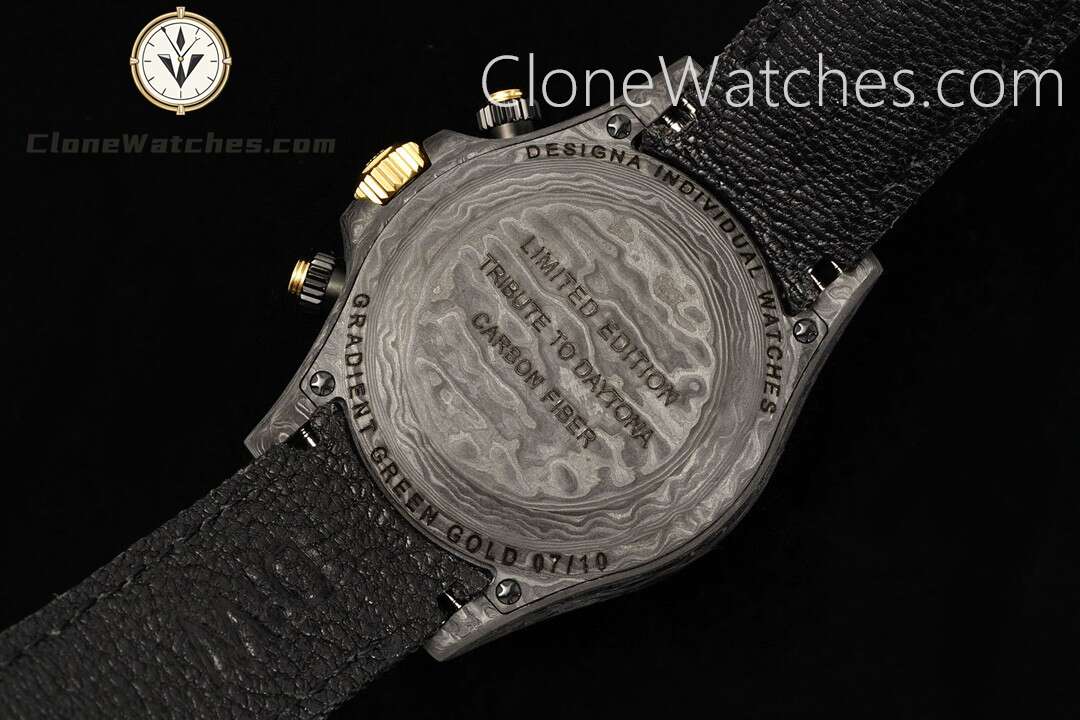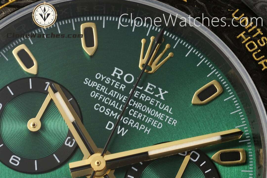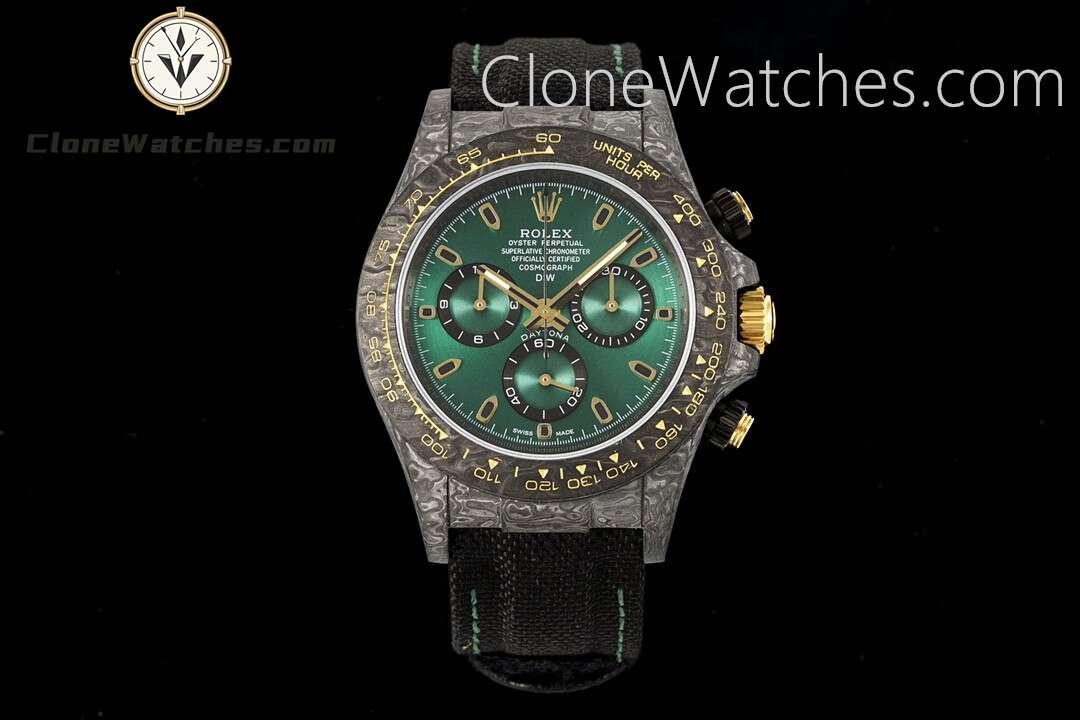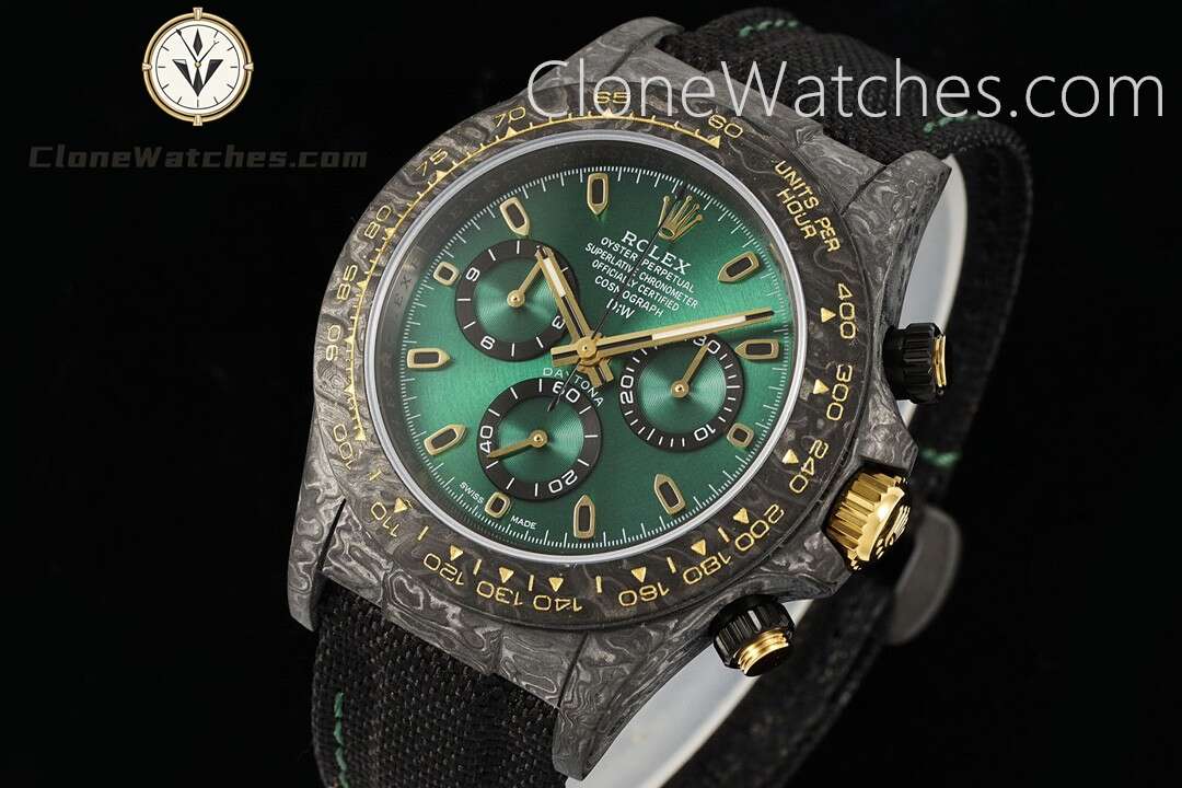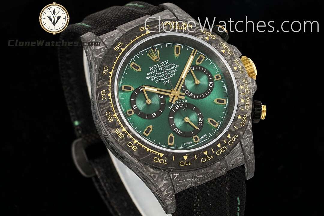 Rolex Daytona “GRADIENT GREEN GOLD” Super Clone Watches are not only light to wear, but also very tough in appearance. DiW Carbon Daytona has been updated with “GRADIENT GREEN GOLD”. Green has always been popular, but the styles available on the market are limited. This update also has a new color to choose from.