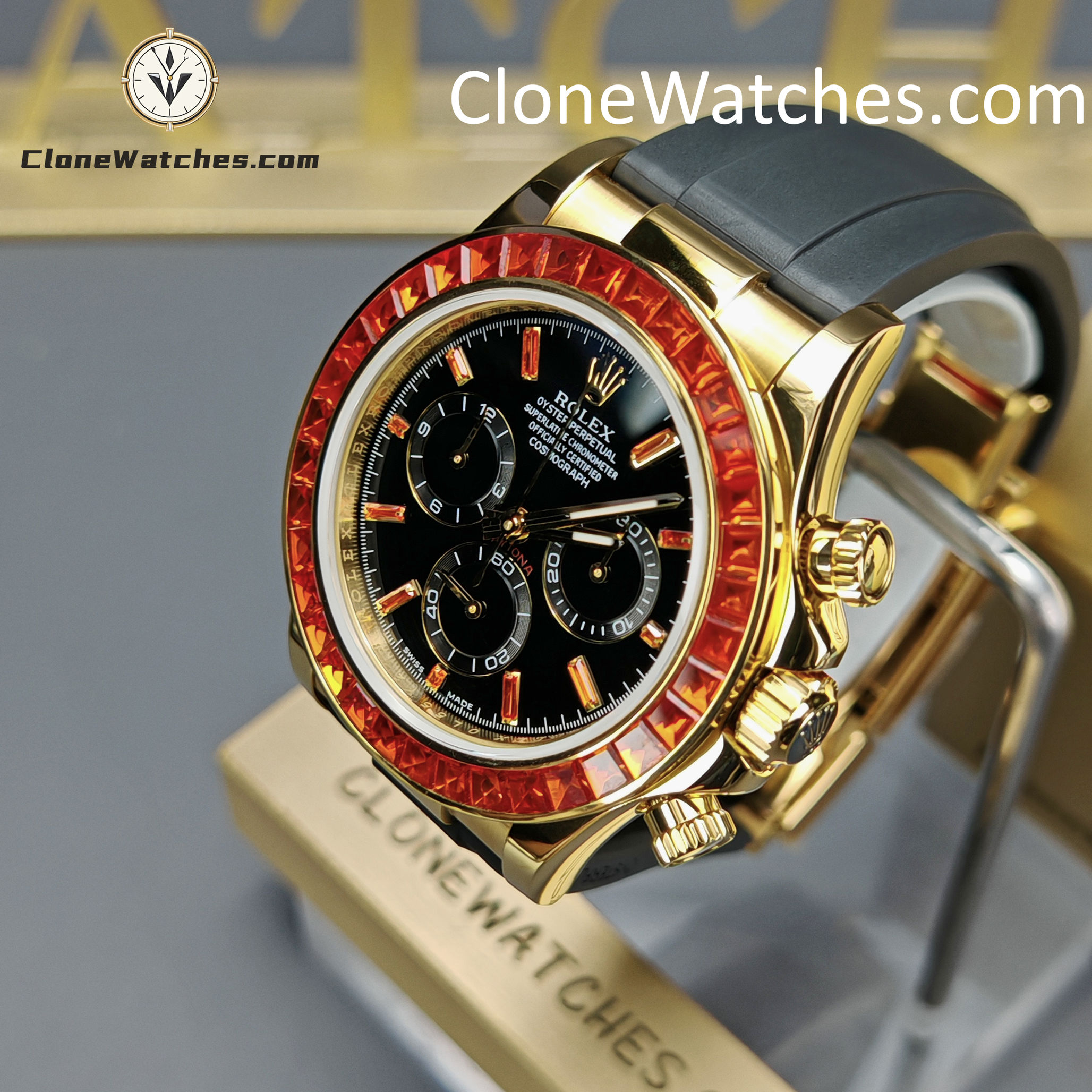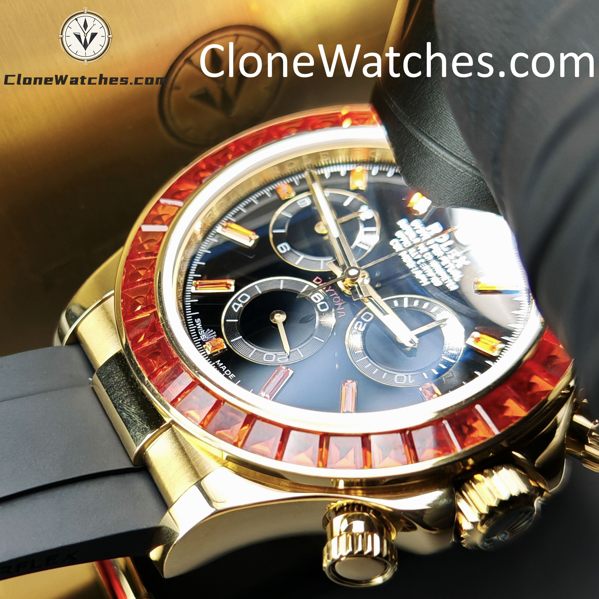 Super Clone Watches – Modified Daytona 18K Gold Diamond Bezel