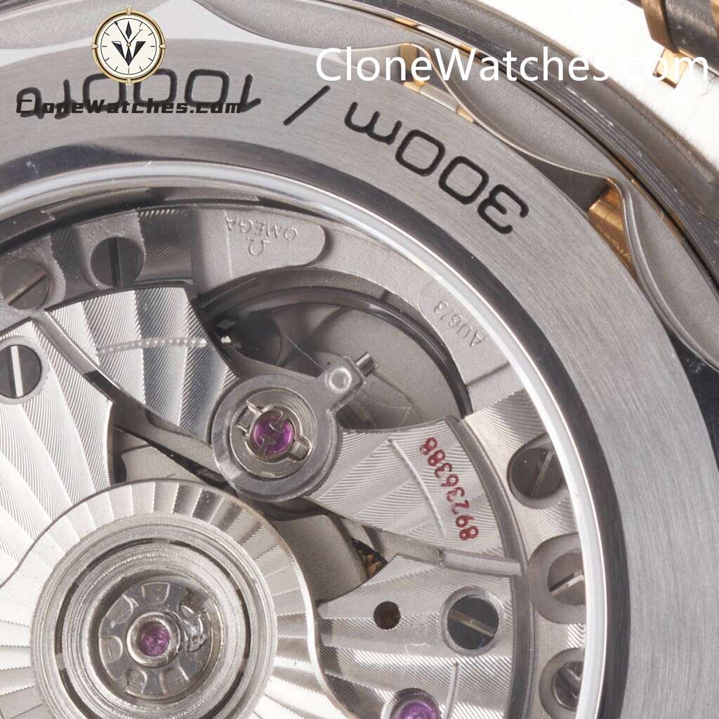 4: Super Clone Watches is equipped with 8800 coaxial movement, the entire movement is polished and decorated with Geneva waves, ceramic ball bearings, bidirectional automatic winding system, silicon hairspring and free-sprung balance wheel bring 15,000 gauss anti-magnetic, power reserve 60 hours.