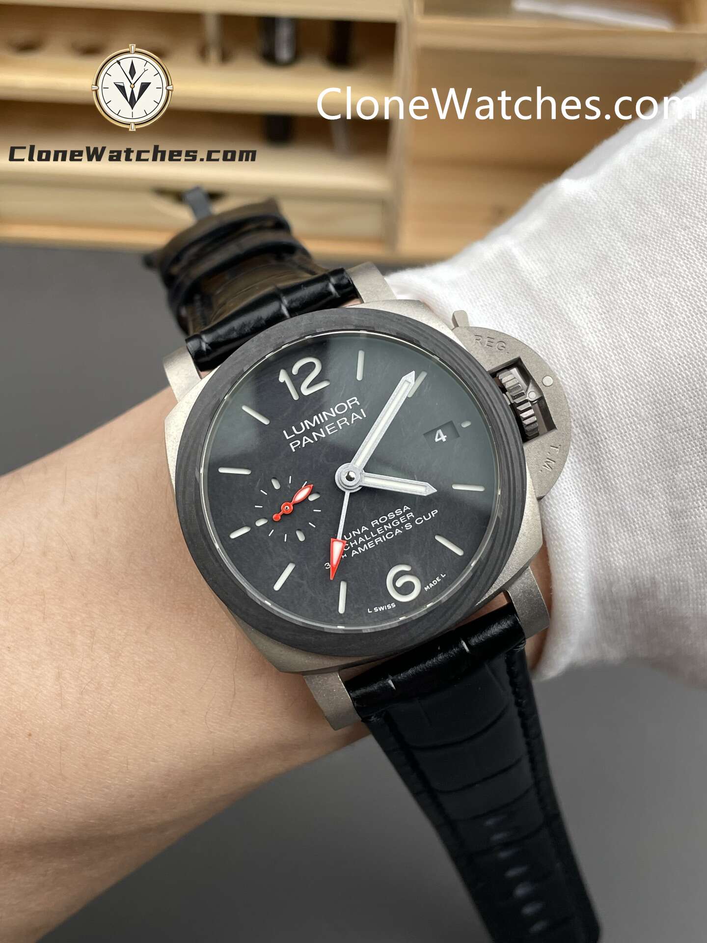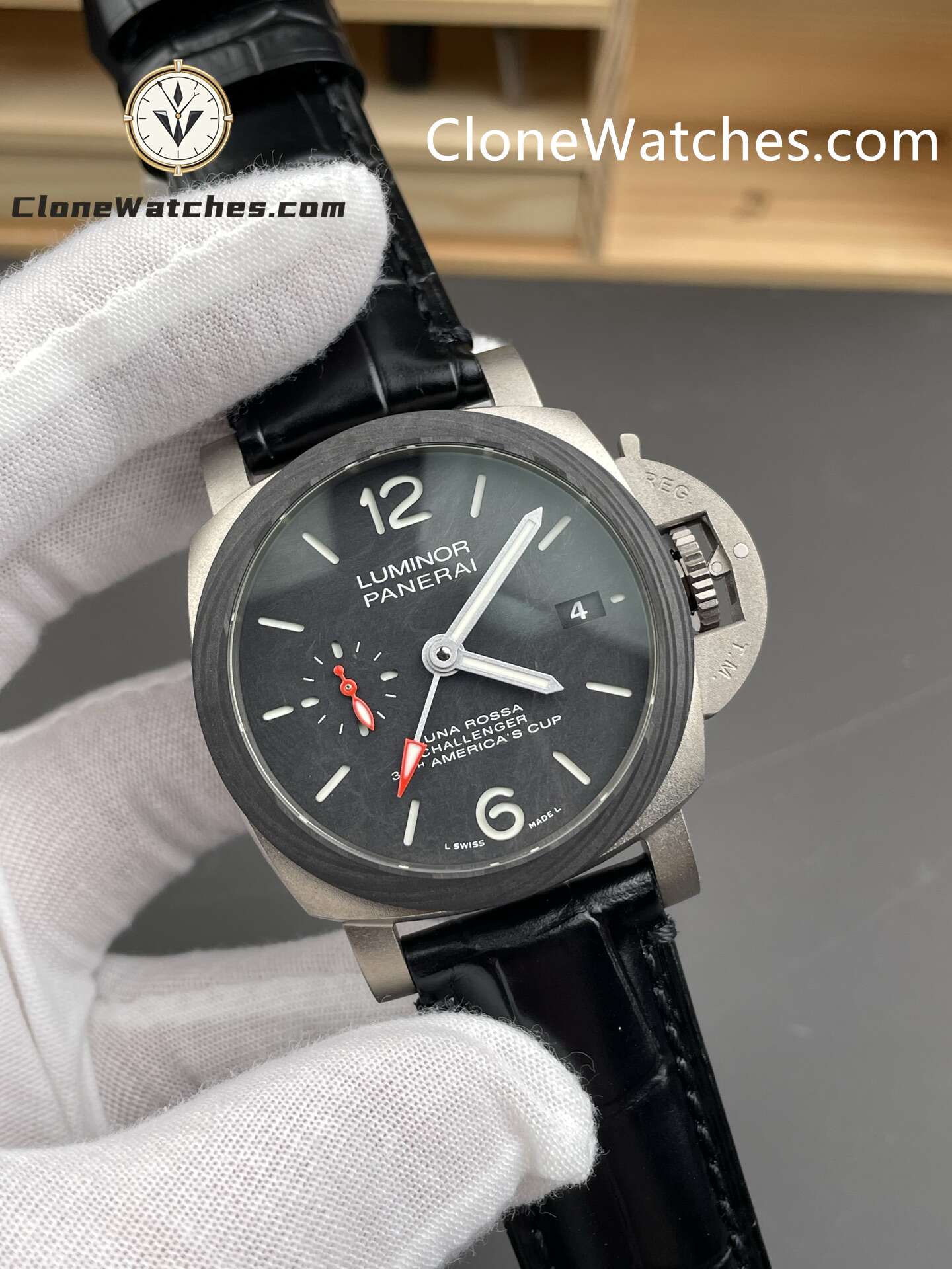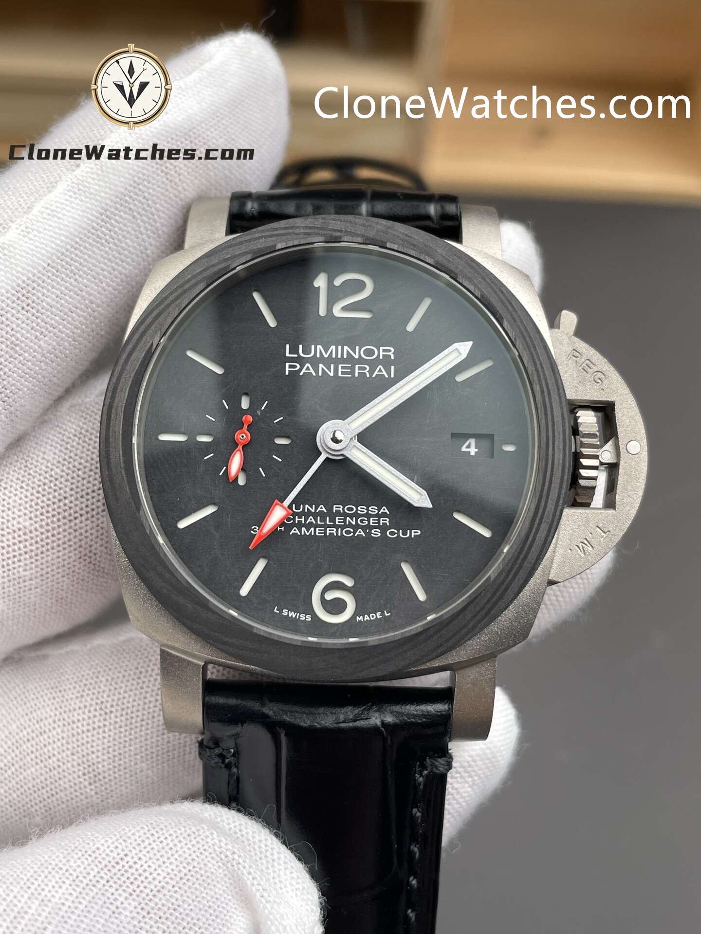 Experience precision and performance with the Panerai Super Clone Watches 1:1 Luminor Luna Rossa GMT PAM01096 42mm. Crafted from finely sandblasted titanium with a carbon fiber bezel, this luxury timepiece embodies strength and modern elegance.