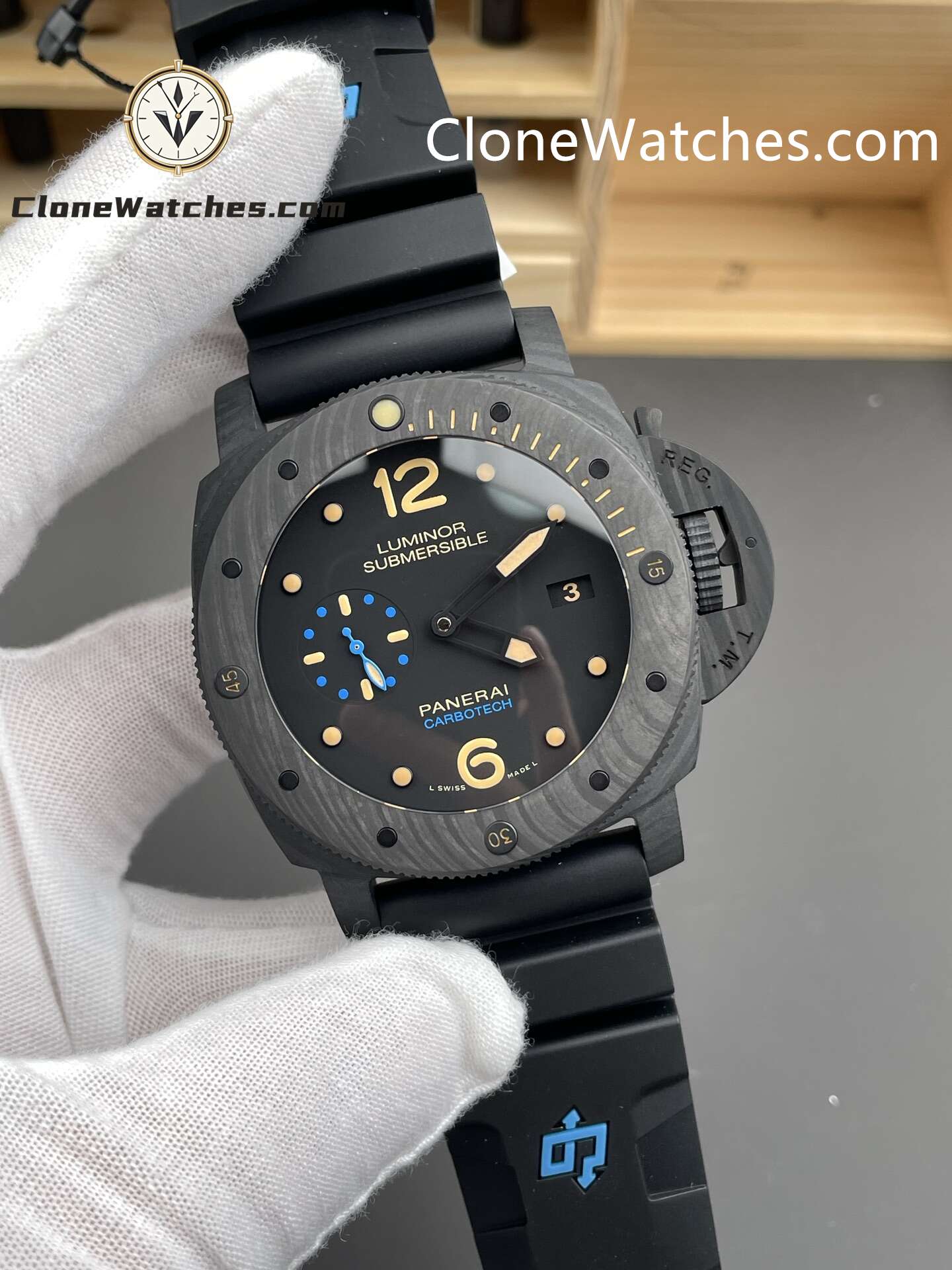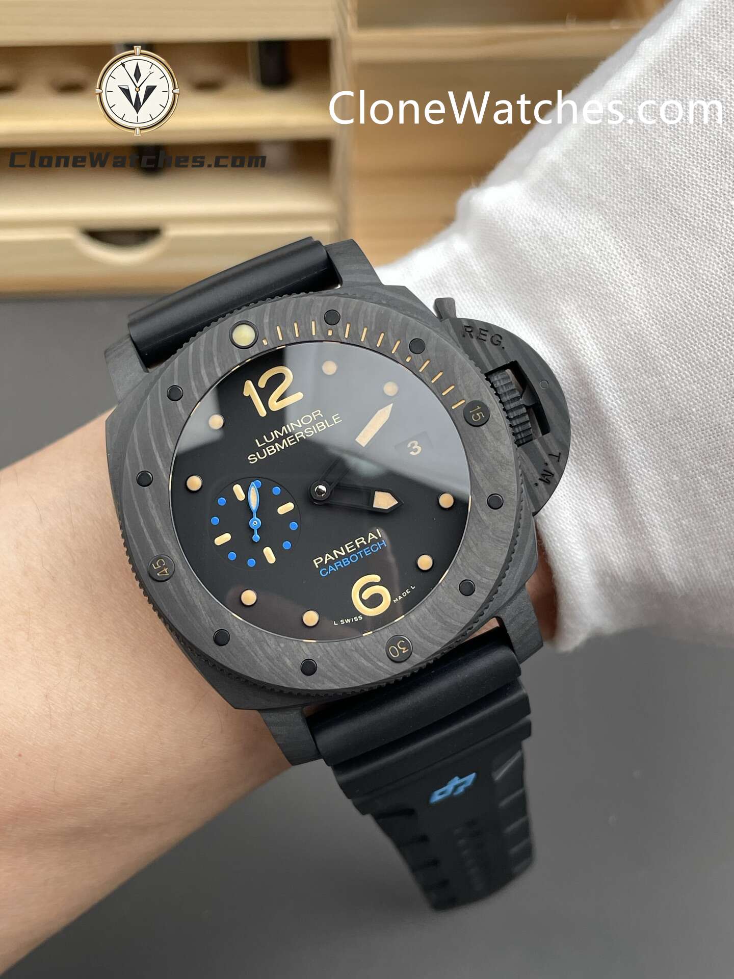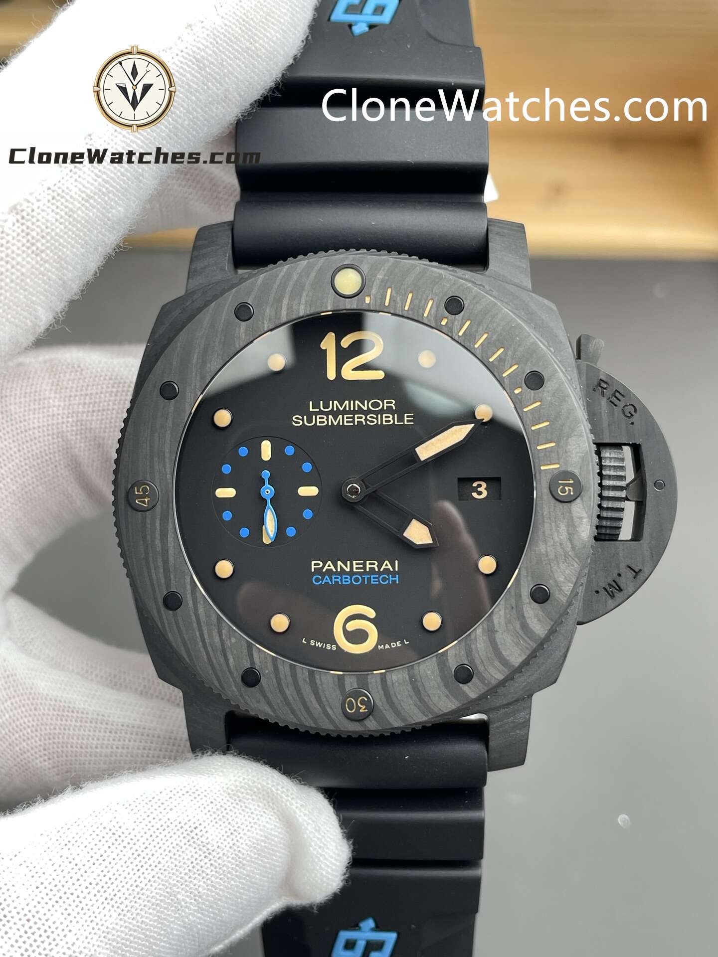 Experience the power and precision of the Panerai Clone Watches Luminor Submersible 1950 PAM00616 47mm — a remarkable 1:1 recreation of Panerai’s professional diving timepiece. Crafted with an ultra-light Carbotech carbon fiber case, this watch combines strength, durability, and a unique textured finish.