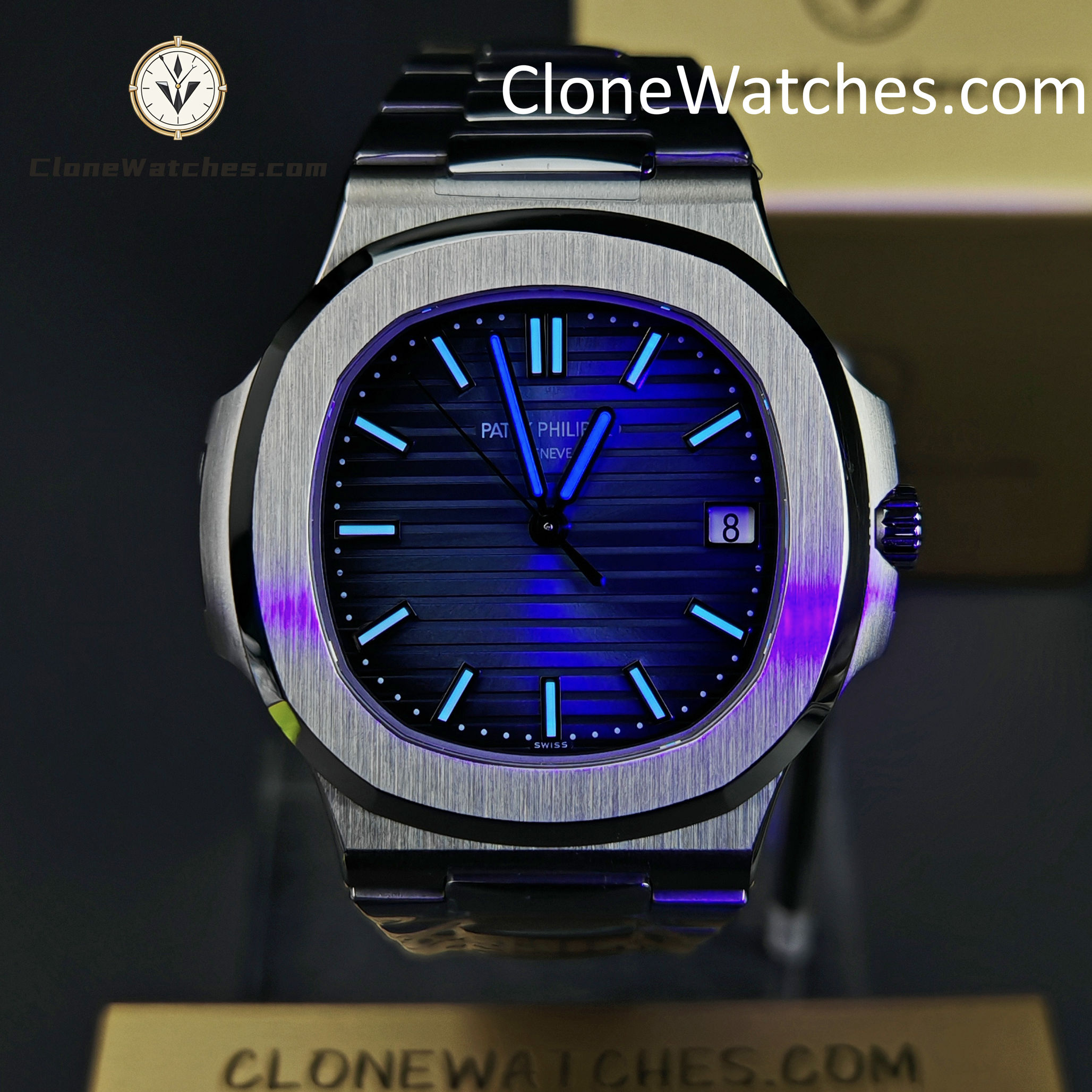 - Deep Blue Gradient: Rich “White Gold Exclusive” sunburst blue dial that fades to black.