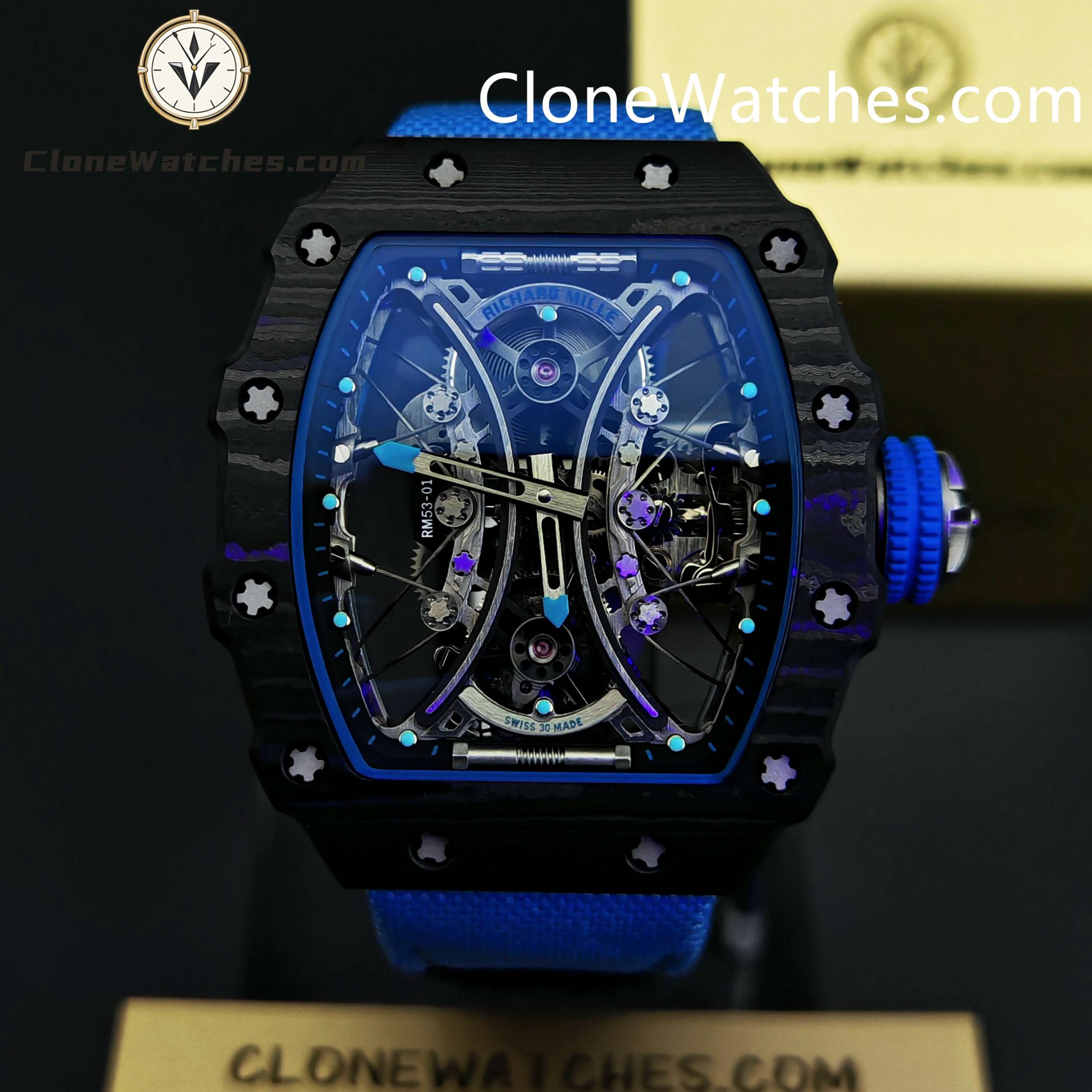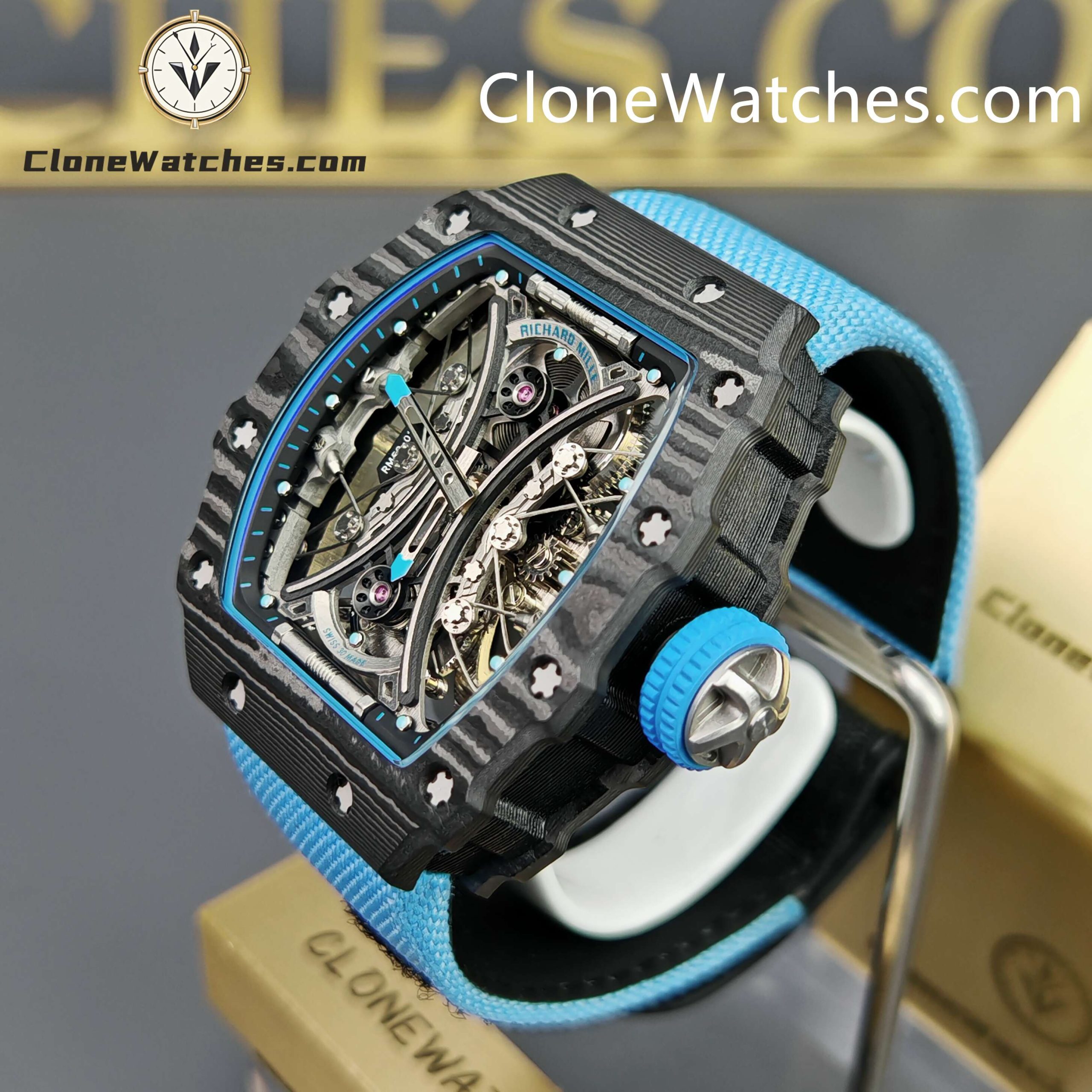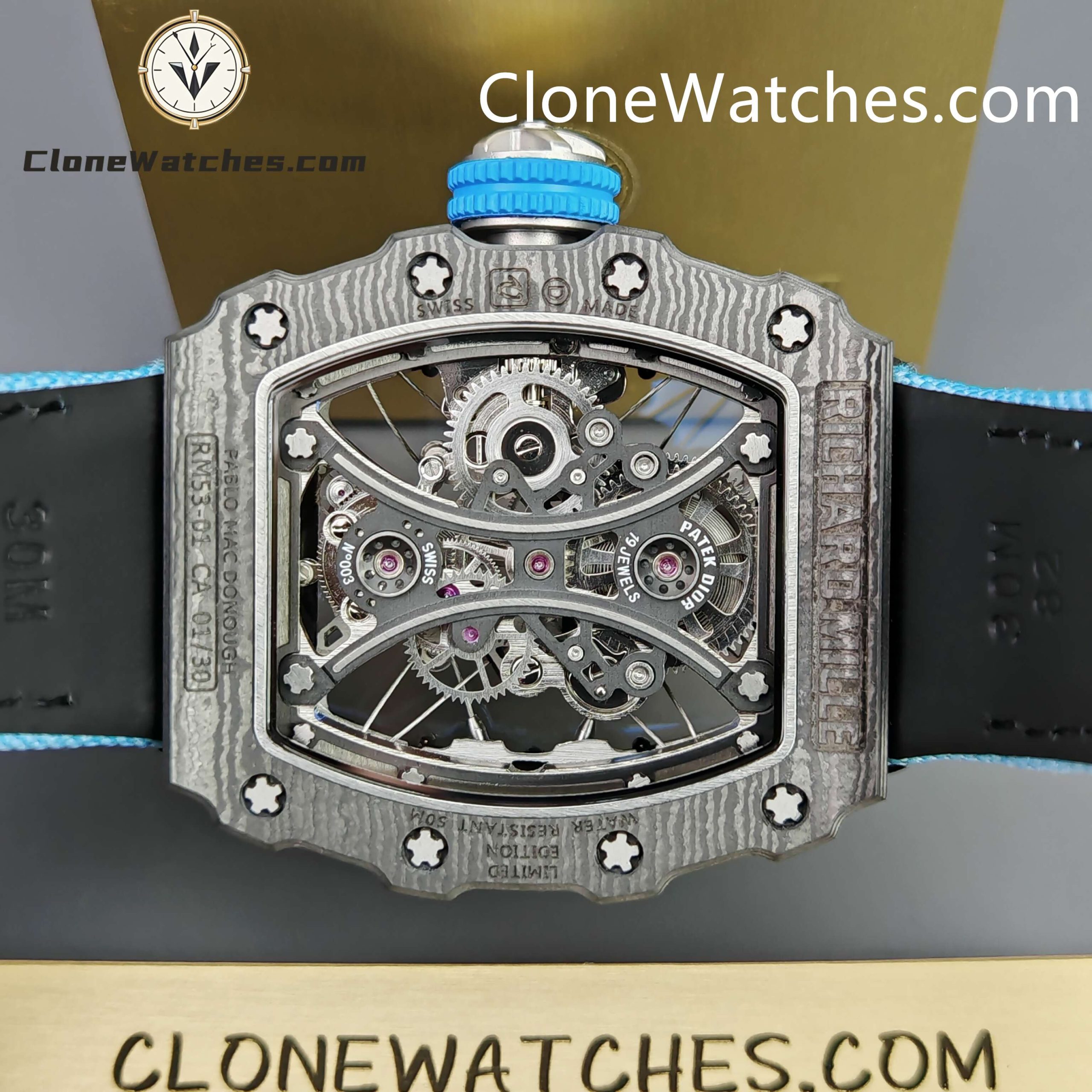 Case material: TPT seismic carbon fiber case (High quality material which gives this RM 53-01 Clone Richard Mille a textured look.