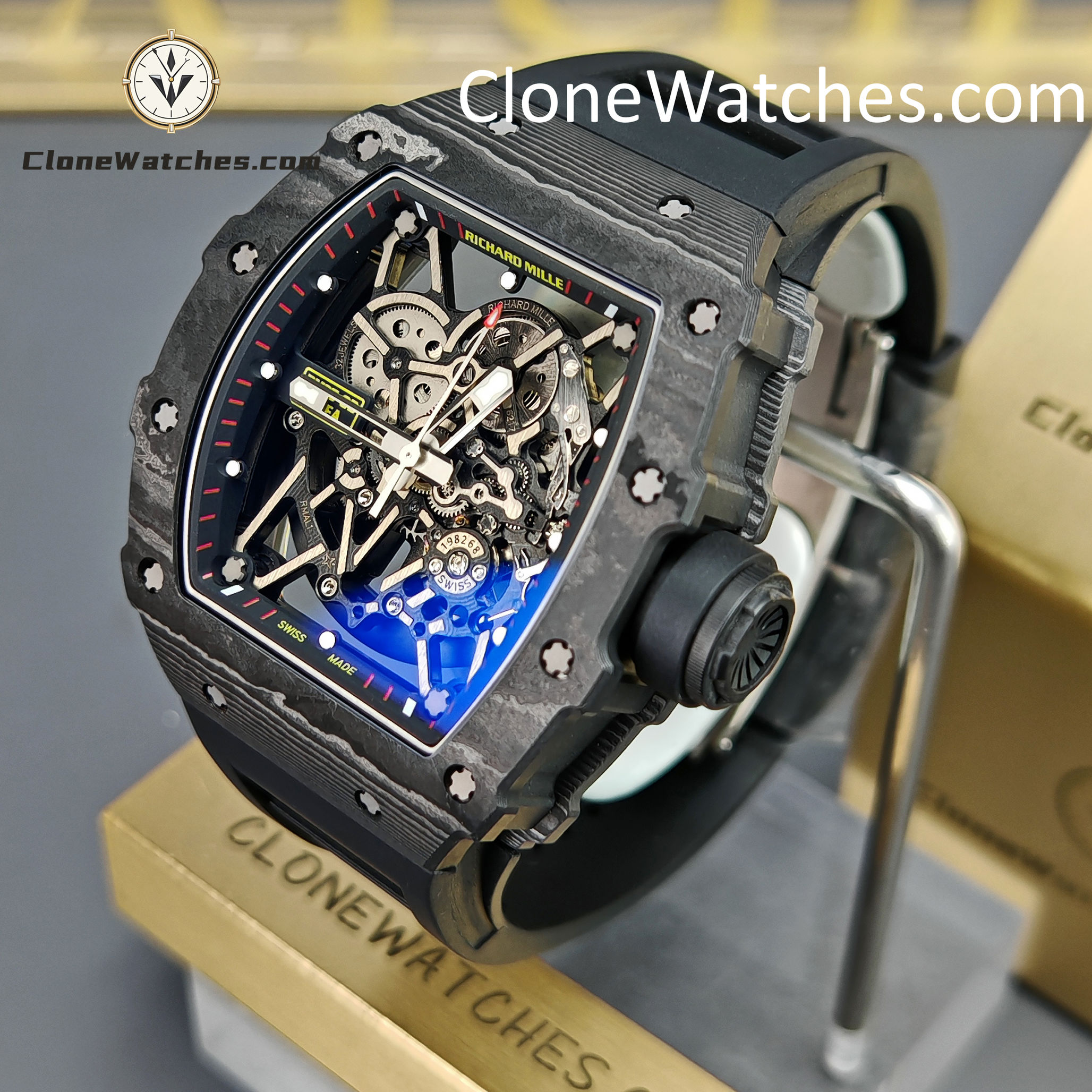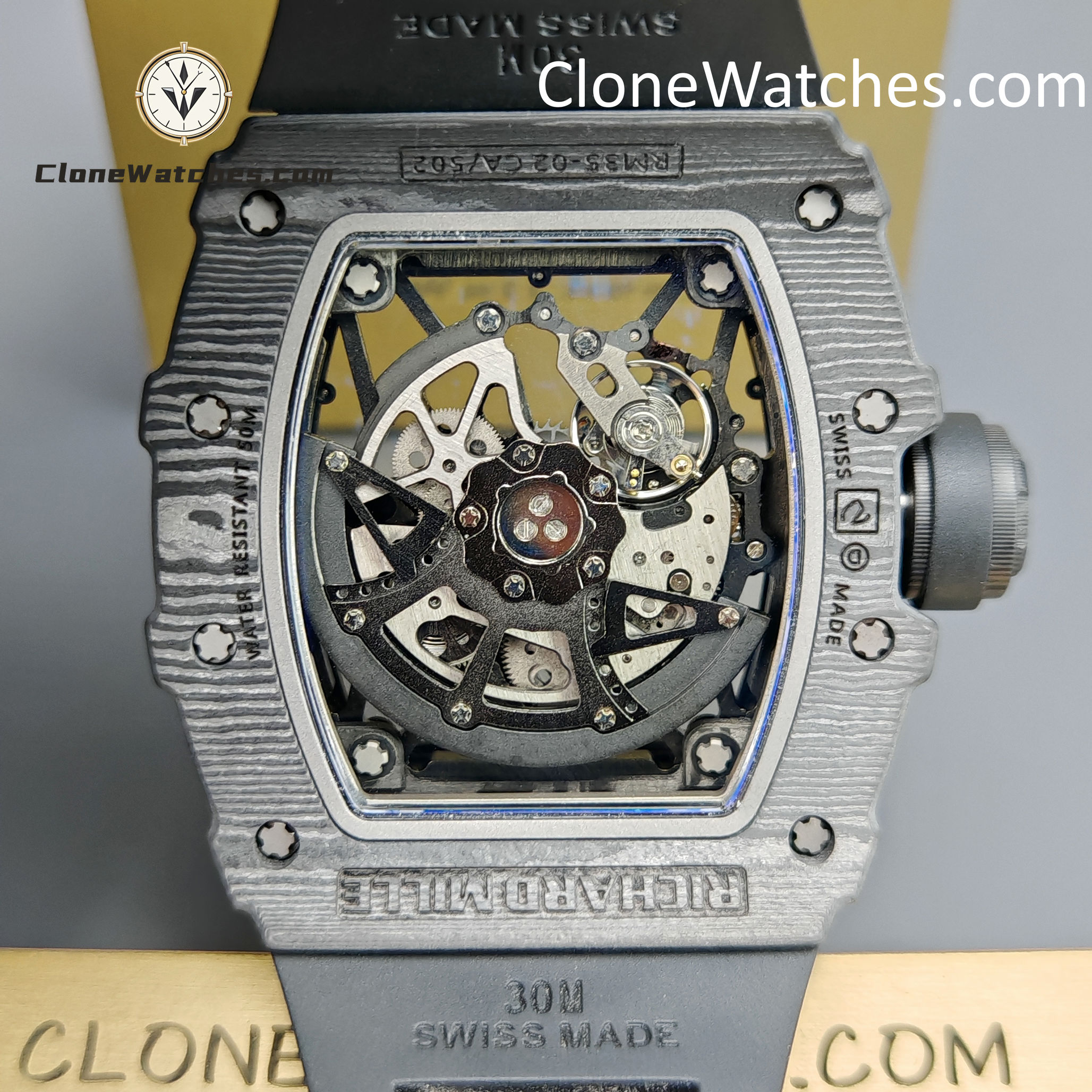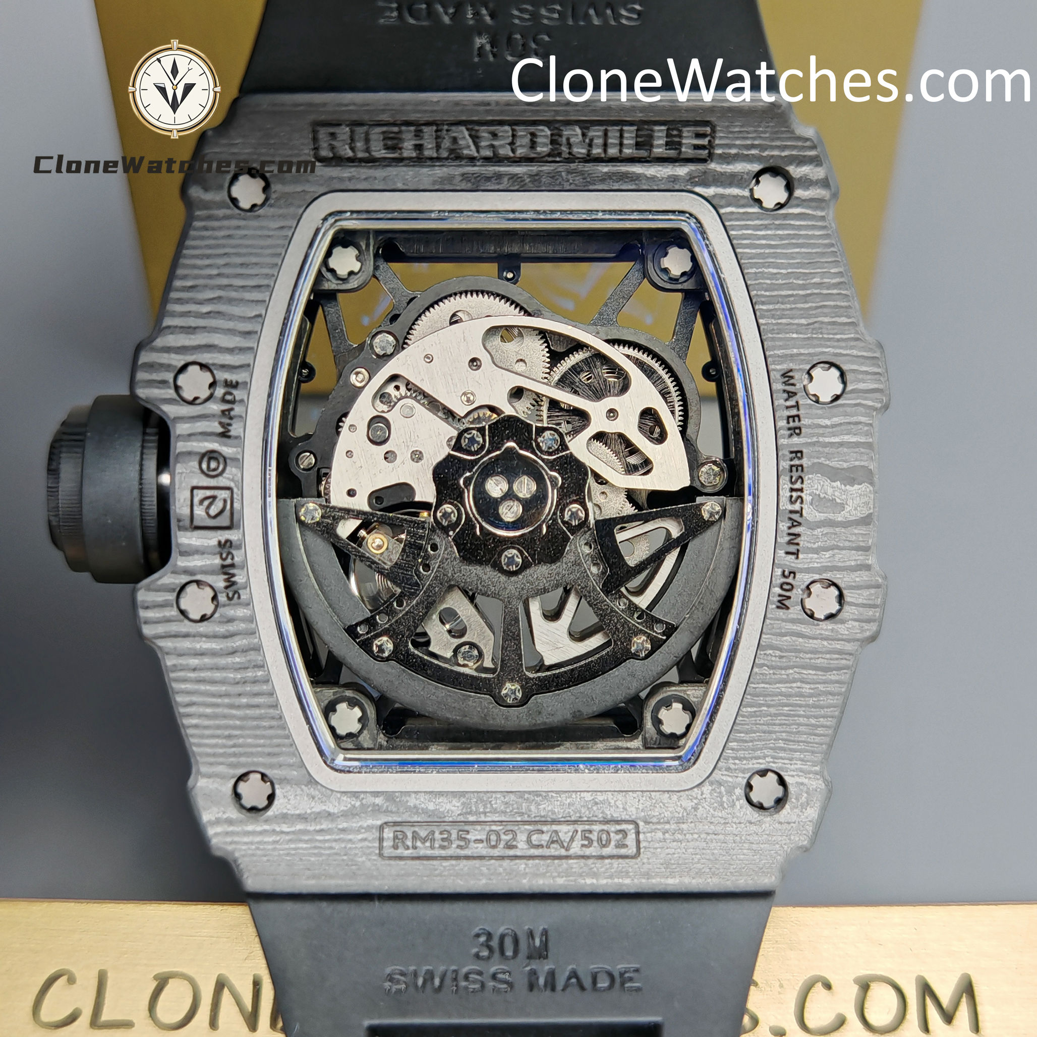 Winding System: Powered by an automatic skeletonized movement, the RM 35-02 clone eliminates the need for manual winding, offering convenience and reliability during both everyday wear and physical activity.