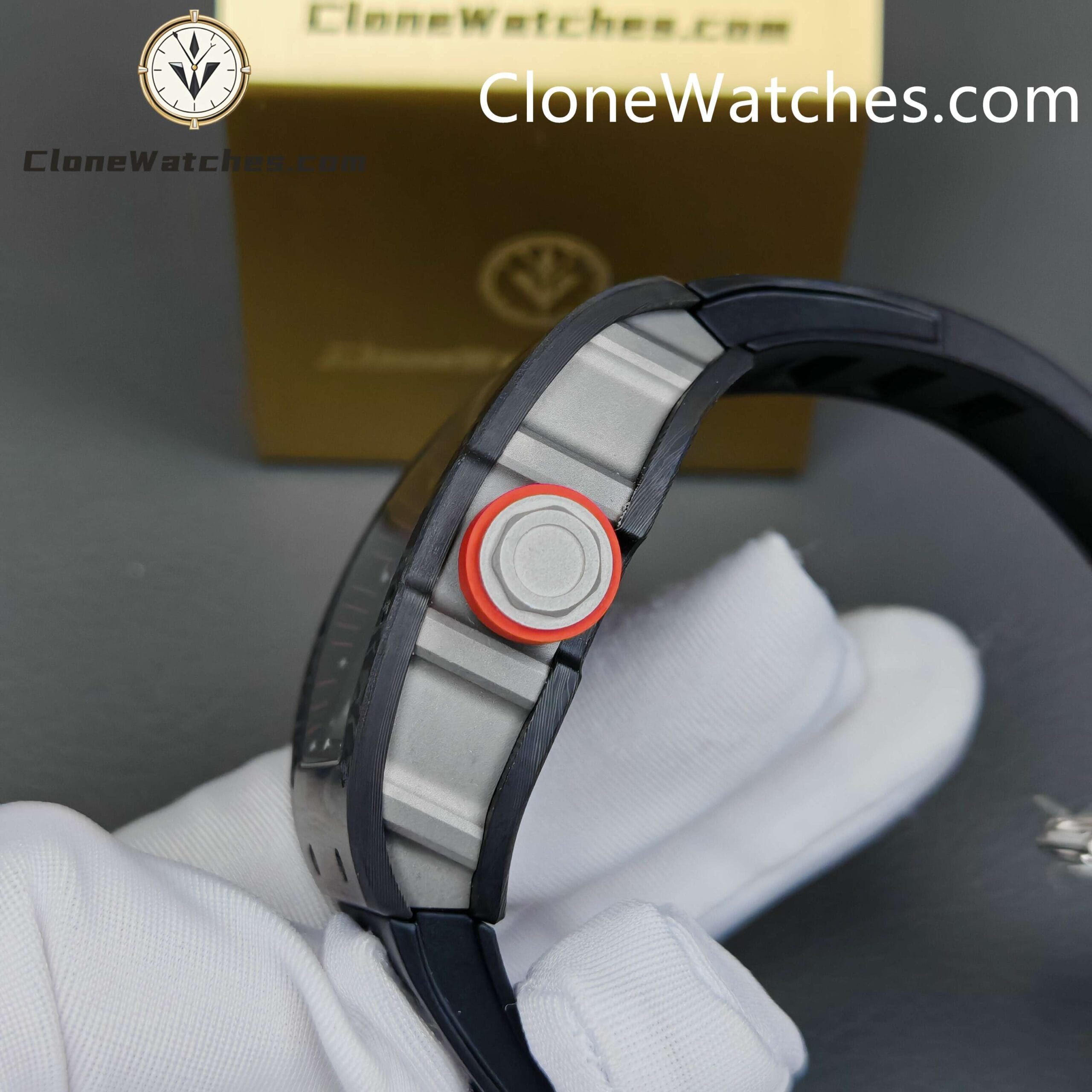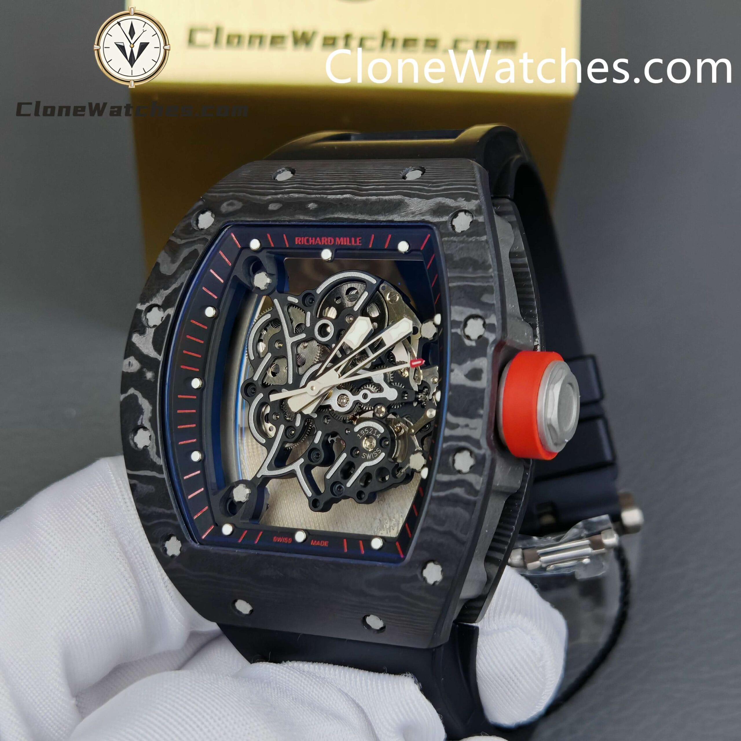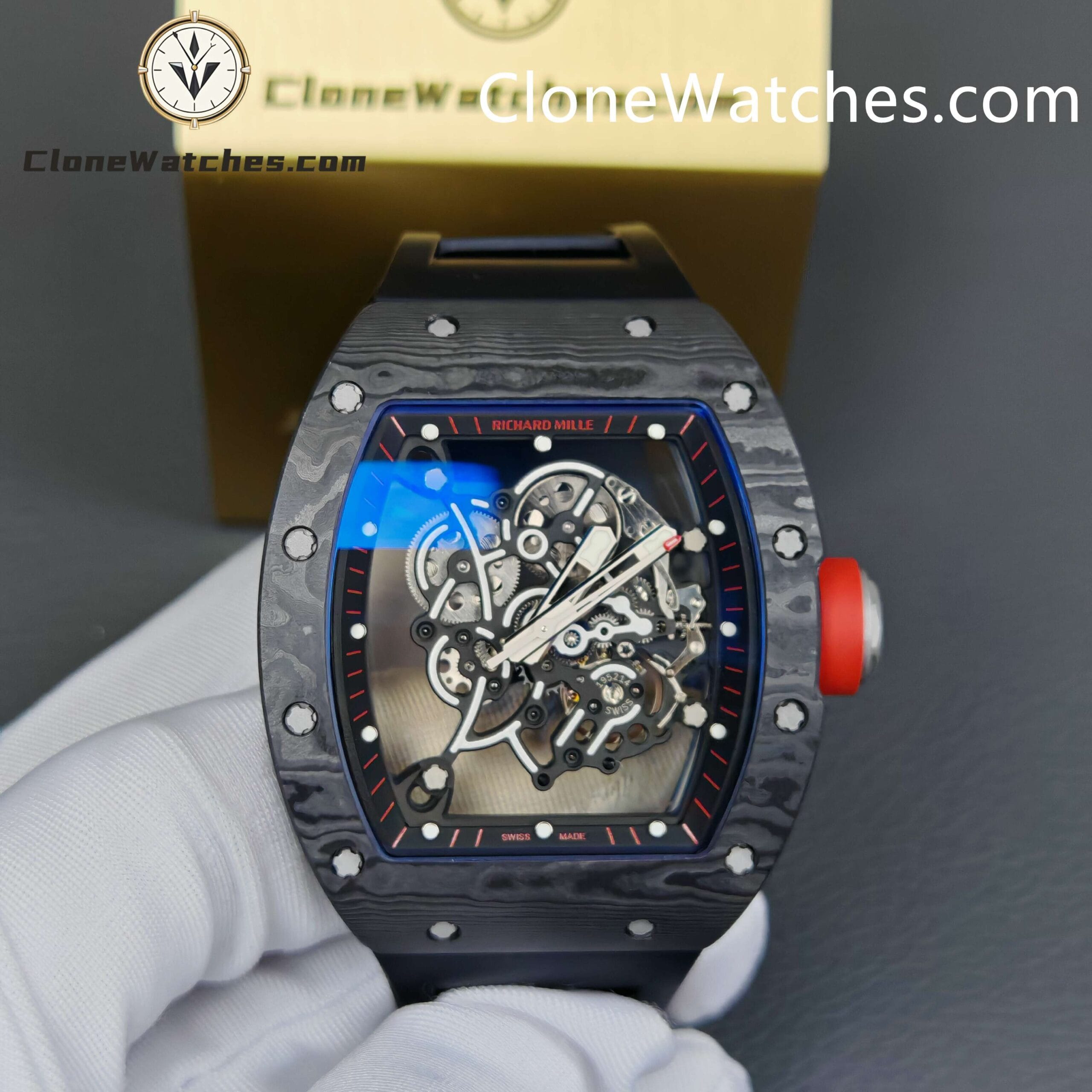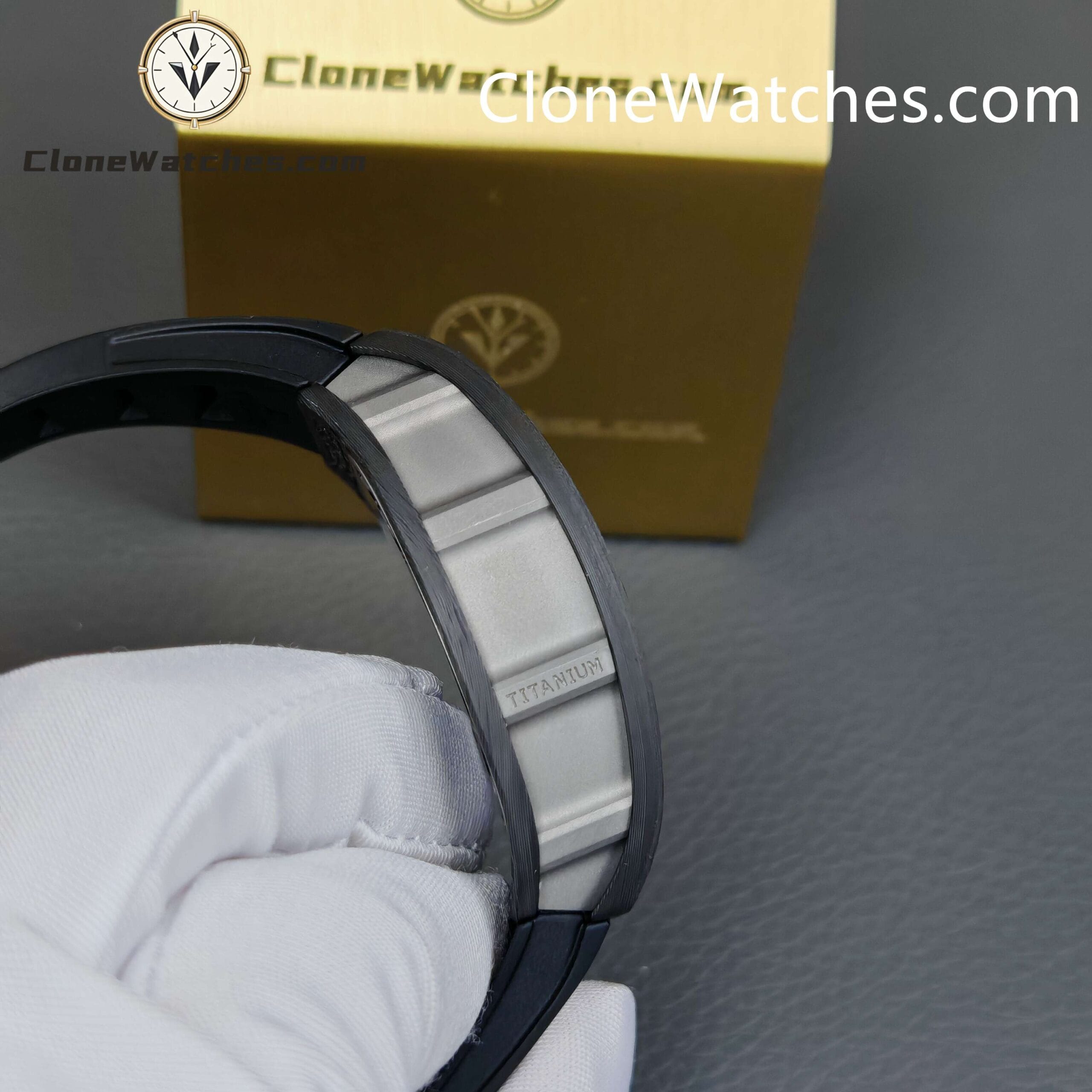 [Case] The 49.90*42.70 NTPT carbon fiber case is interwoven with special resin fibers through a special automated control system, and the upper and lower mirrors are cut with sapphire. It is comfortable, light, and durable, and is known as the “Formula One on the wrist.” [Movement] Clone Watches is equipped with an integrated Caliber RMUL2 manual winding movement, made of grade 5 titanium alloy, equipped with PVD coating and Titalyt-treated substrates and bridges to ensure the best rigidity of the overall structure, good surface flatness of parts, and perfect operation of the gear train. It also has multiple functions such as adjustable barrel for winding and shockproof, and its accuracy and stability have reached an extraordinary level. (All gears operate as genuine)Only logged in customers who have purchased this product may leave a review.