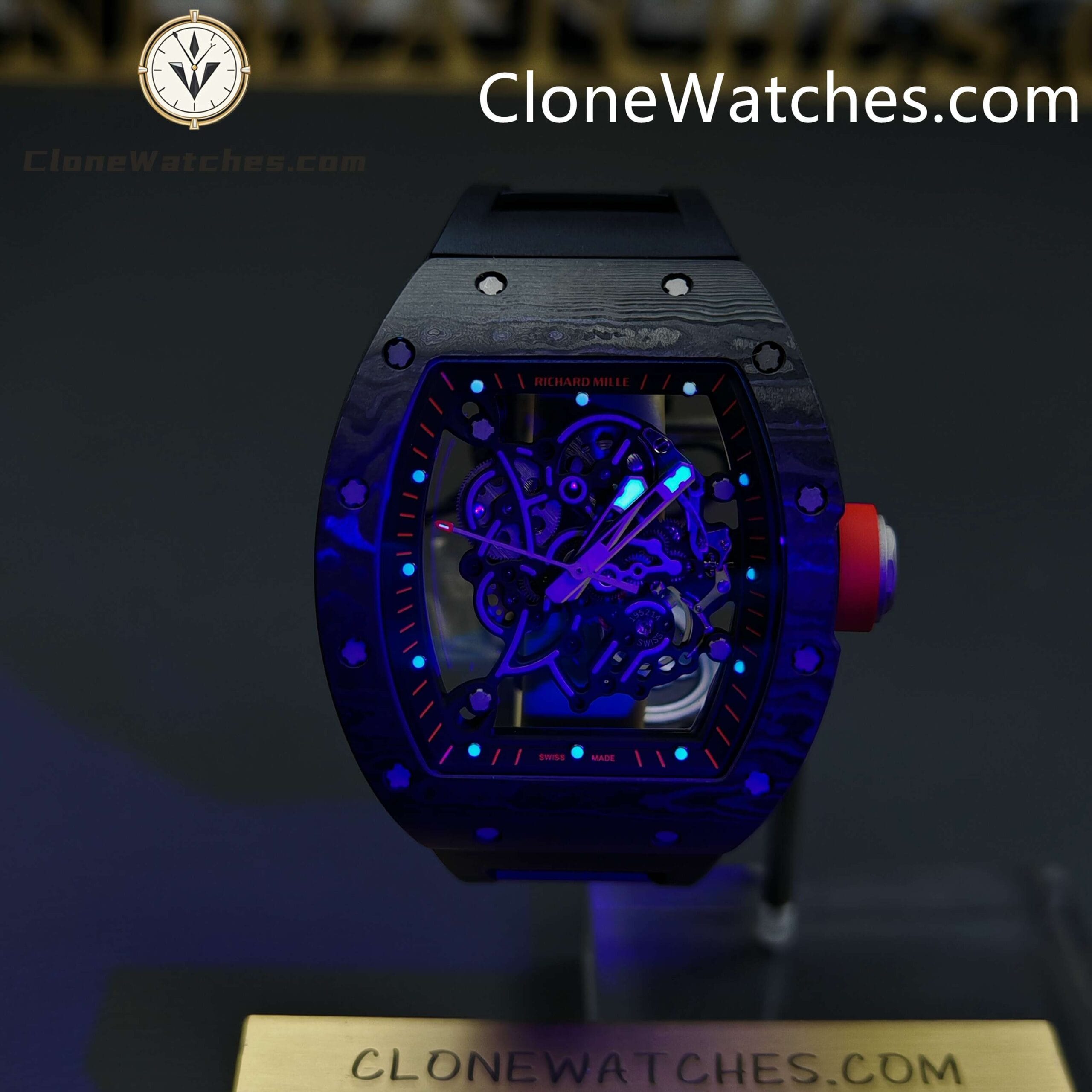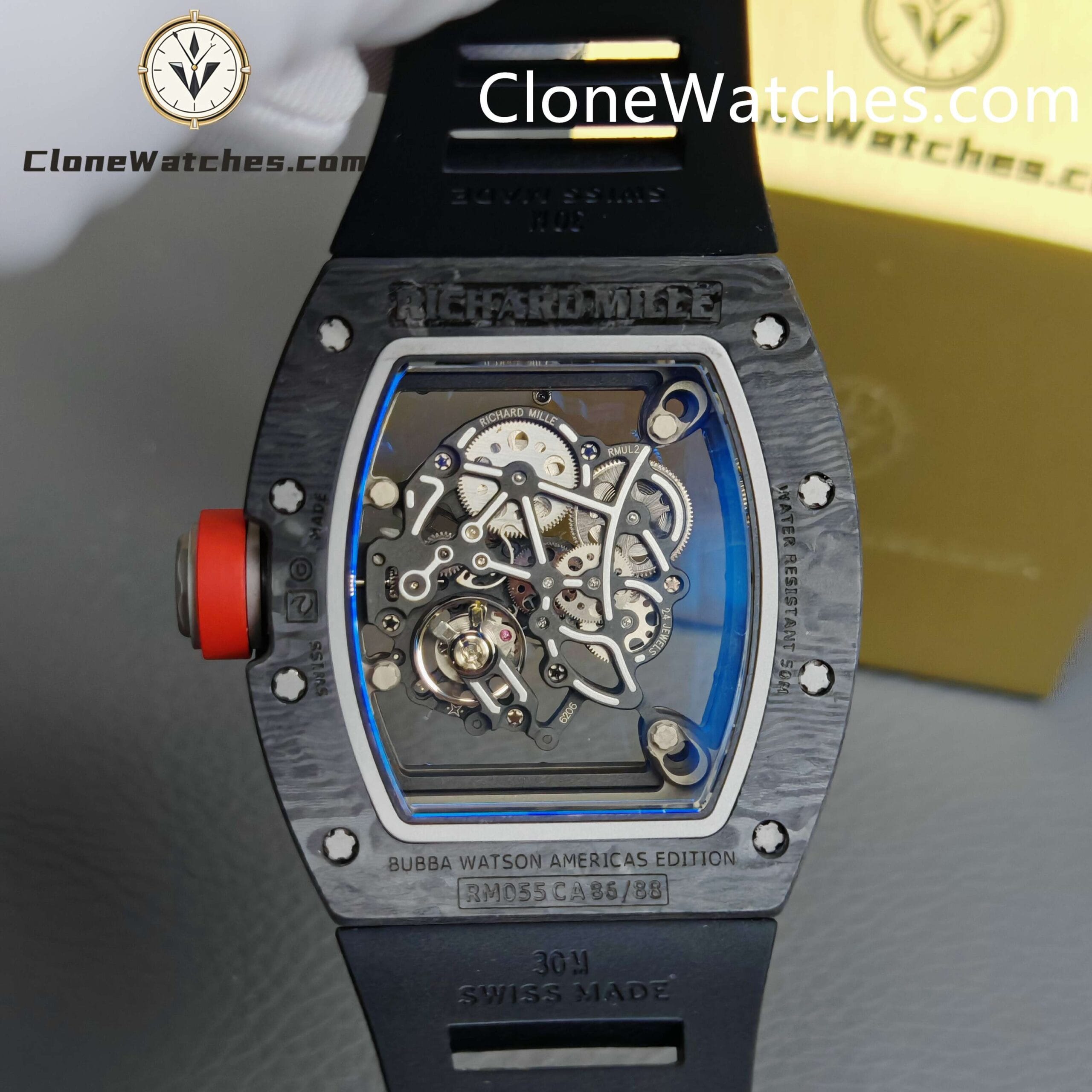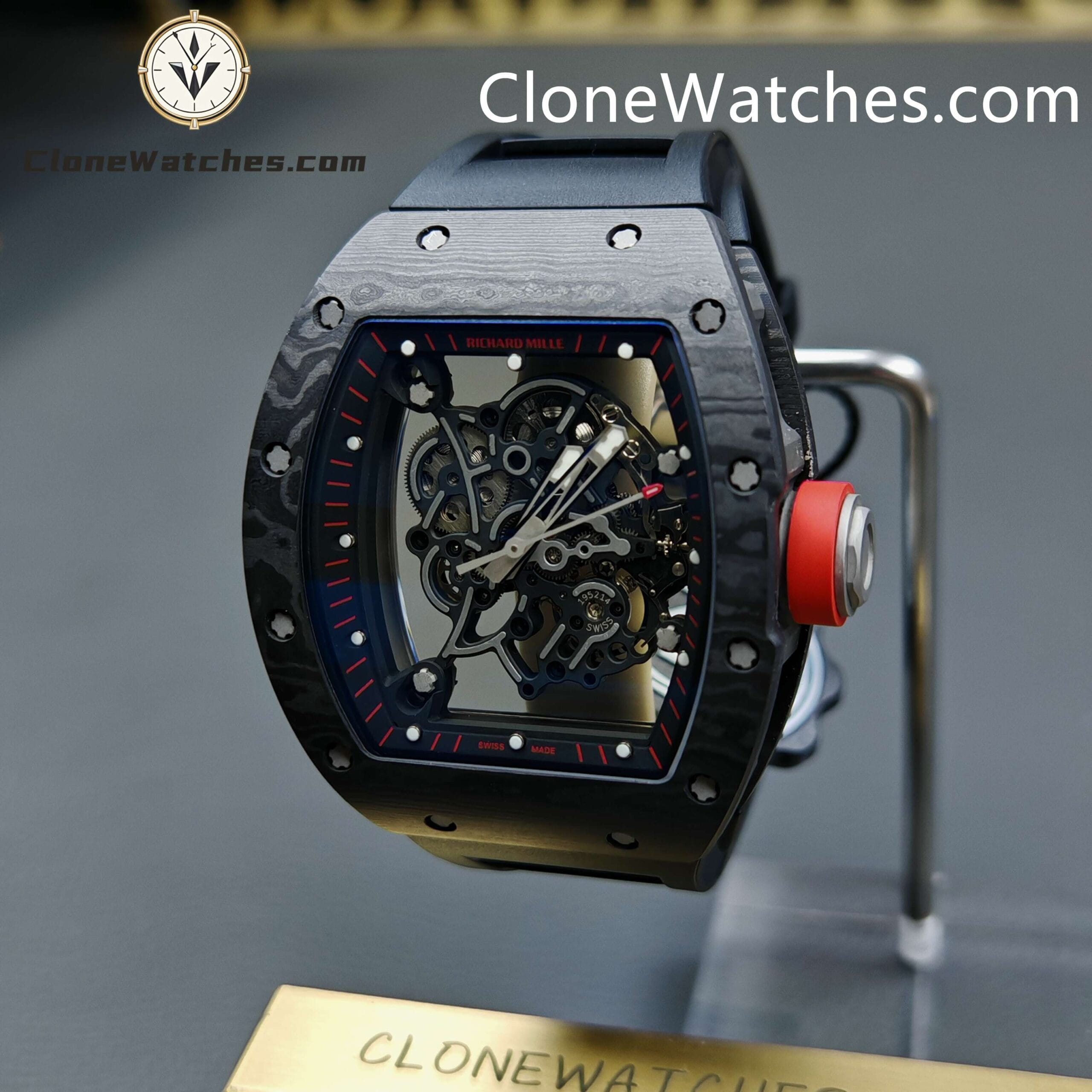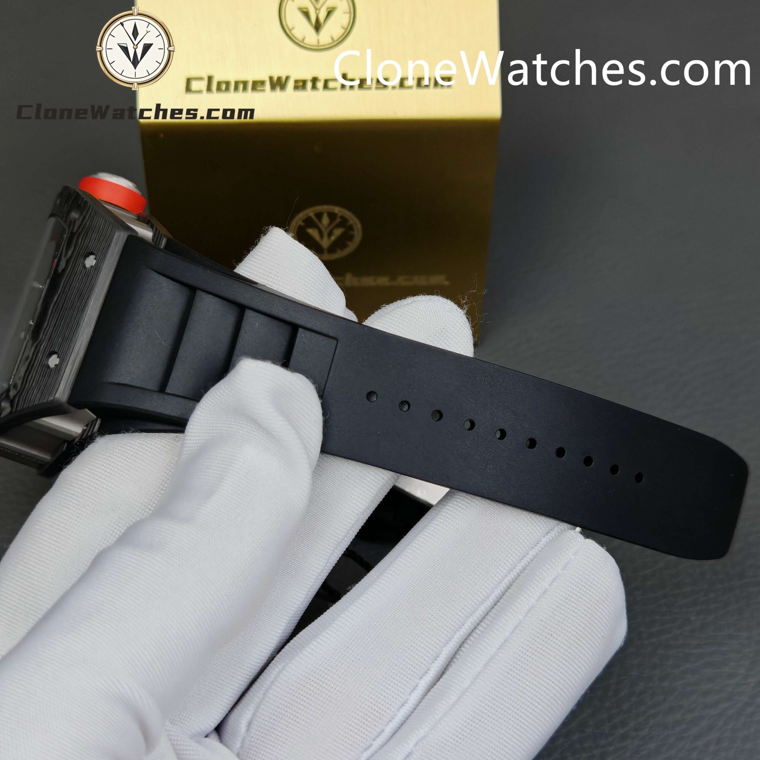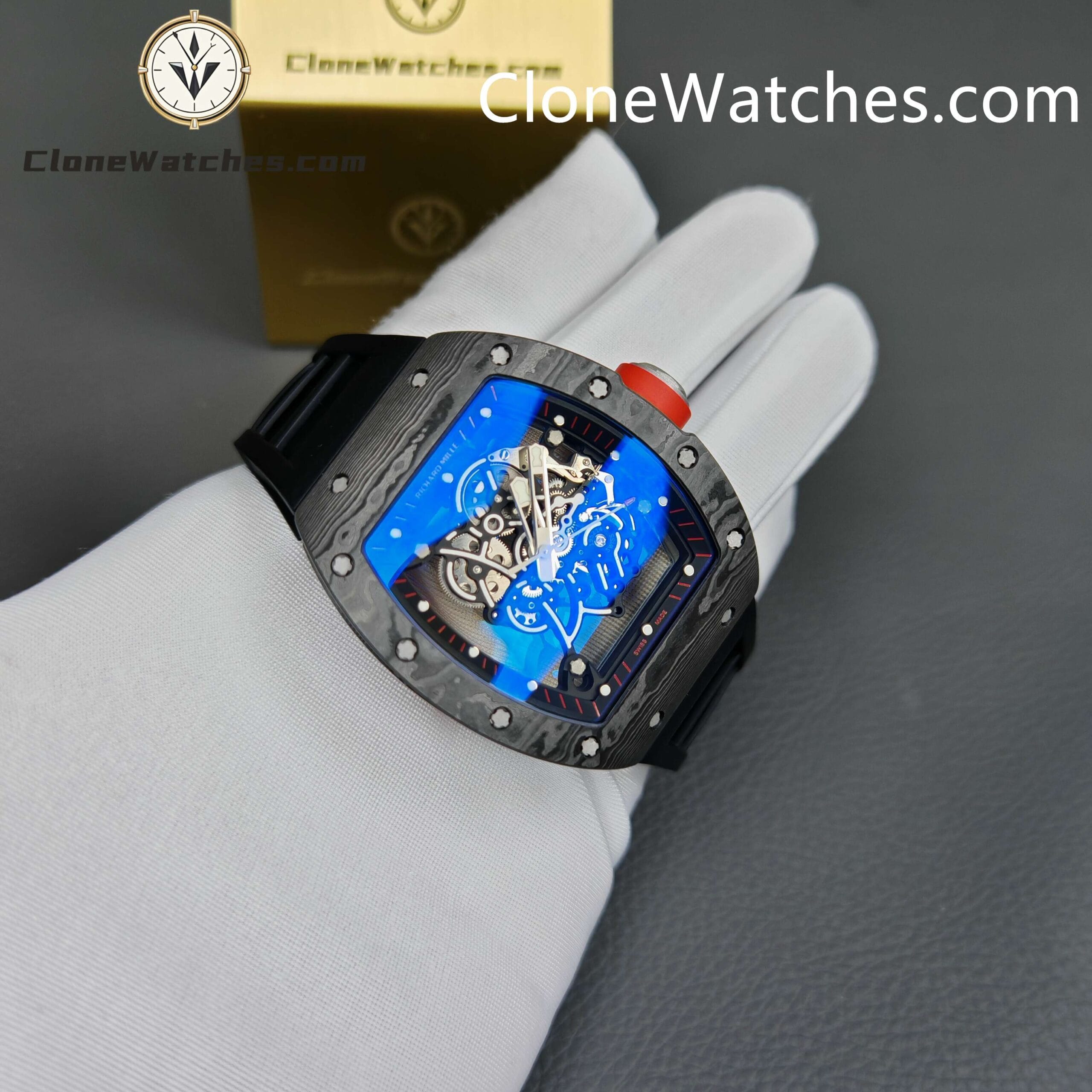 [Case] The 49.90*42.70 NTPT carbon fiber case is interwoven with special resin fibers through a special automated control system, and the upper and lower mirrors are cut with sapphire. It is comfortable, light, and durable, and is known as the “Formula One on the wrist.” [Movement] Clone Watches is equipped with an integrated Caliber RMUL2 manual winding movement, made of grade 5 titanium alloy, equipped with PVD coating and Titalyt-treated substrates and bridges to ensure the best rigidity of the overall structure, good surface flatness of parts, and perfect operation of the gear train. It also has multiple functions such as adjustable barrel for winding and shockproof, and its accuracy and stability have reached an extraordinary level. (All gears operate as genuine)Only logged in customers who have purchased this product may leave a review.