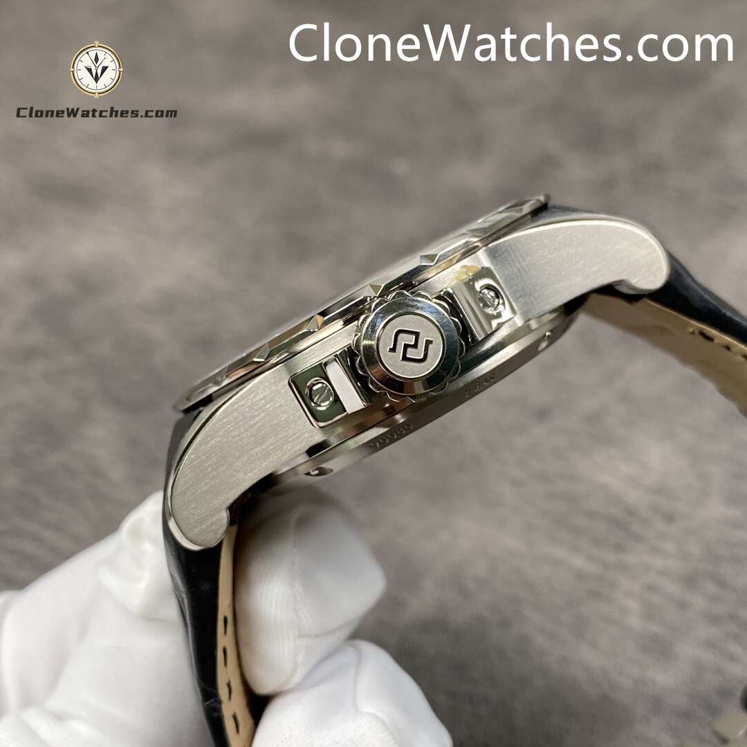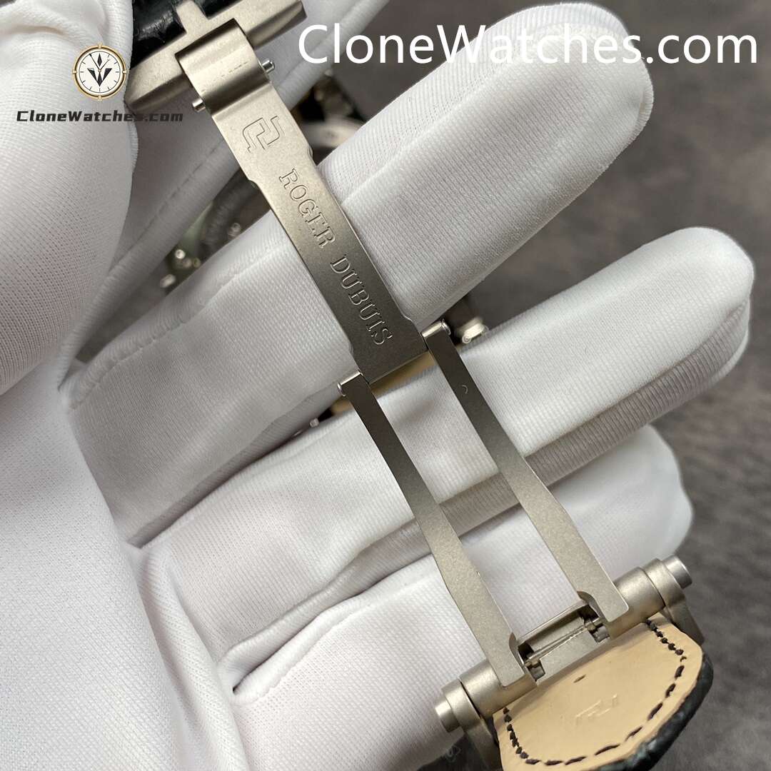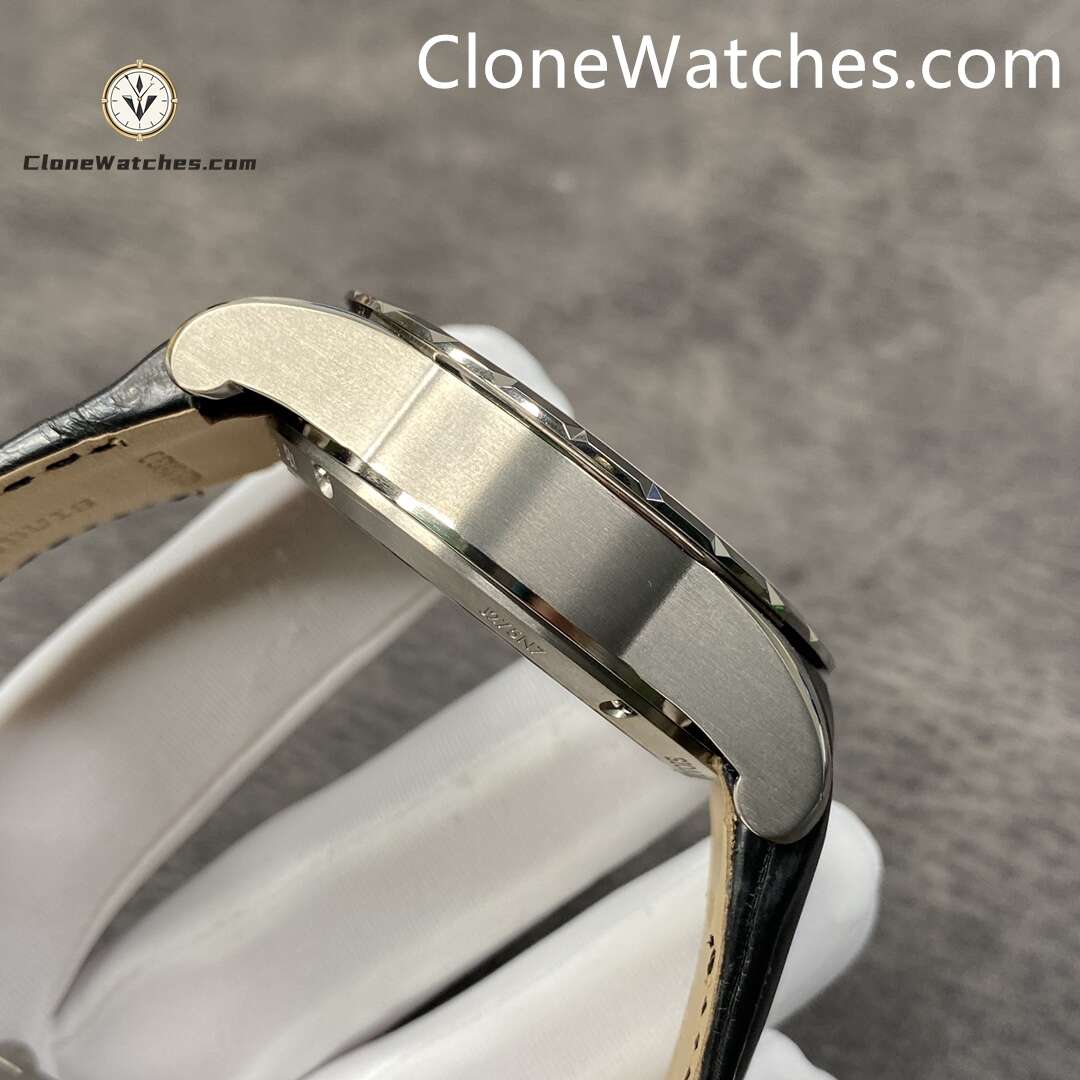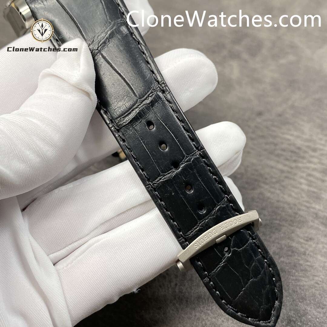 Clone Watches The rest of the strap is made of crocodile leather with full-edge technology. I believe that customers who know this know that the price of full-edge crocodile leather is nearly half of that of half-edge, and the texture is the texture of the whole crocodile leather after careful selection, and the scraps are all scrapped. The titanium alloy buckle overcomes the biggest problem in the market, the difficulty of welding and polishing titanium alloy, and is the most perfect.