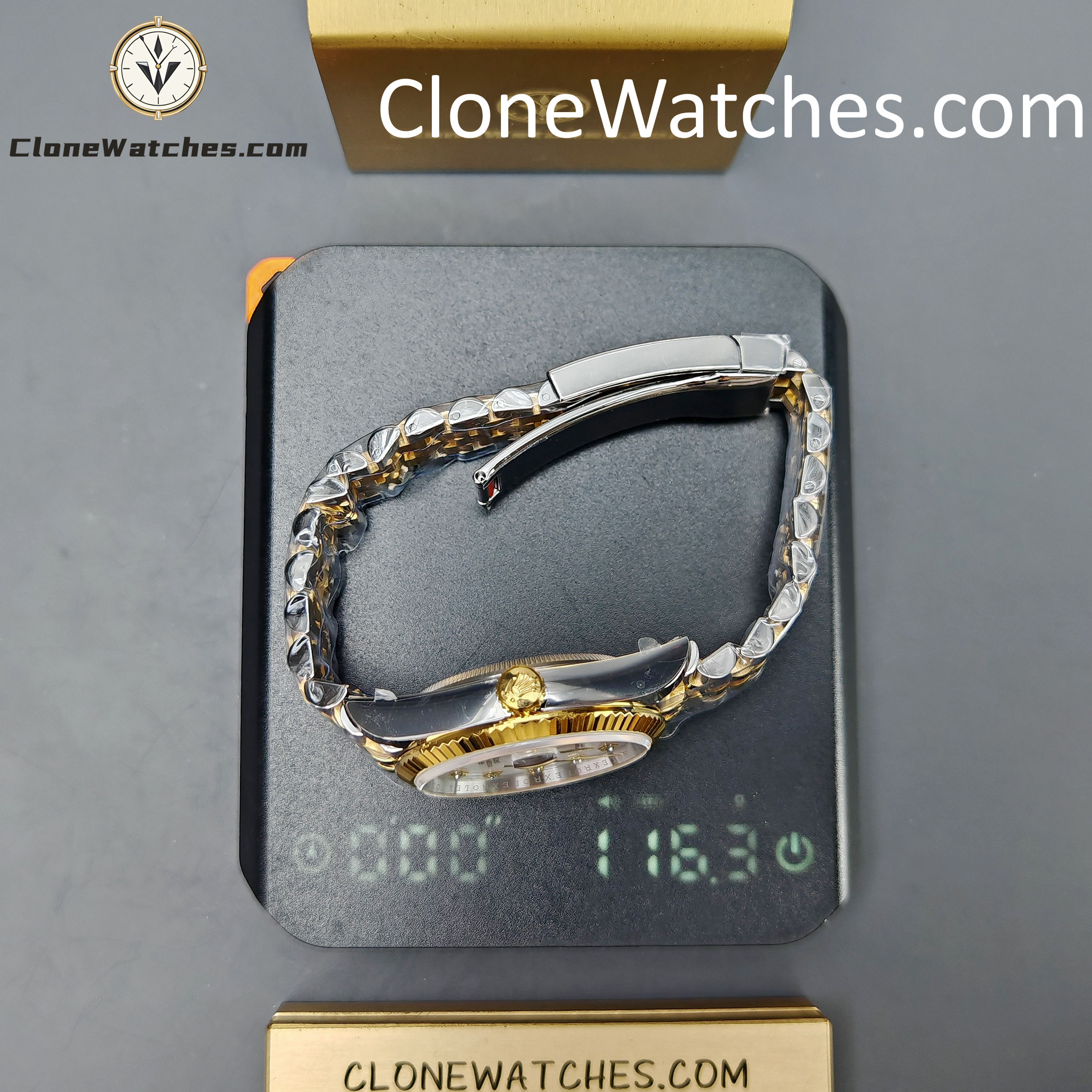 - Case & Band: 904L Steel with 18k Yellow Gold Plating