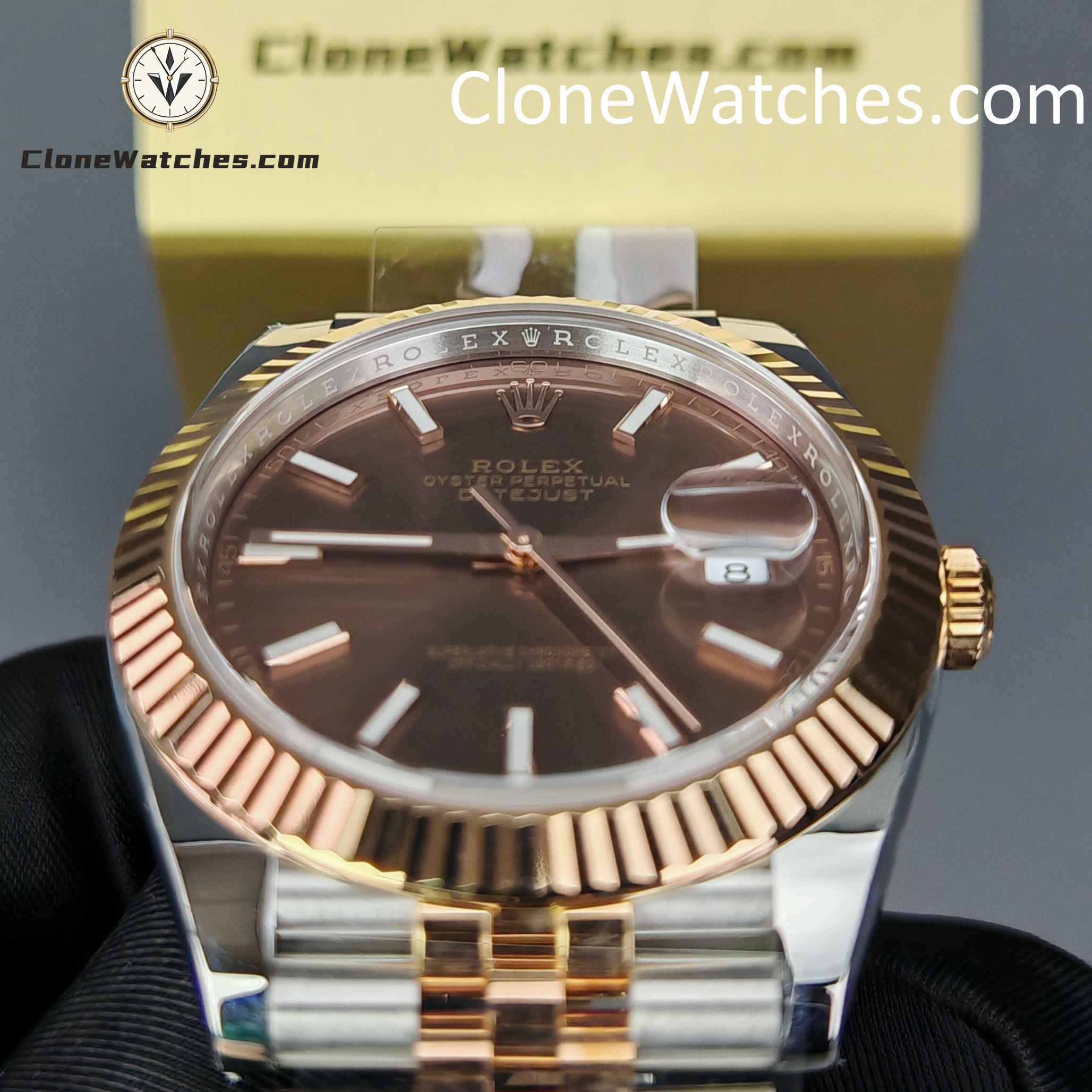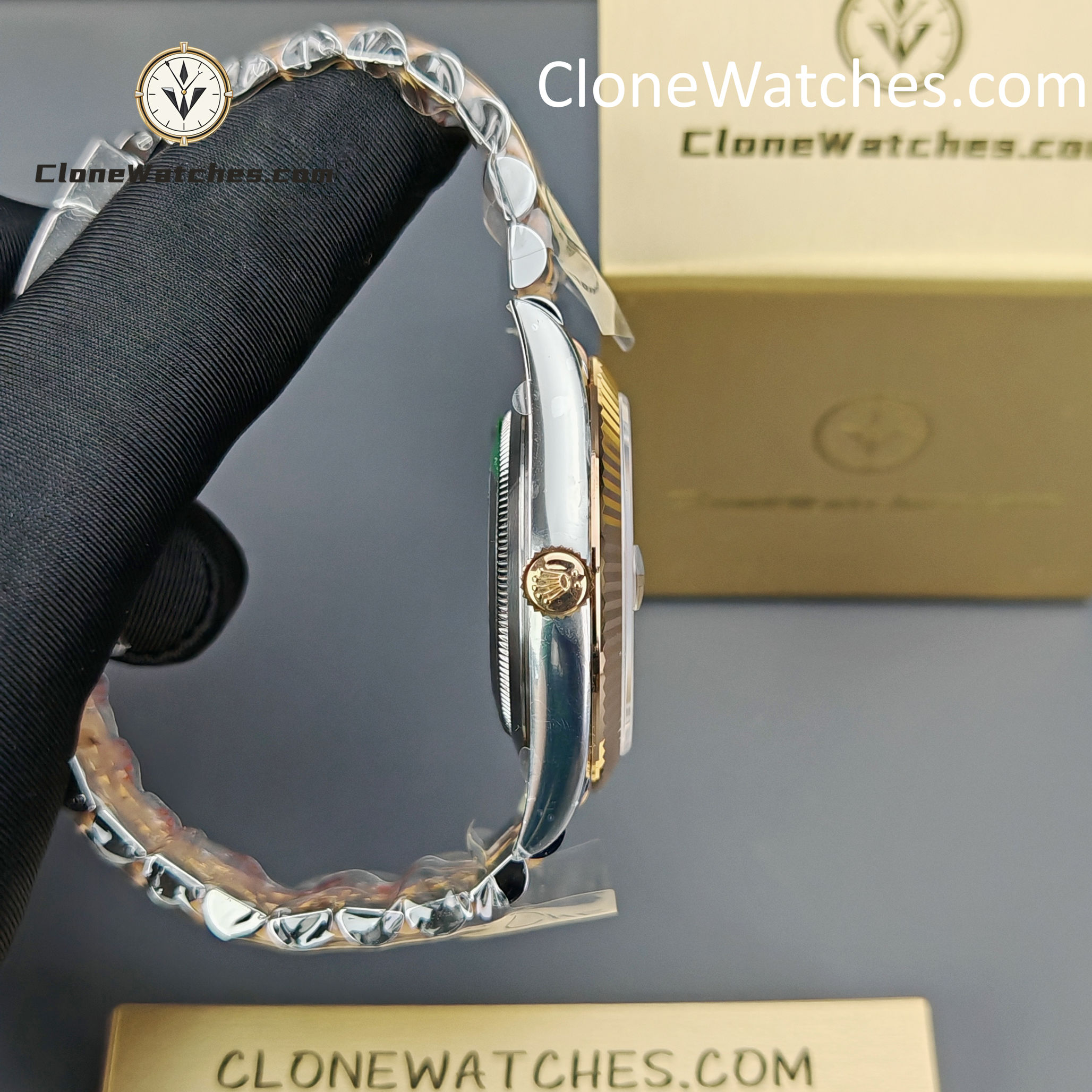 The fluted bezel is precision-cut to capture light from every angle. The Everose gold plating matches the center links perfectly, avoiding the overly “copper” tone found in lesser replicas.