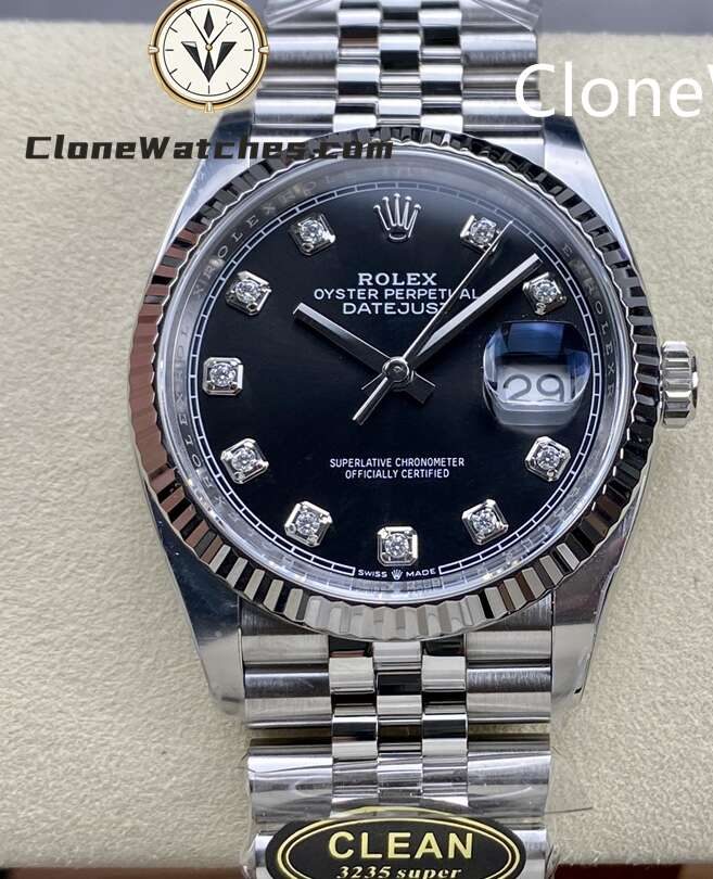 Super Clone Watches – Rolex DateJust Black Diamond Dial M126234 – 0027
