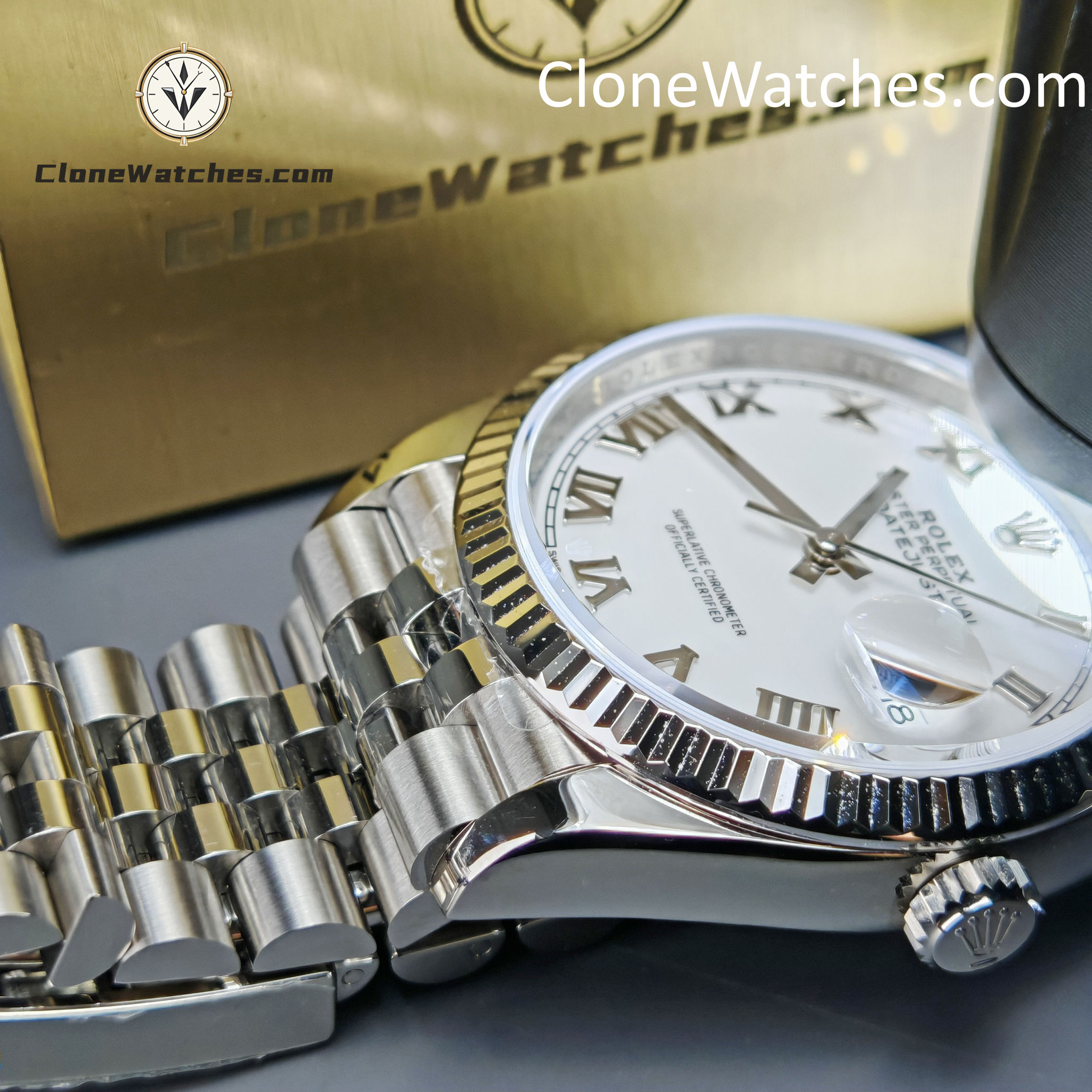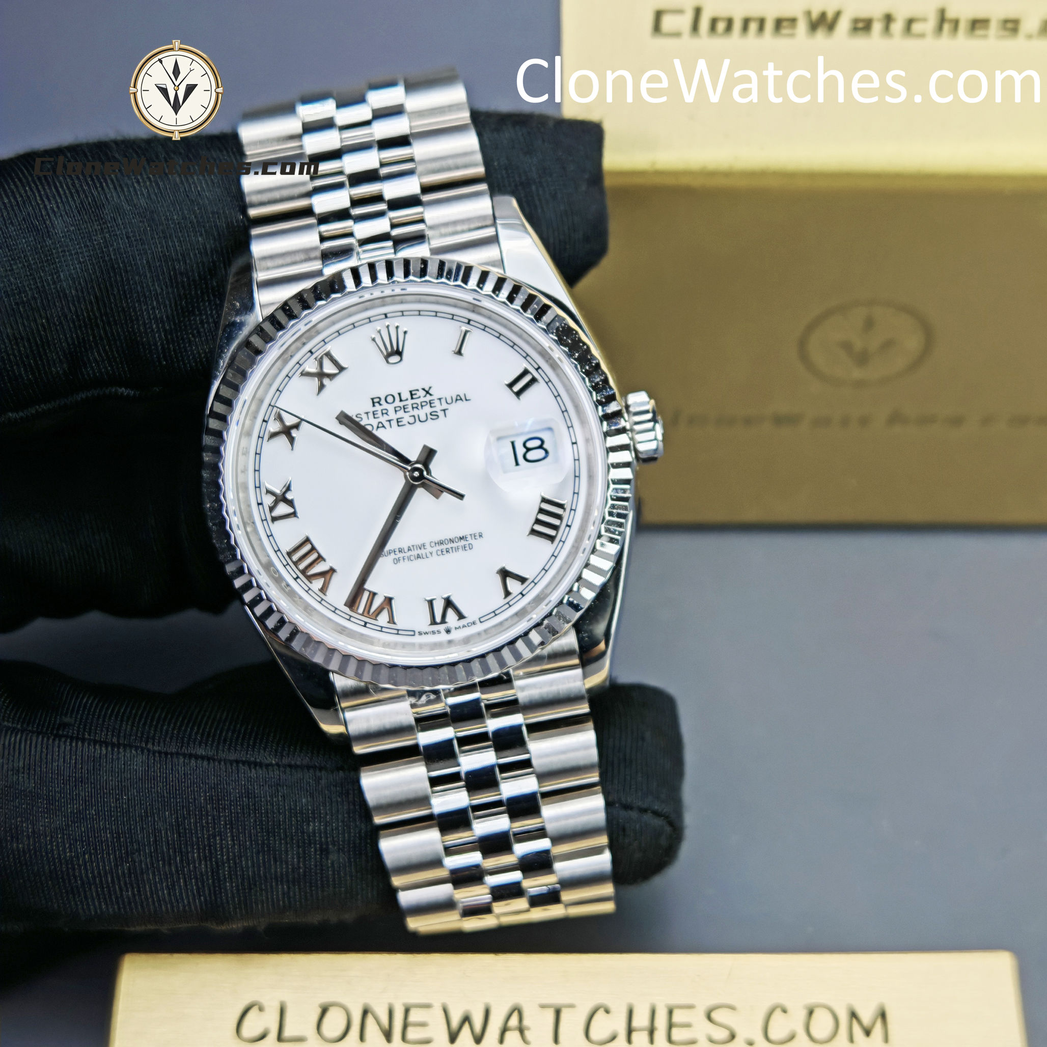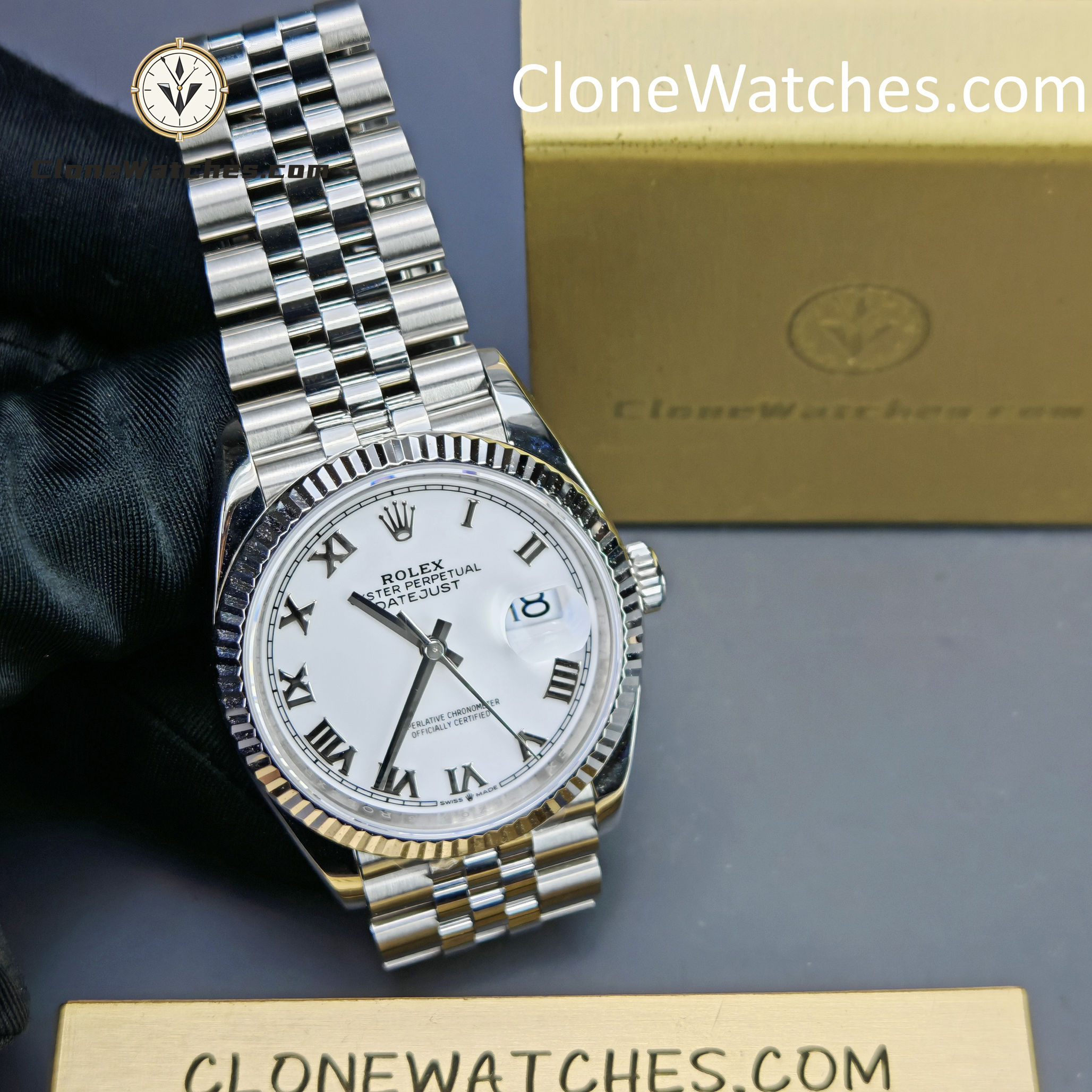 Super Clone Watches – Rolex DateJust White Roman Dial M126234 – Jubilee