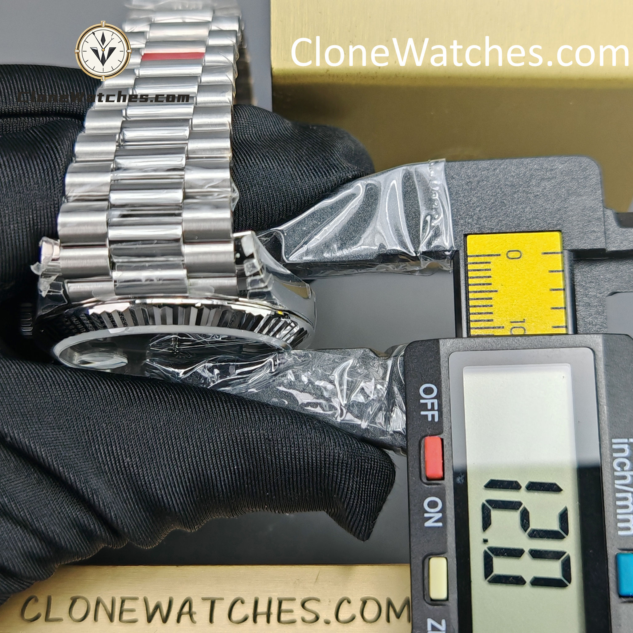 | Front Crystal | Made Of Sapphire, making this Rolex Super Clone Watches Day-Date 40mm scratch proof. Laser etched Rolex crown present at 6’O clock on the crystal |