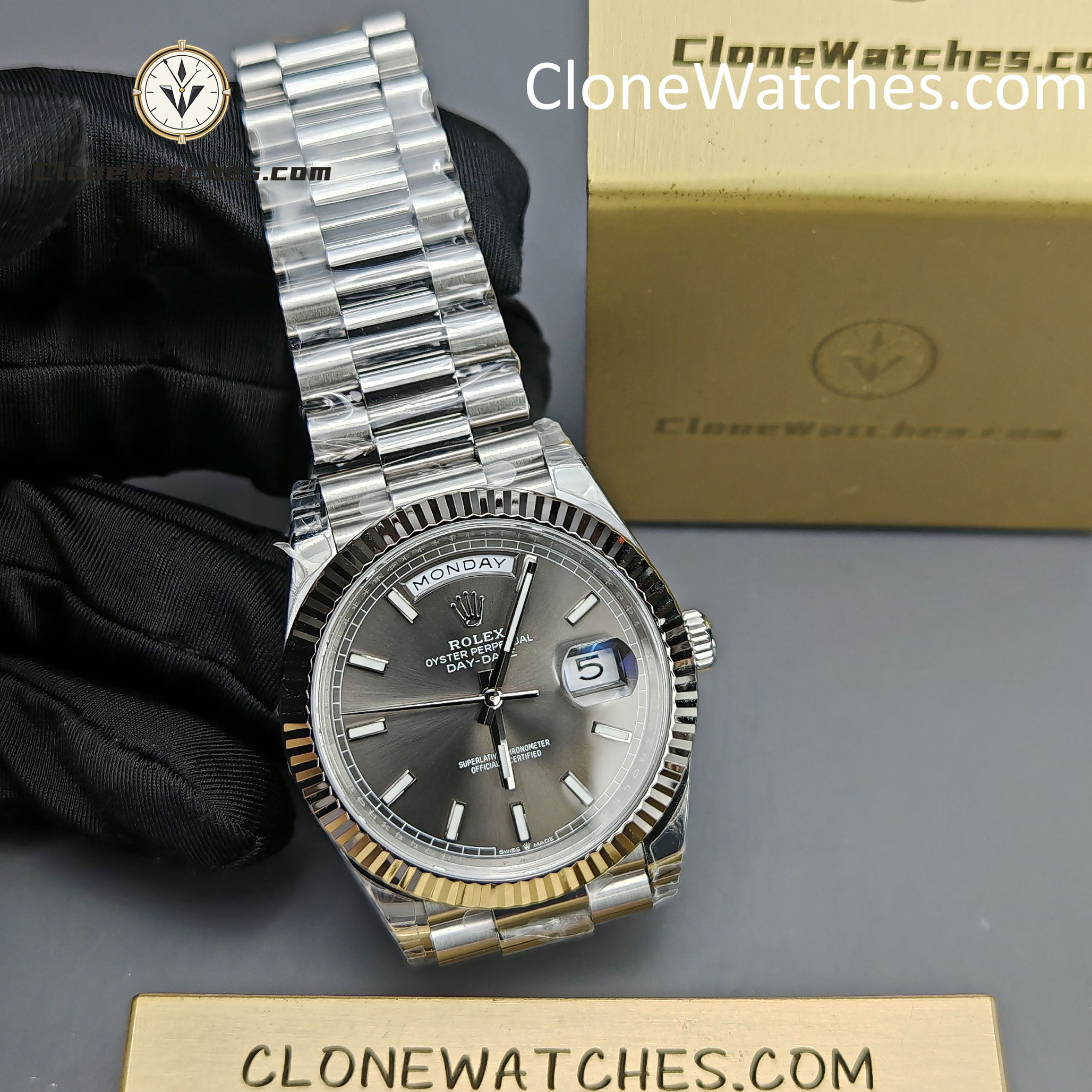 | Model | Rolex Super Clone Watches Day-Date Gray Dial m228239-0060 |