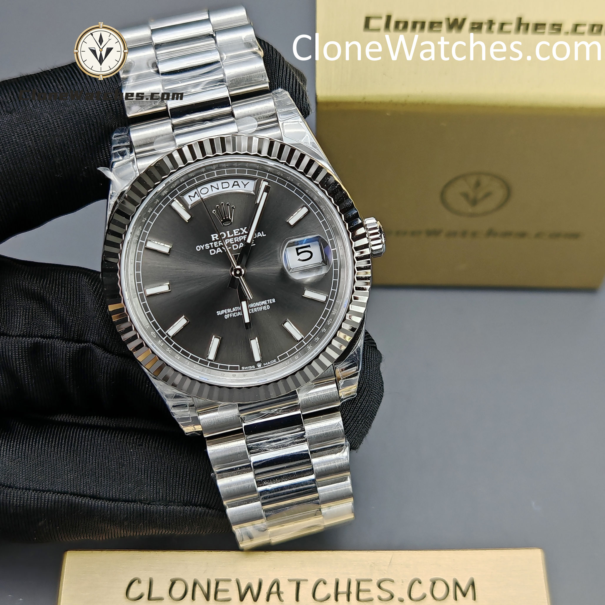 Rolex Super Clone Watches 1:1 Day Date Gray Dial 40mm m228239-0060 Presidential Bracelet VSF Version 3255 Movement
