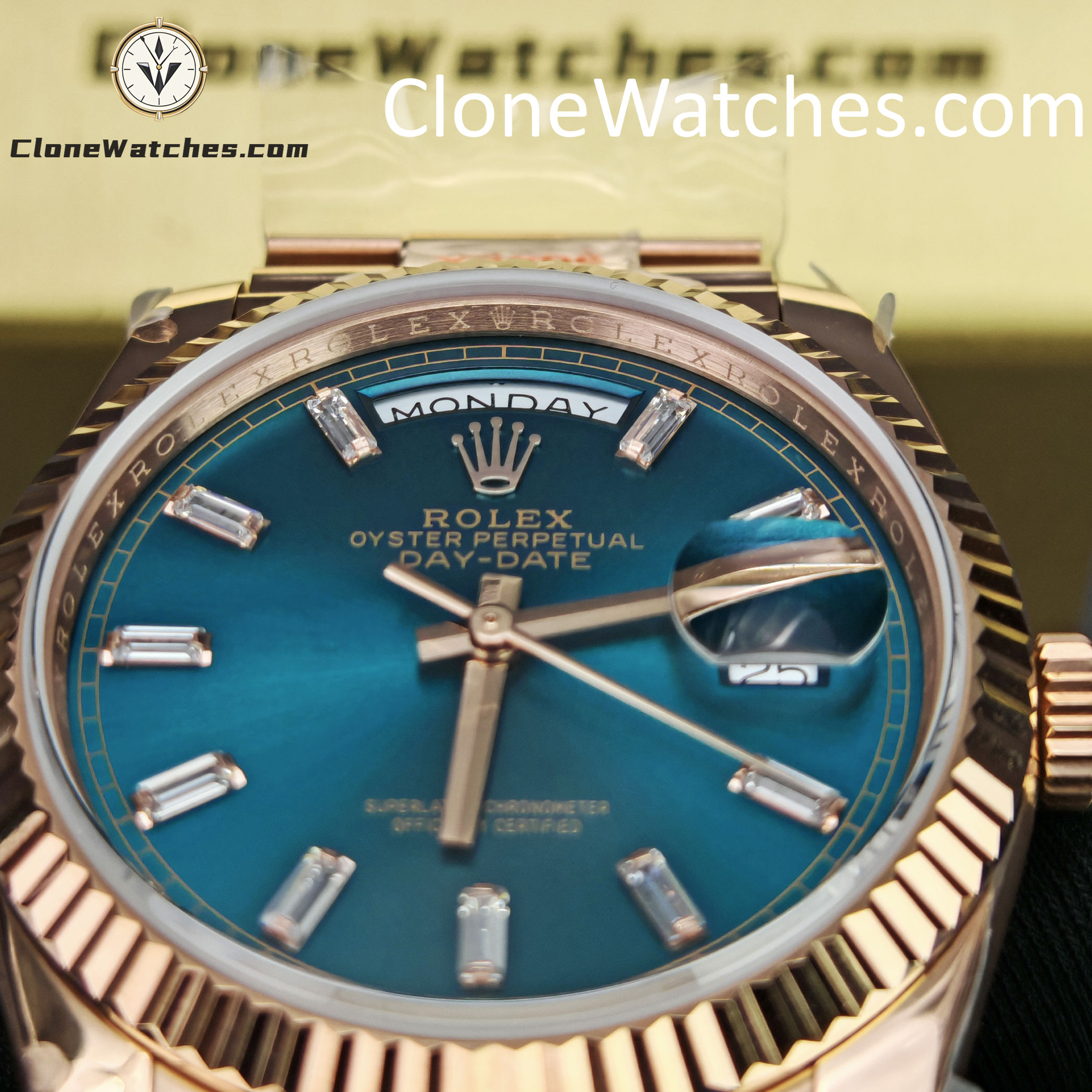 | Model | Rolex Super Clone Watches Day-Date 18K Rose Gold Turquoise Dial m128235-0085 |