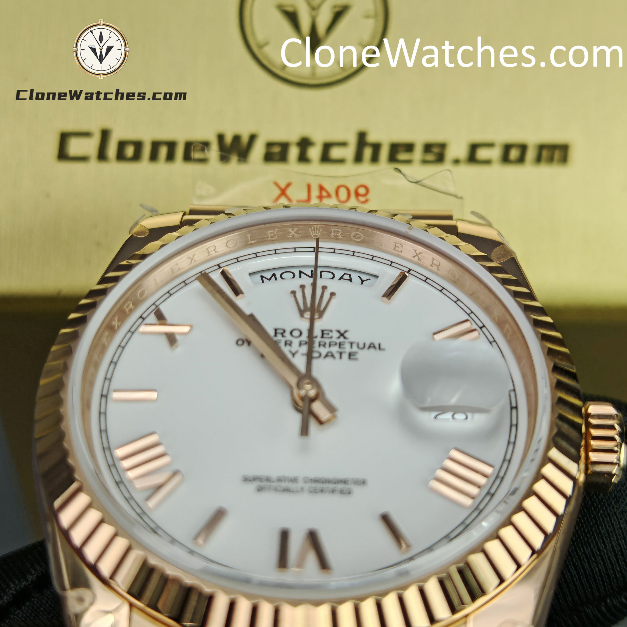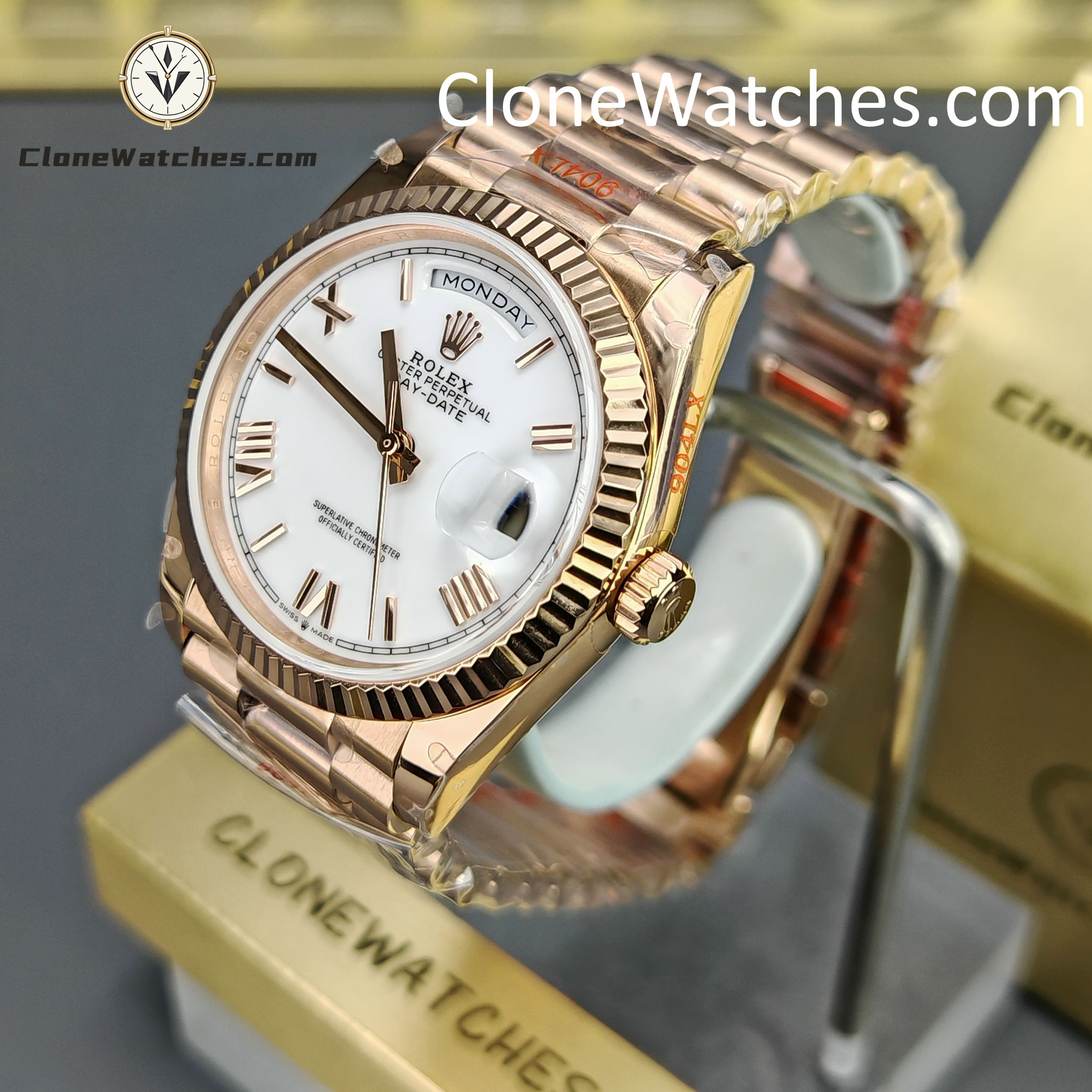 Super Clone Watches – Rolex Day Date Rose Gold White Dial m128235