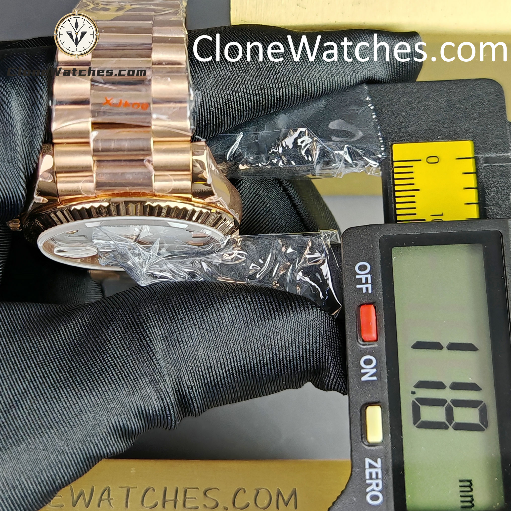 | Front Crystal | Made Of Sapphire, making this Rolex Super Clone Watches Day-Date 36mm scratch proof. Laser etched Rolex crown present at 6’O clock on the crystal |