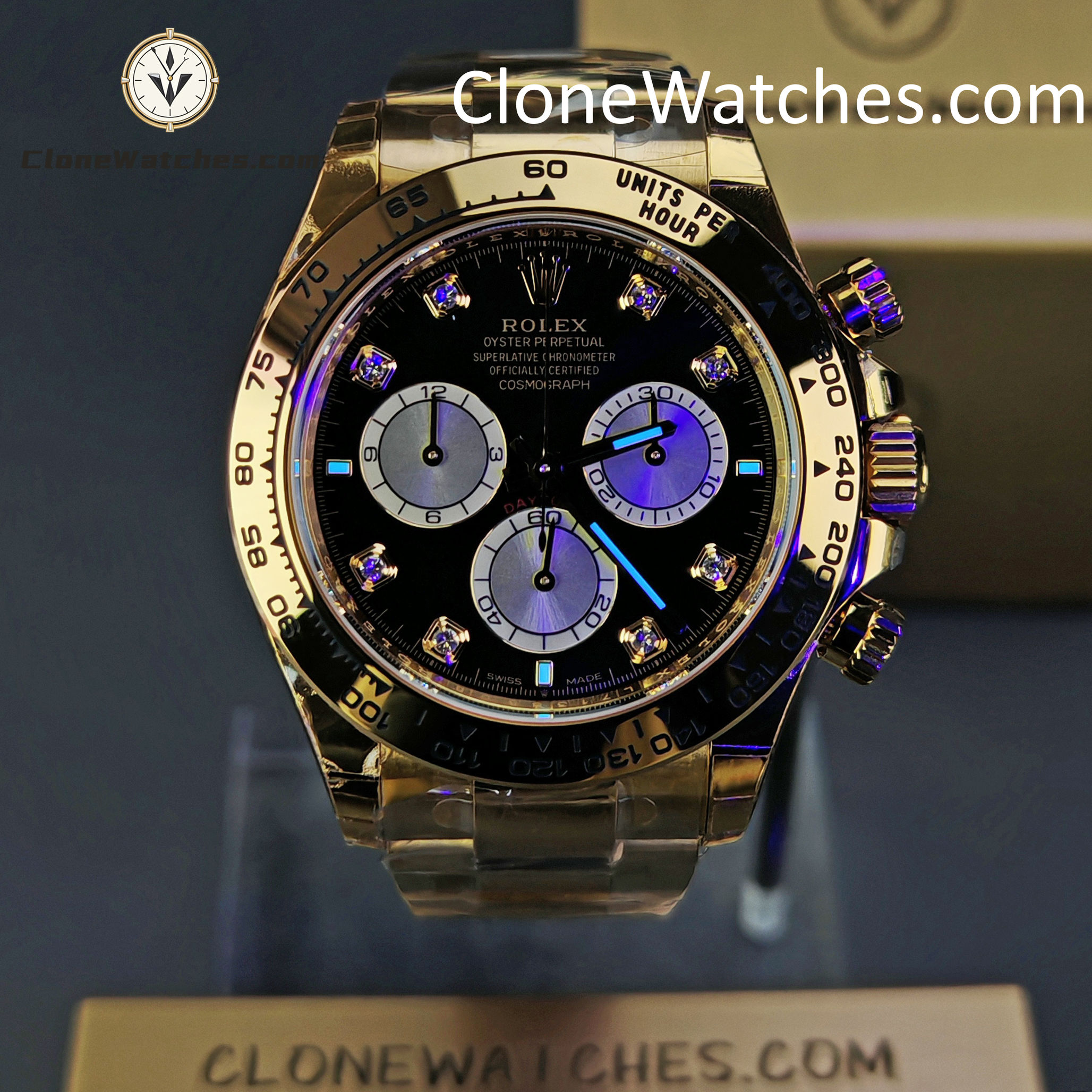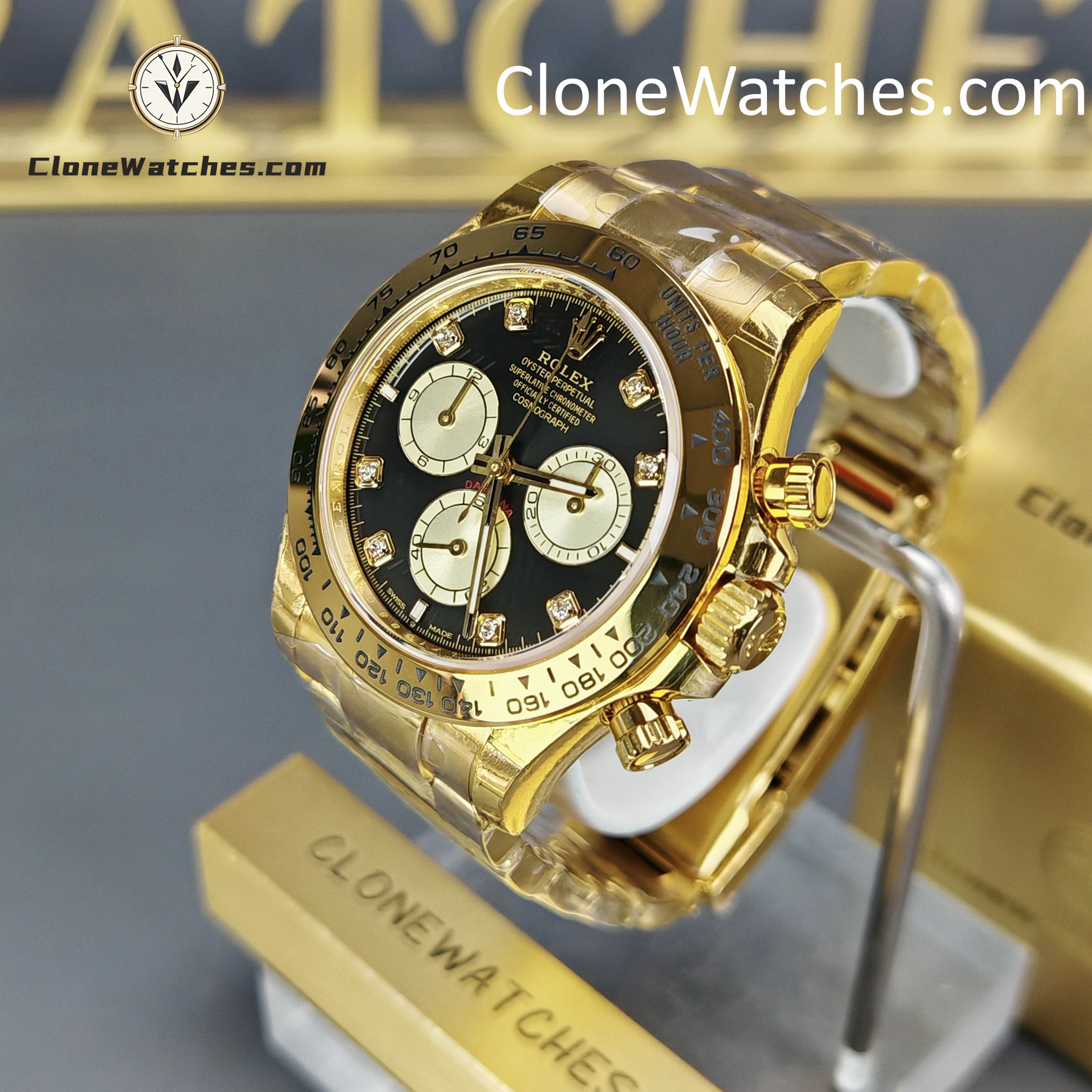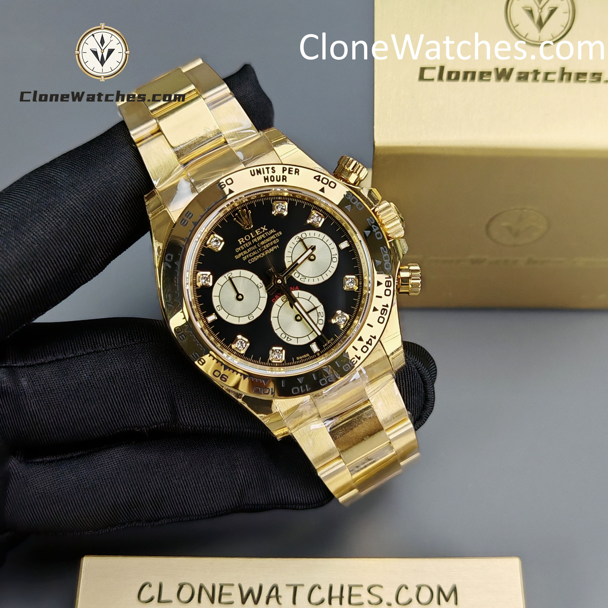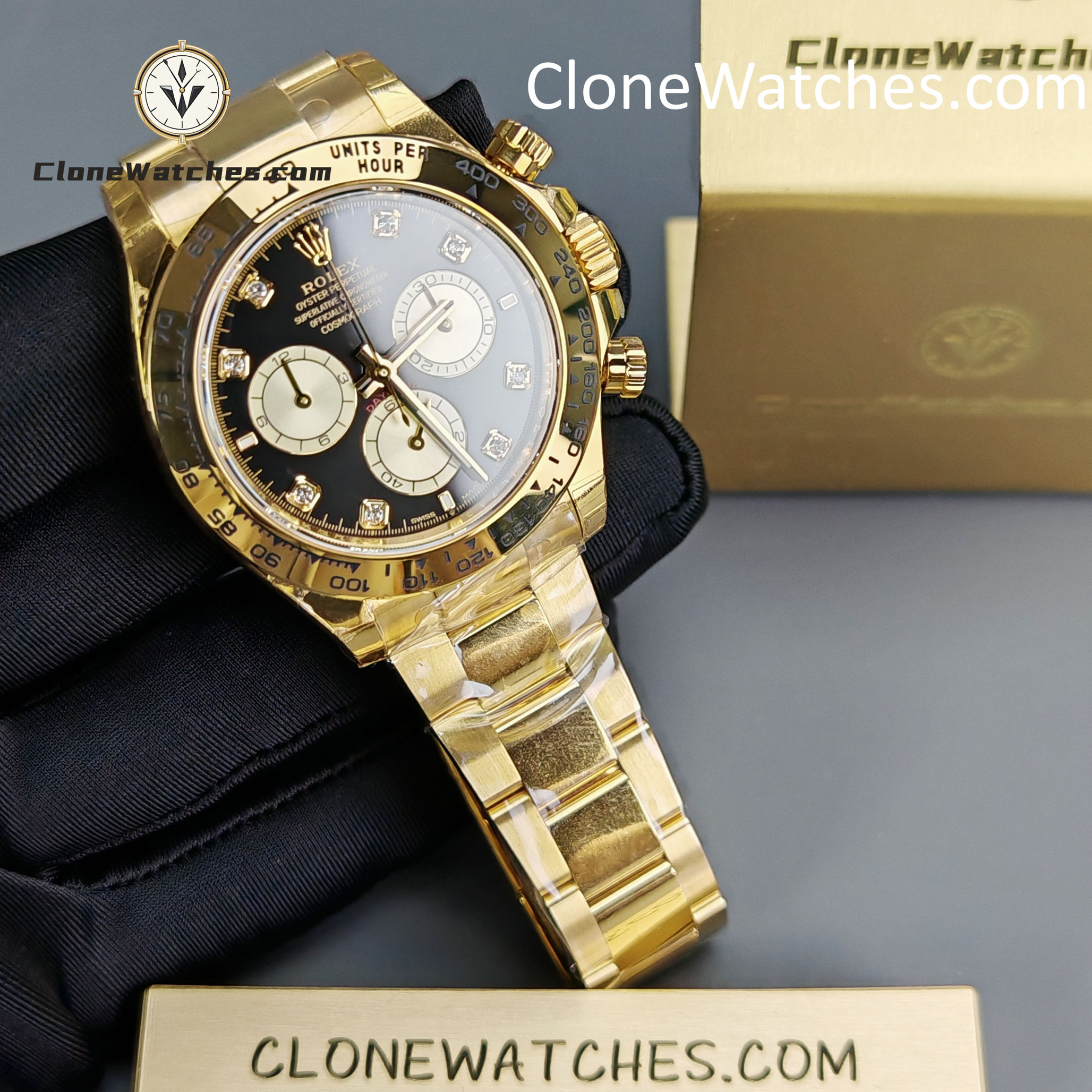 - Diamond-Set Dial: Features the high-contrast “Bright Black & Golden” layout with brilliant diamond hour markers.