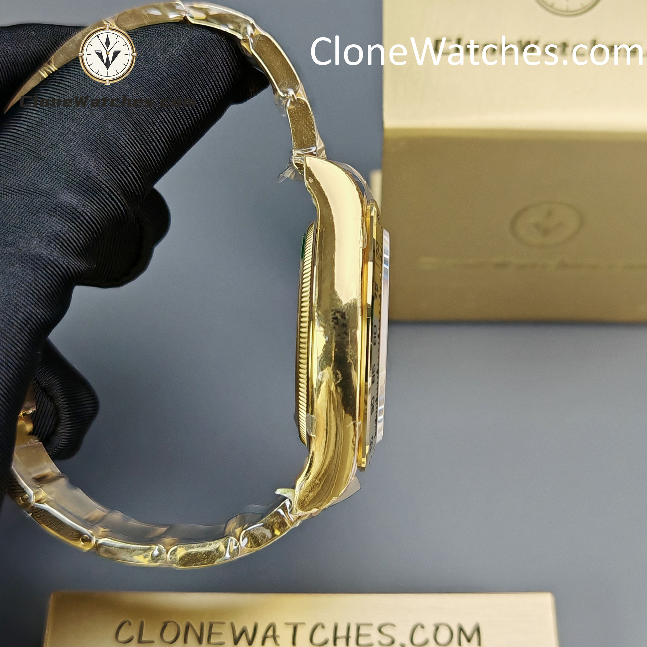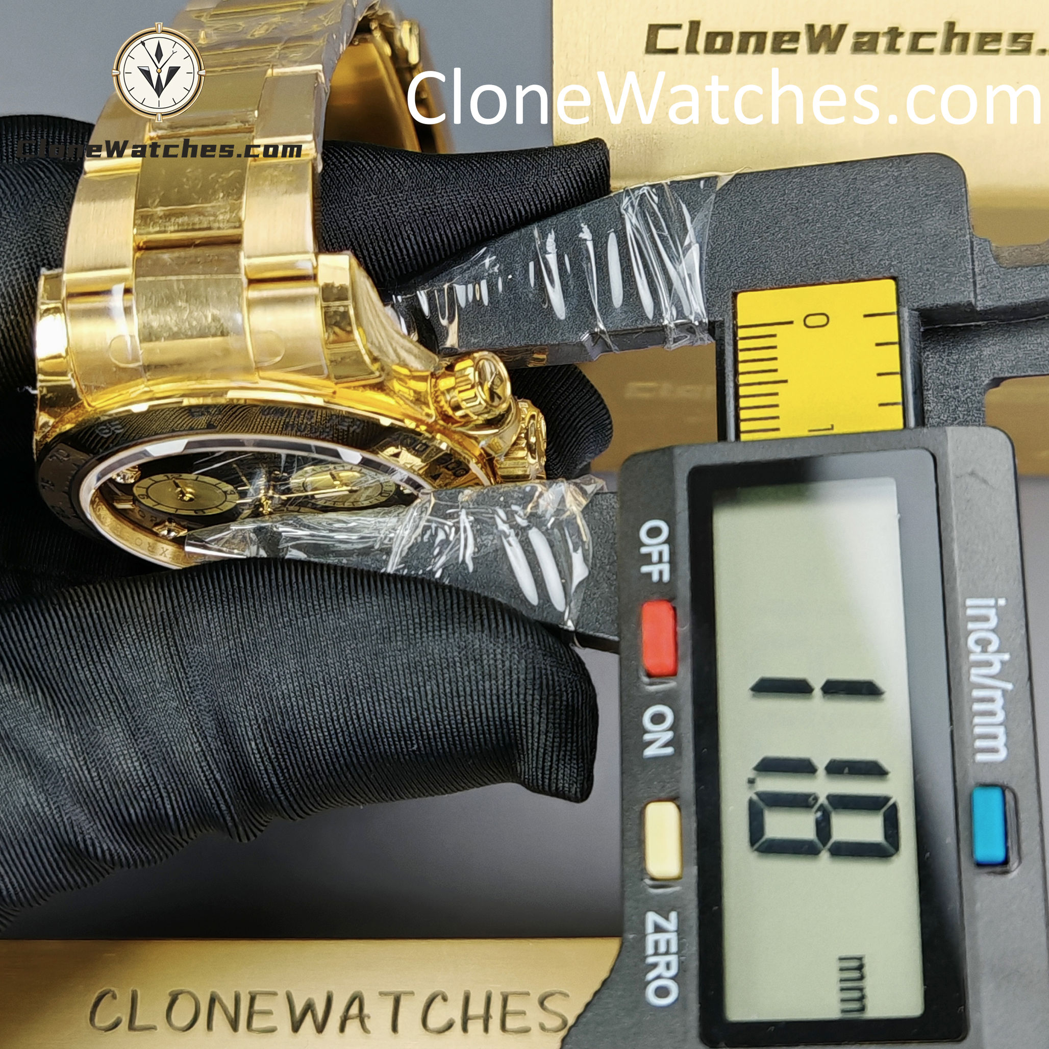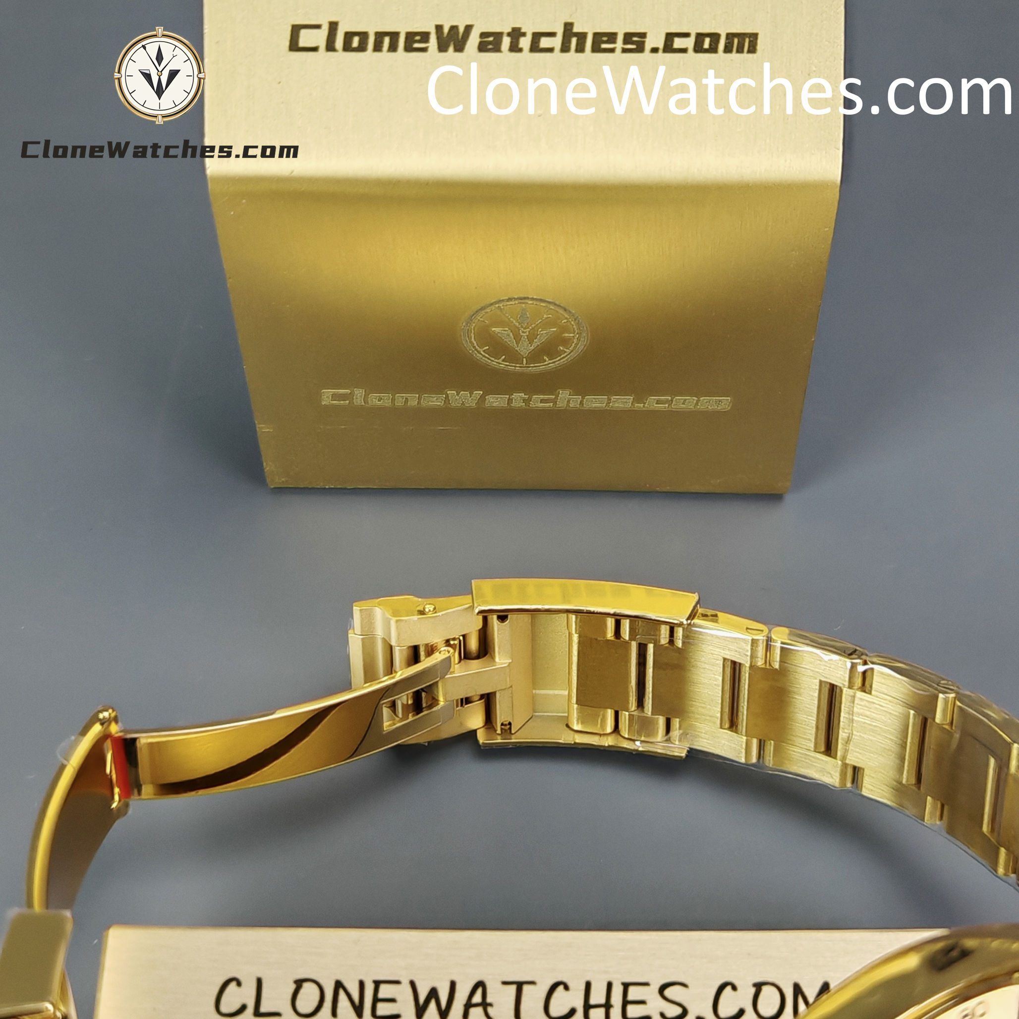 - 18K Yellow Gold Plating: Full PVD Gold wrapping on Case and Bracelet. Guaranteed anti-fading with correct yellow gold hue.