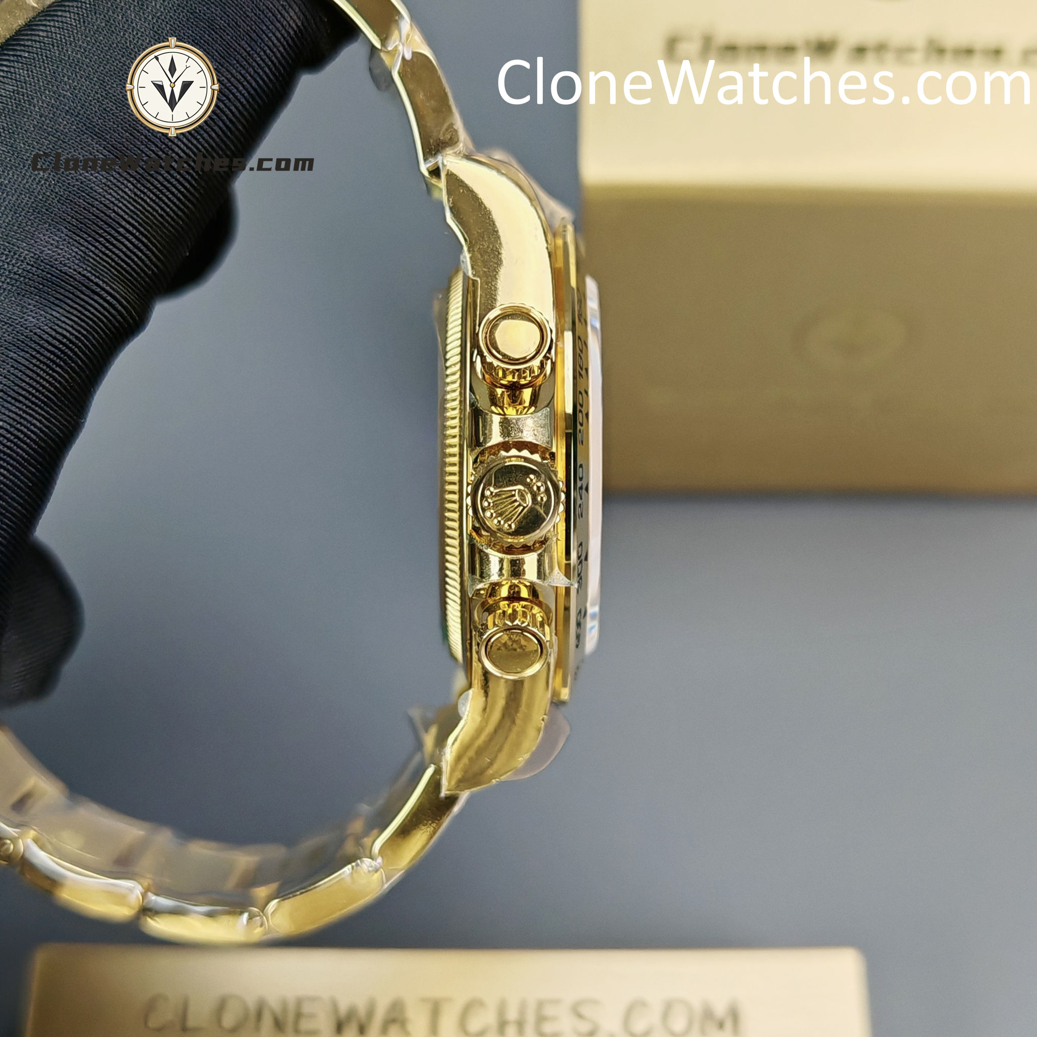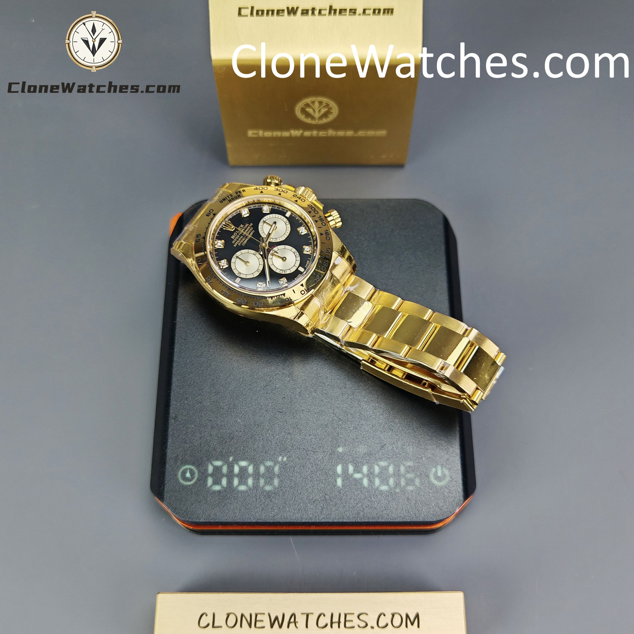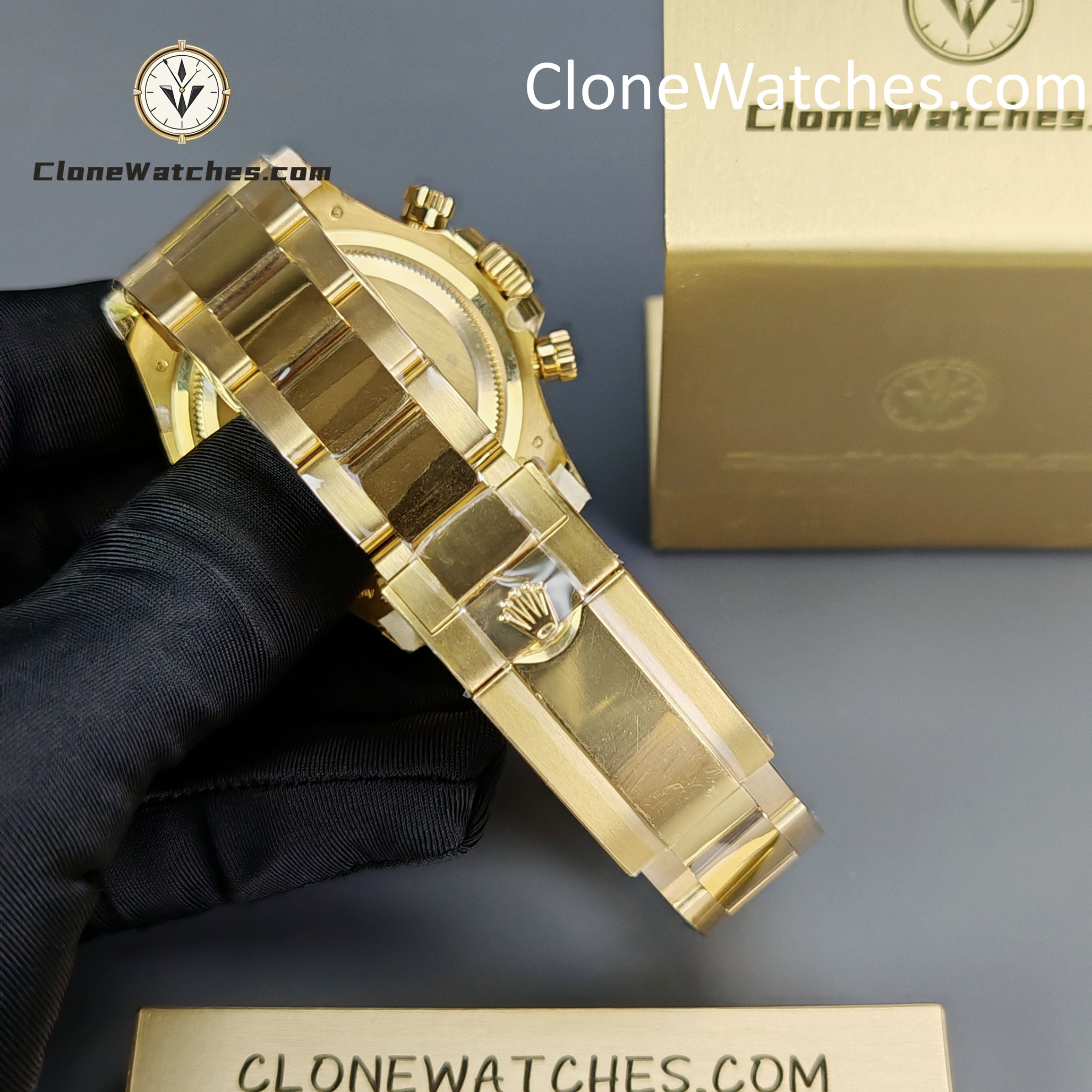- 18K Yellow Gold Plating: Full PVD Gold wrapping on Case and Bracelet. Guaranteed anti-fading with correct yellow gold hue.